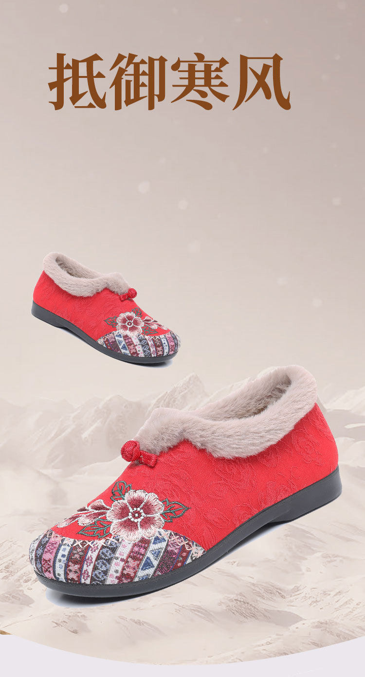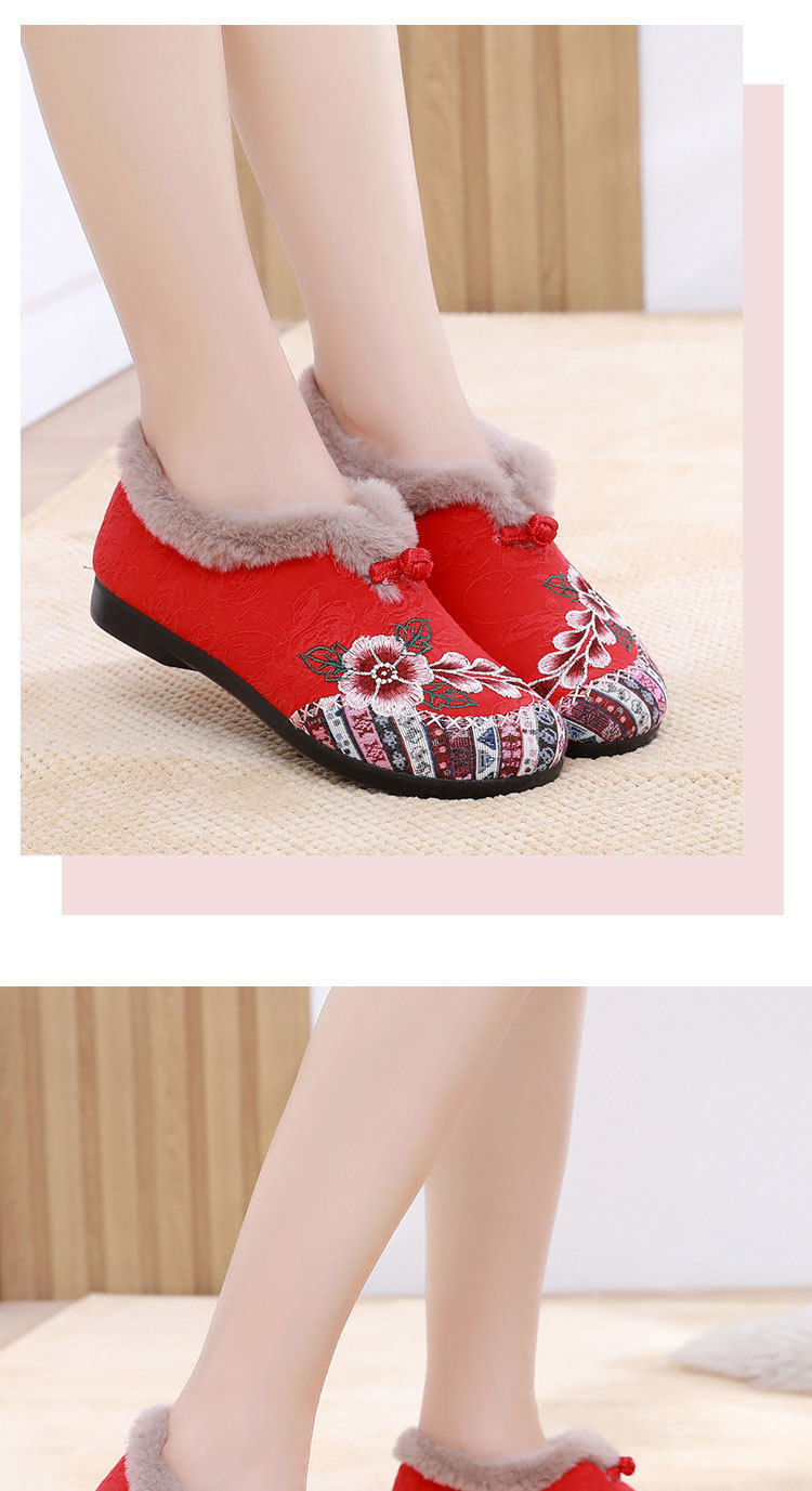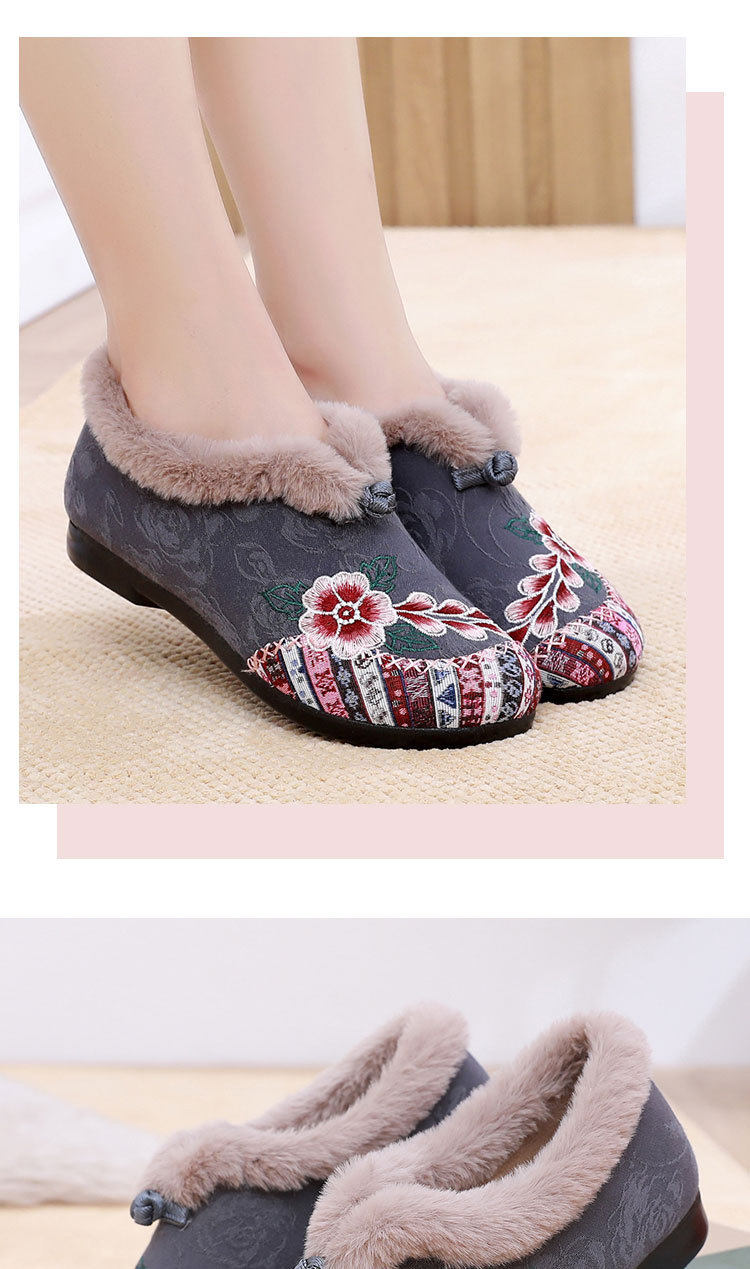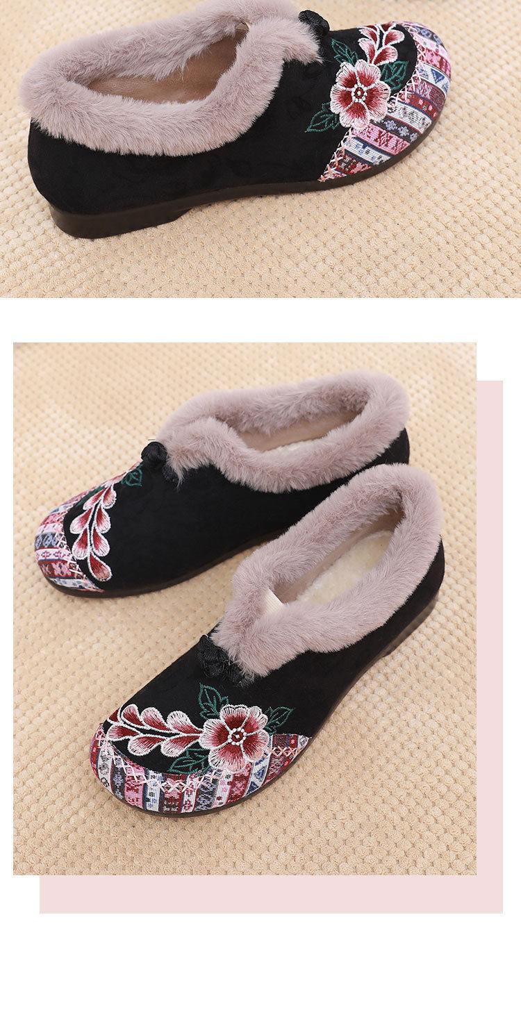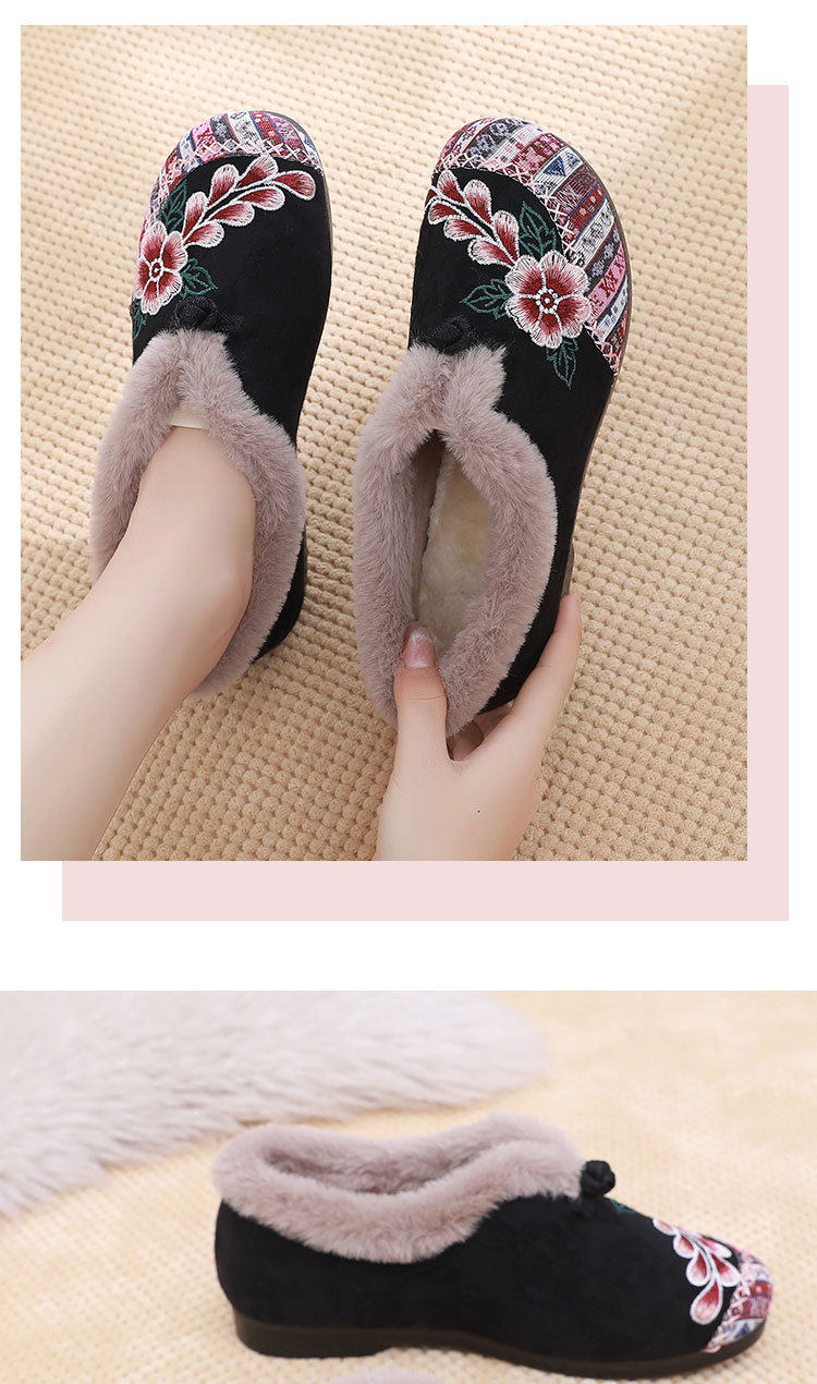New Style Cotton Shoes Women's fleece-lined Thickened Middle-aged and Elderly Flat Embroidered Shoes Chinese Ethnic Style Slip-on Shoes for Mother Hanfu