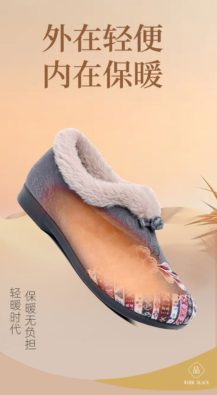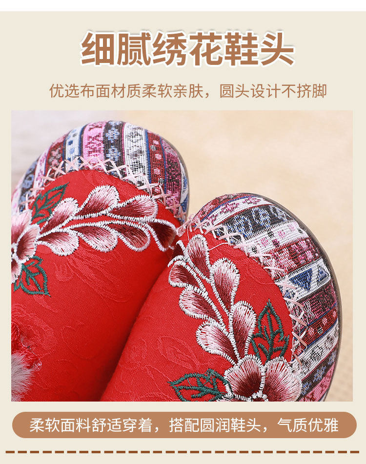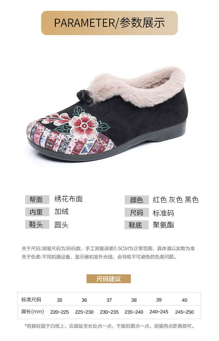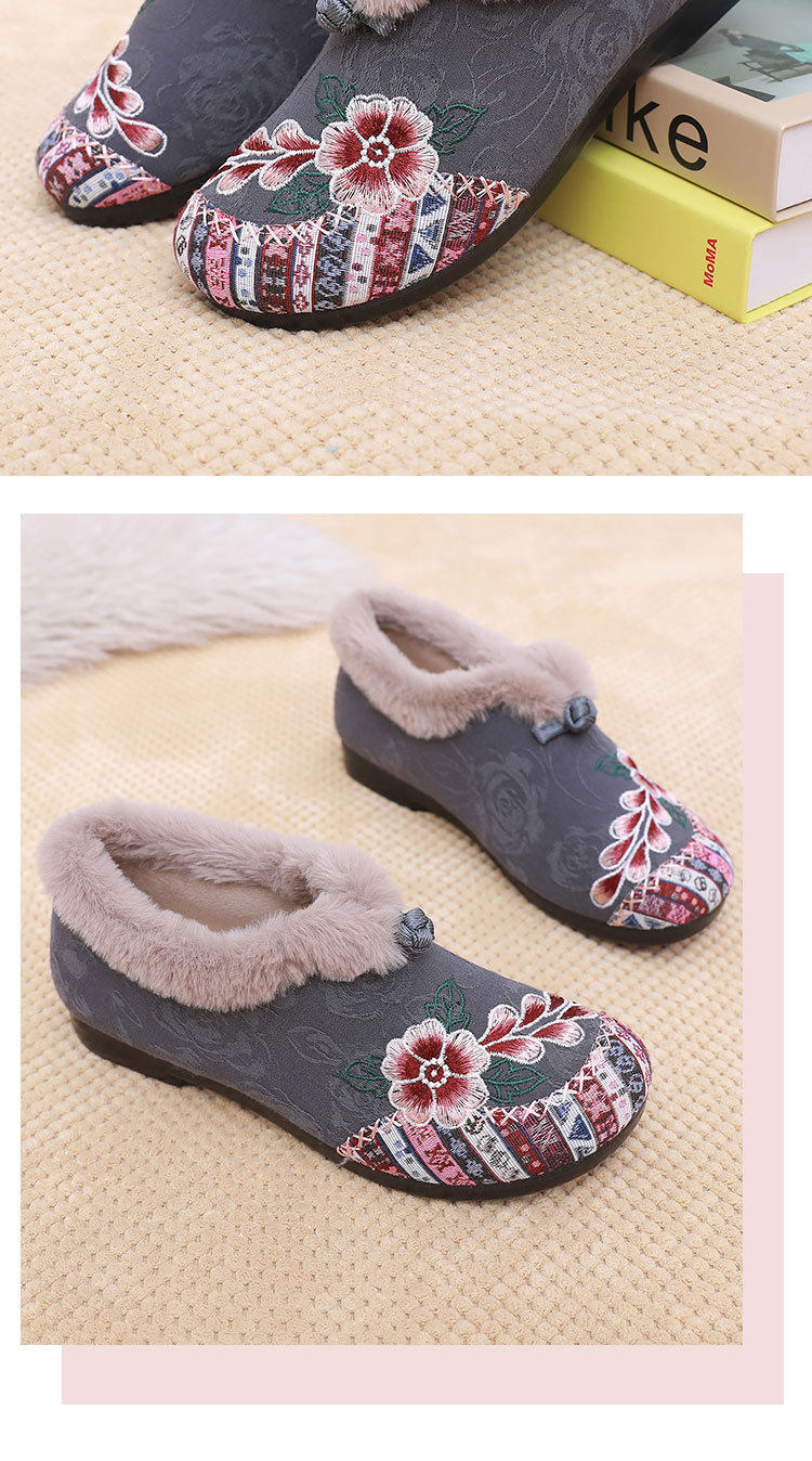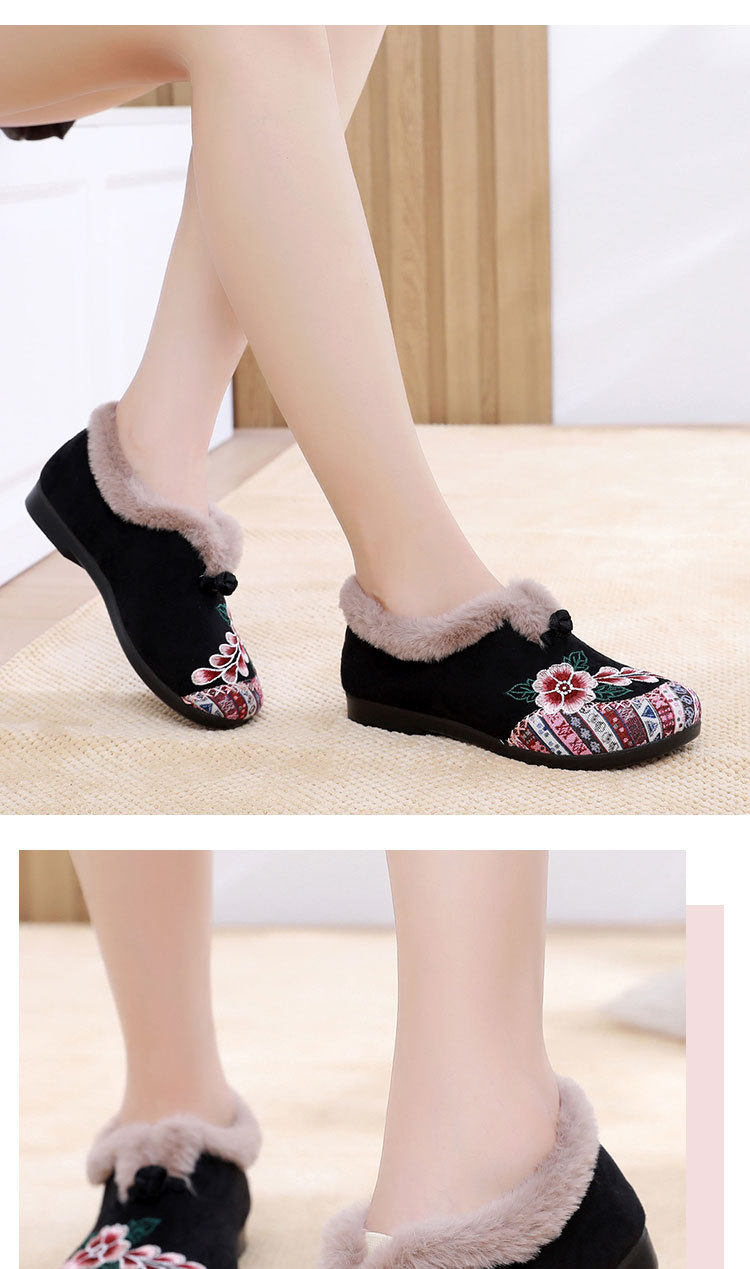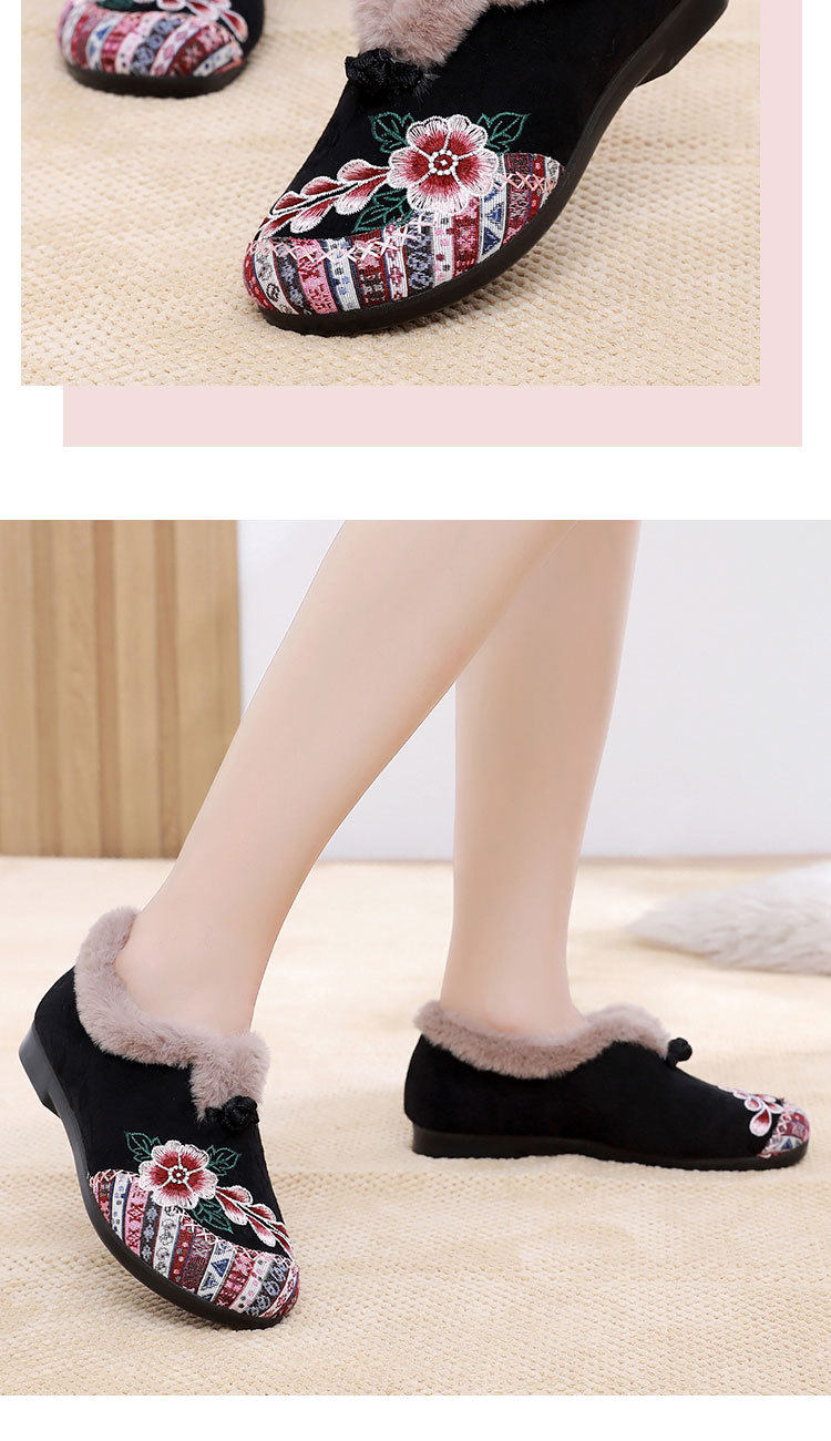 New Style Cotton Shoes Women's fleece-lined Thickened Middle-aged and Elderly Flat Embroidered Shoes Chinese Ethnic Style Slip-on Shoes for Mother Hanfu