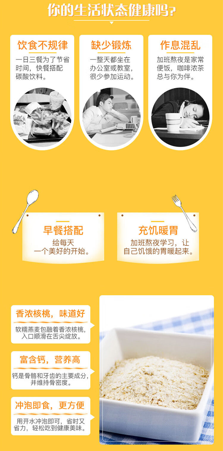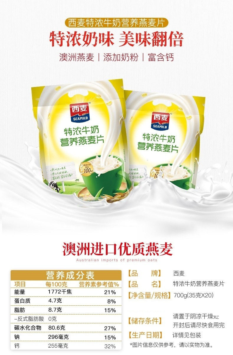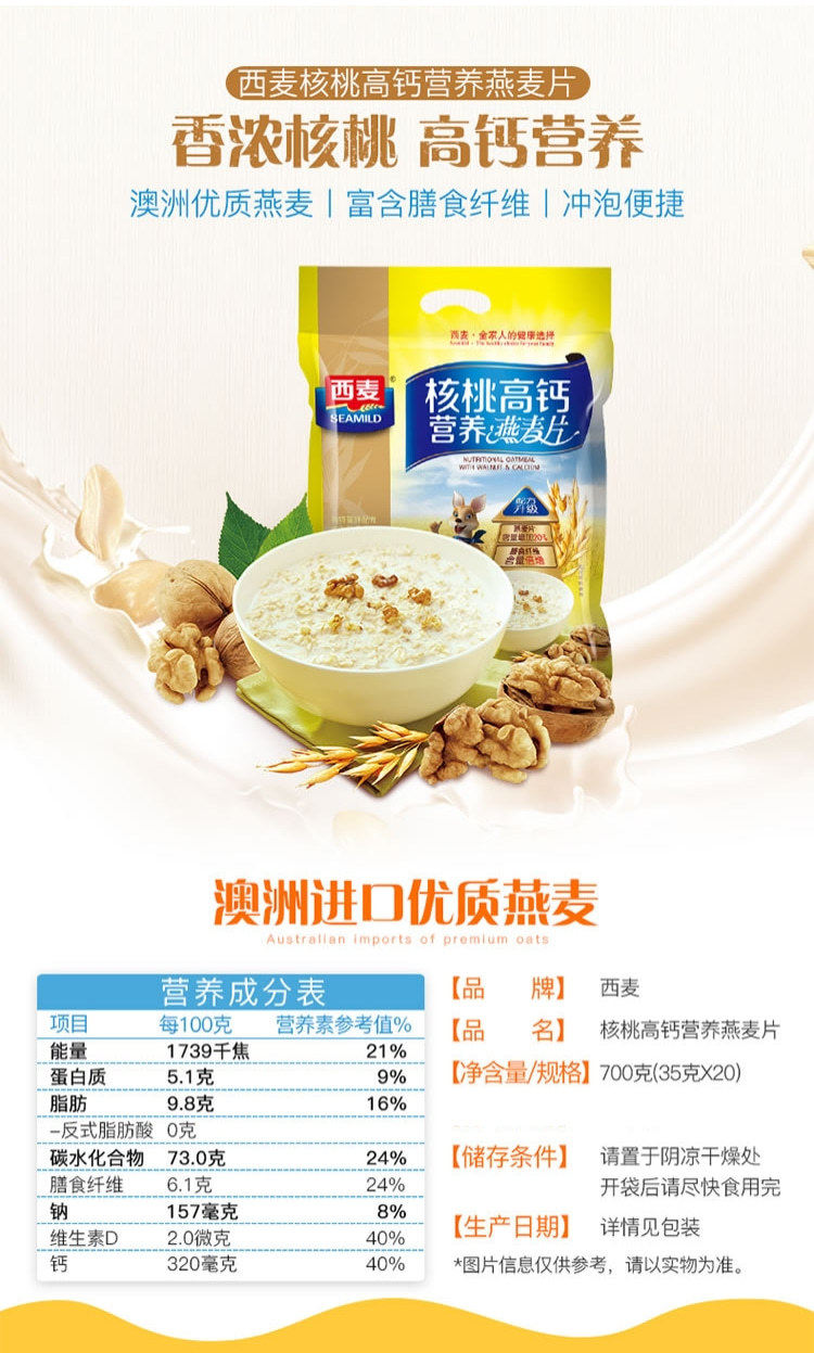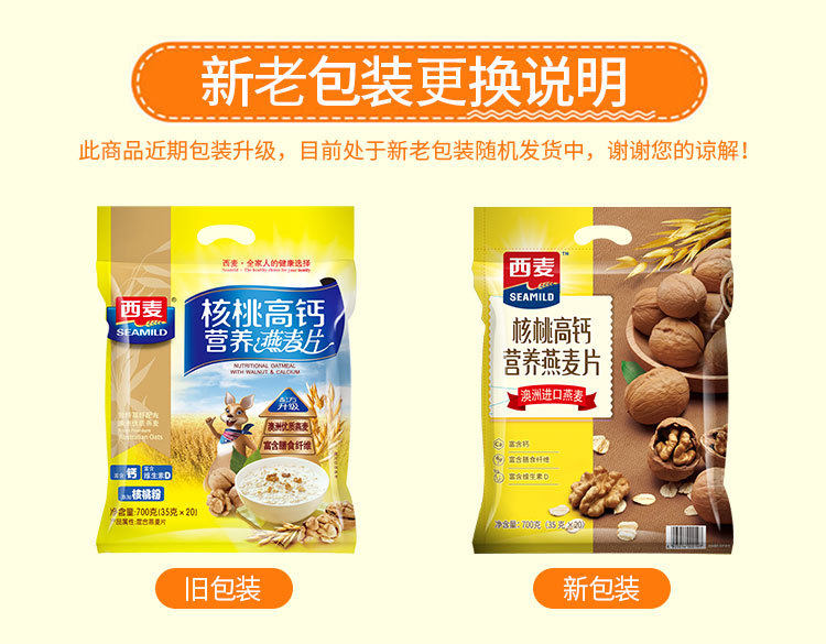 | Flavor | Extra rich milk oatmeal 700g/20 packs,Walnut high calcium oatmeal 700g/20 packs |