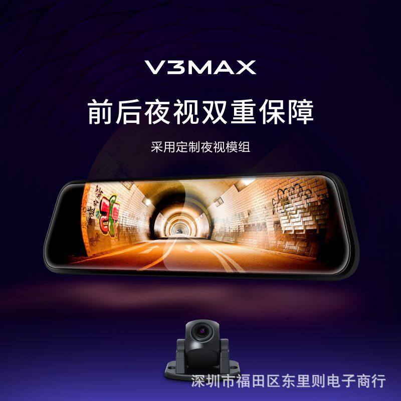 The first scene V3max HD front and rear 1080P streaming media full screen 9.66 inch reversing image driving recorder