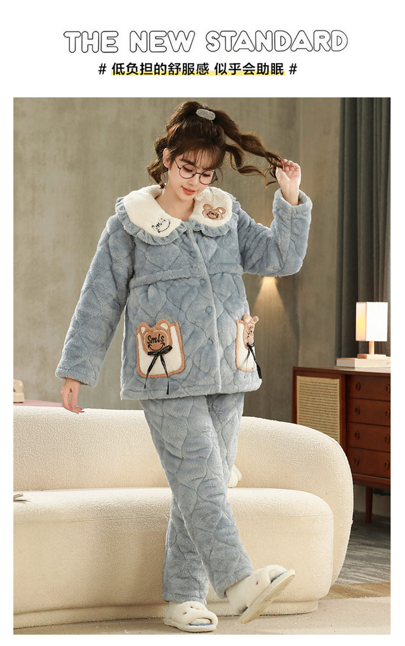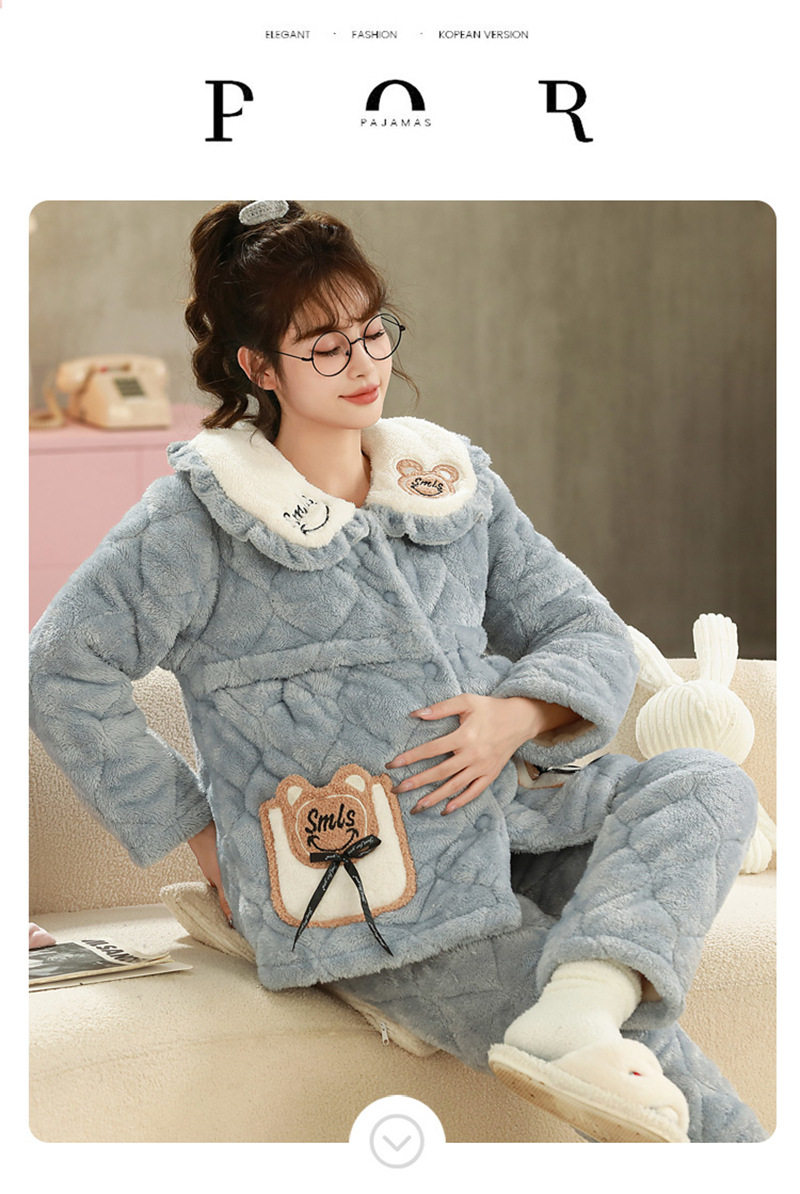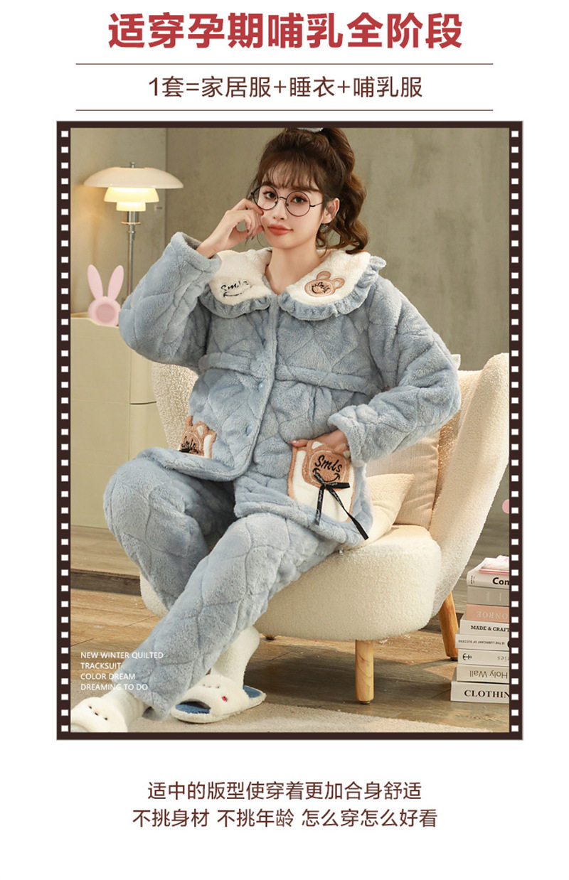 Winter monthly clothing three-layer cotton padded fleece-lined pajamas for pregnant women autumn and winter postpartum lactation home suit
