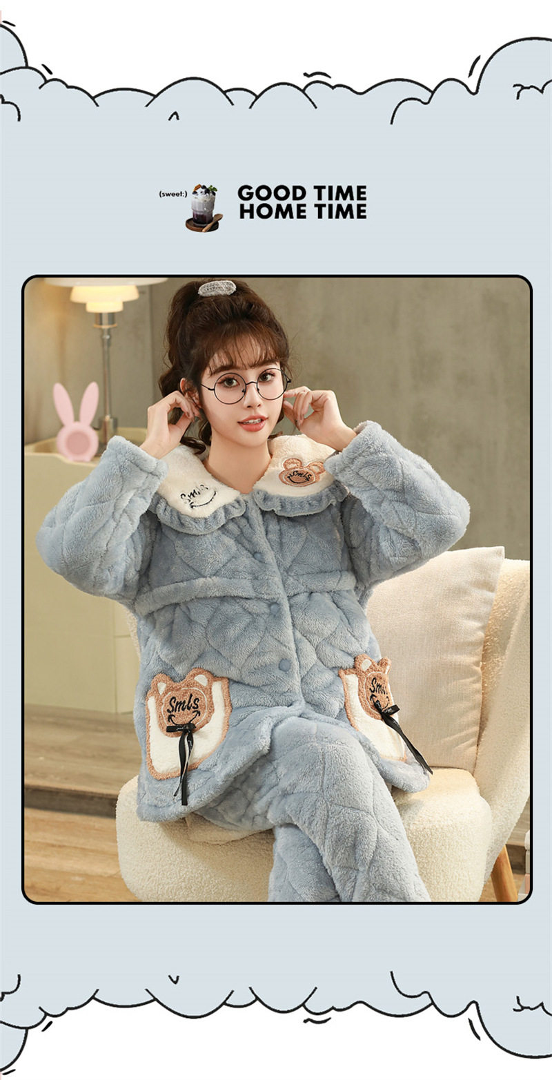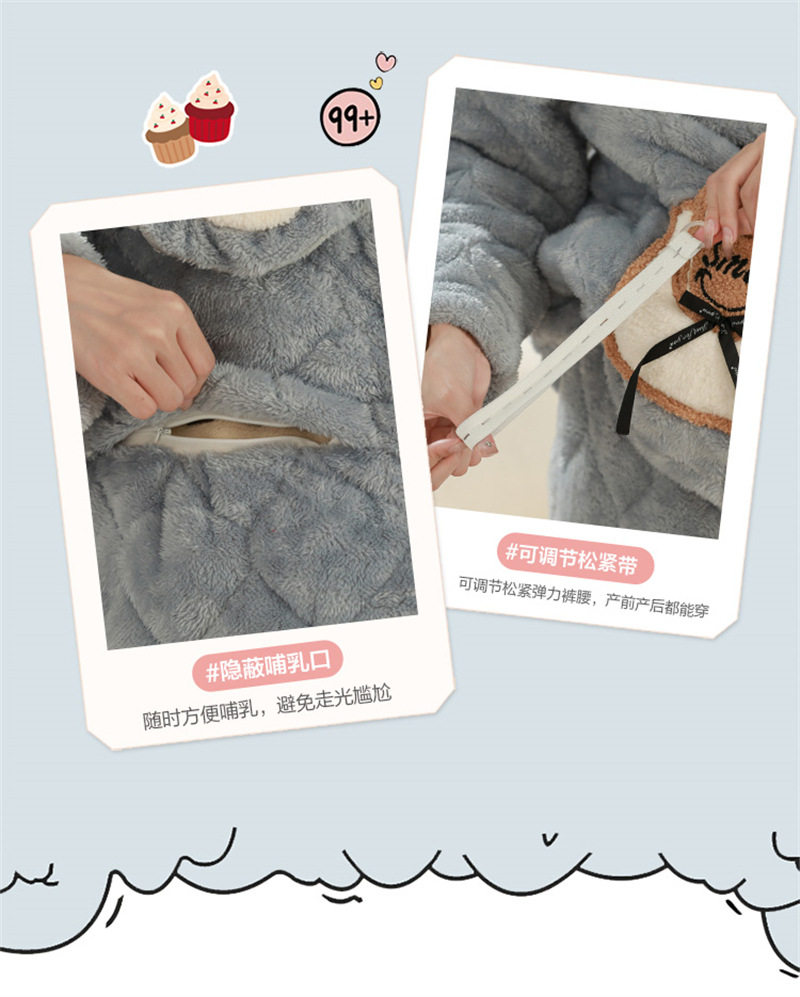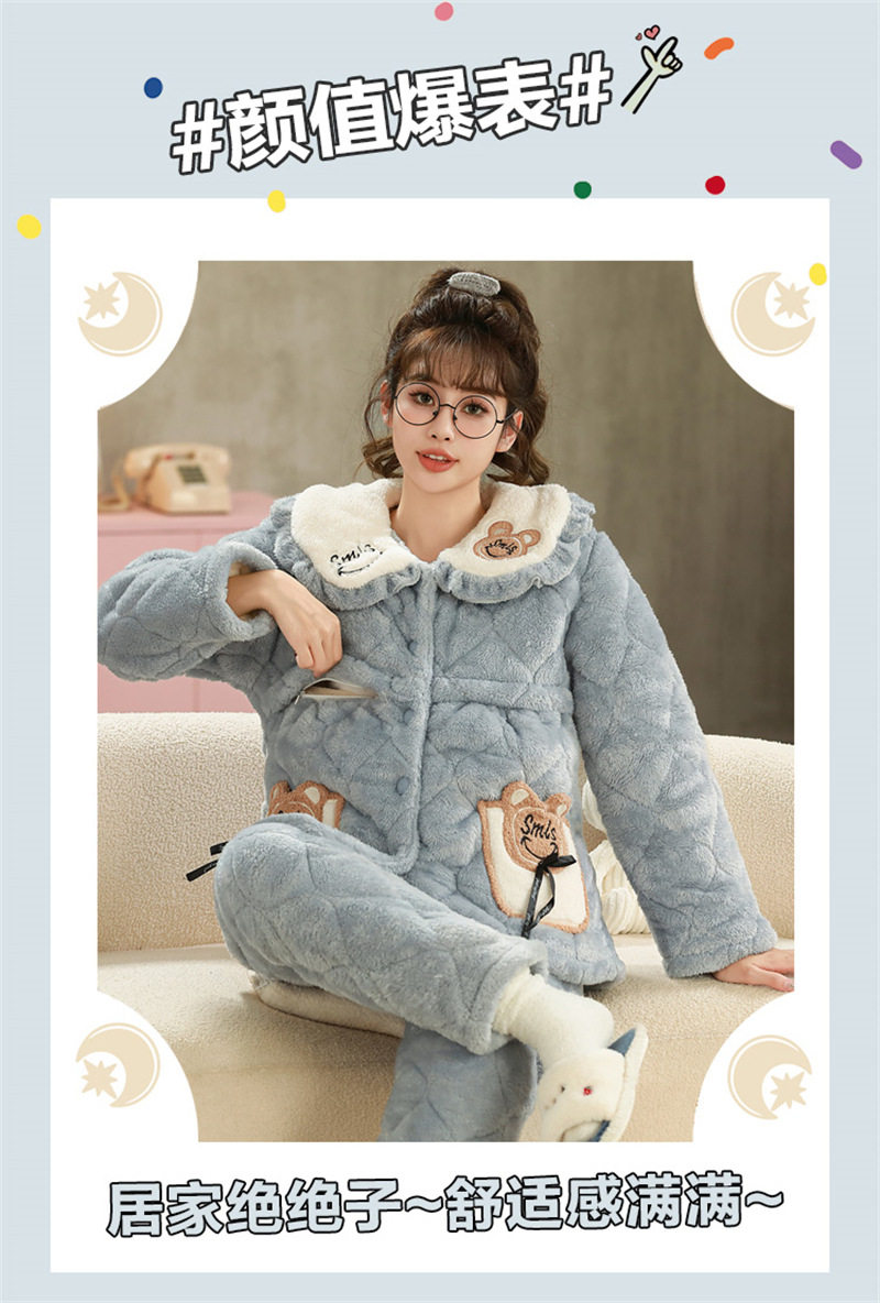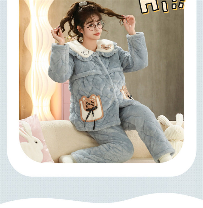 Winter monthly clothing three-layer cotton padded fleece-lined pajamas for pregnant women autumn and winter postpartum lactation home suit