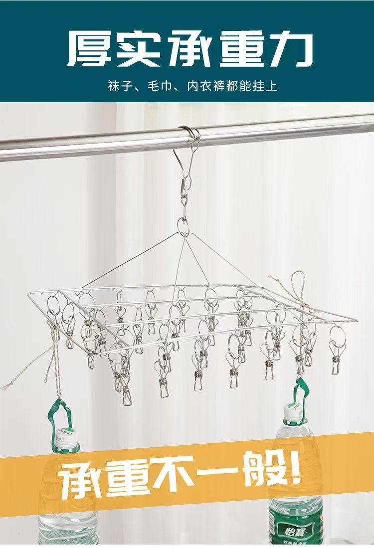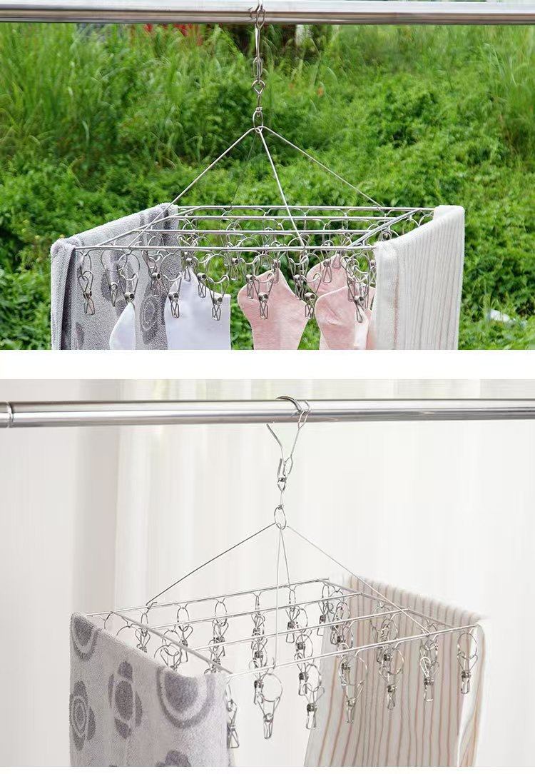 Stainless Steel Clothes Drying Rack with Multiple Clips for Drying Socks, Multifunctional Square Solid Storage Rack for Home Use