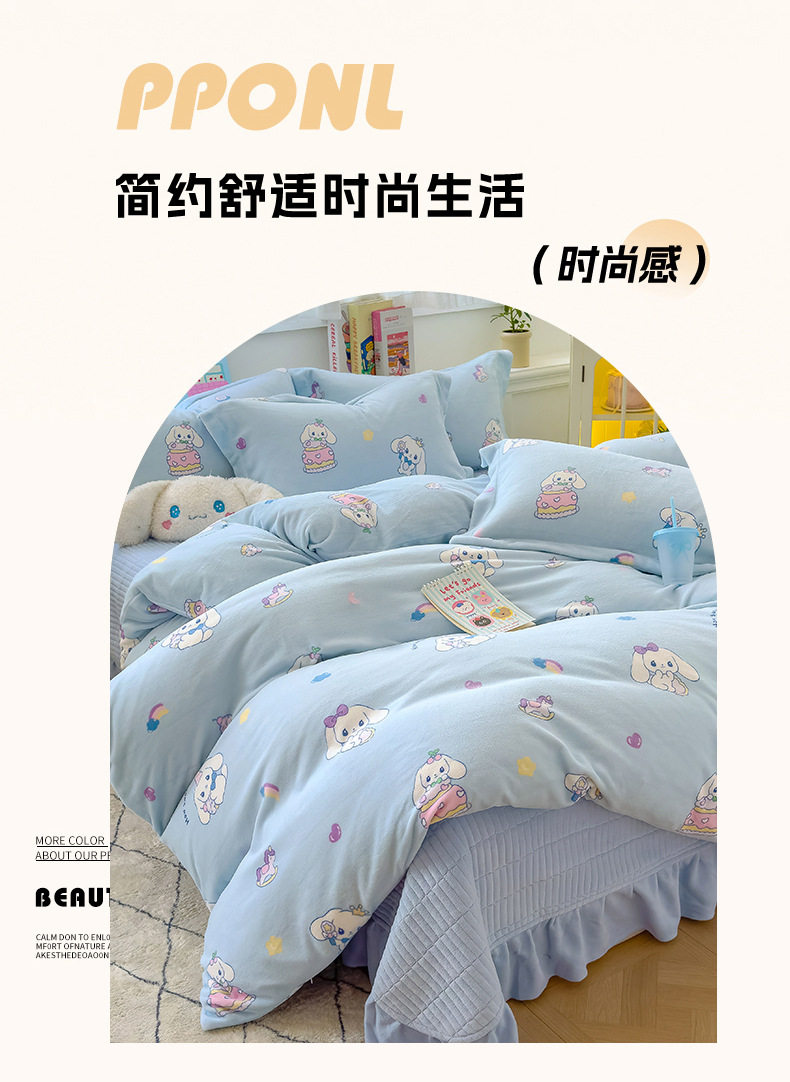 Winter Thickened Milk Velvet Bed Cover Four-Piece Set Student Dormitory Three-Piece Set Winter Warm Quilt Cover Bed Sheet Velvet Bedding