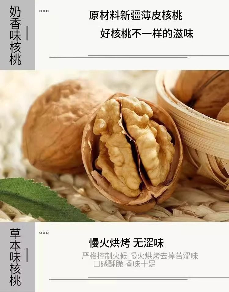 | Packaging specifications | Hand-peeled paper walnuts [4 cans, totaling 2000g],Hand-peeled paper walnuts [3 cans total 1500g],Hand-peeled paper walnuts [2 cans of 1000g in total],Hand-peeled paper walnuts [1 can, total 500g],Hand-peeled paper walnuts [2 cans total 200g],Hand-peeled paper walnuts [1 can, 100g in total] |