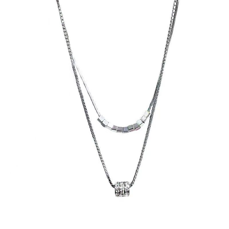 Double-layer Stacked Flash Diamond Necklace Women's Small Man Waist Silver Collarbone Chain Fashion All-match Light Luxury High-end Jewelry Accessories