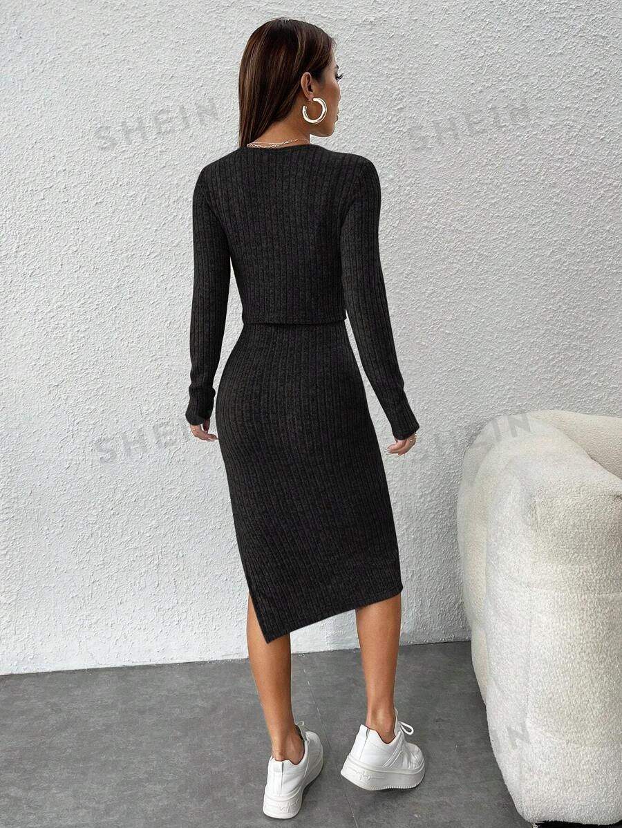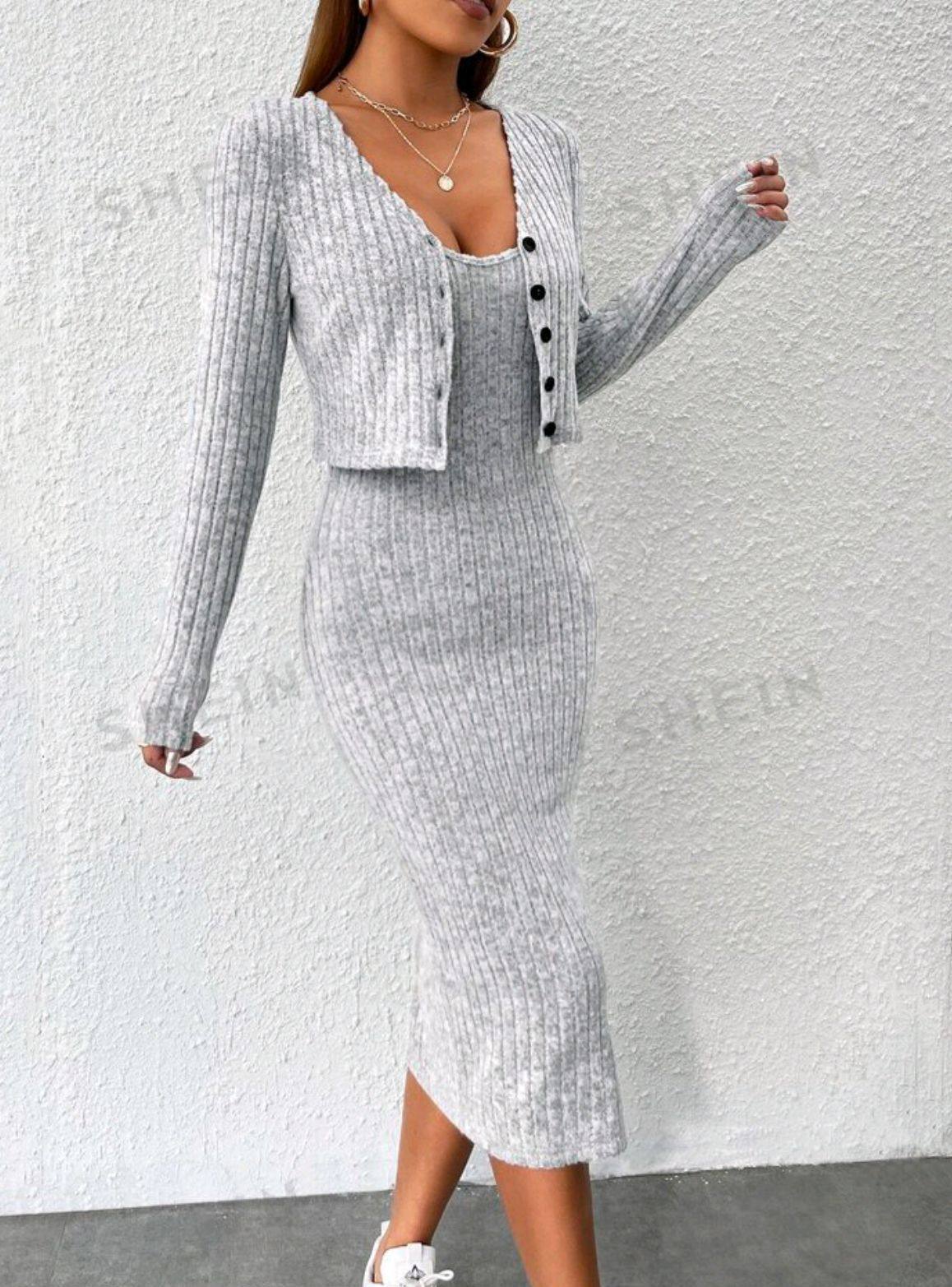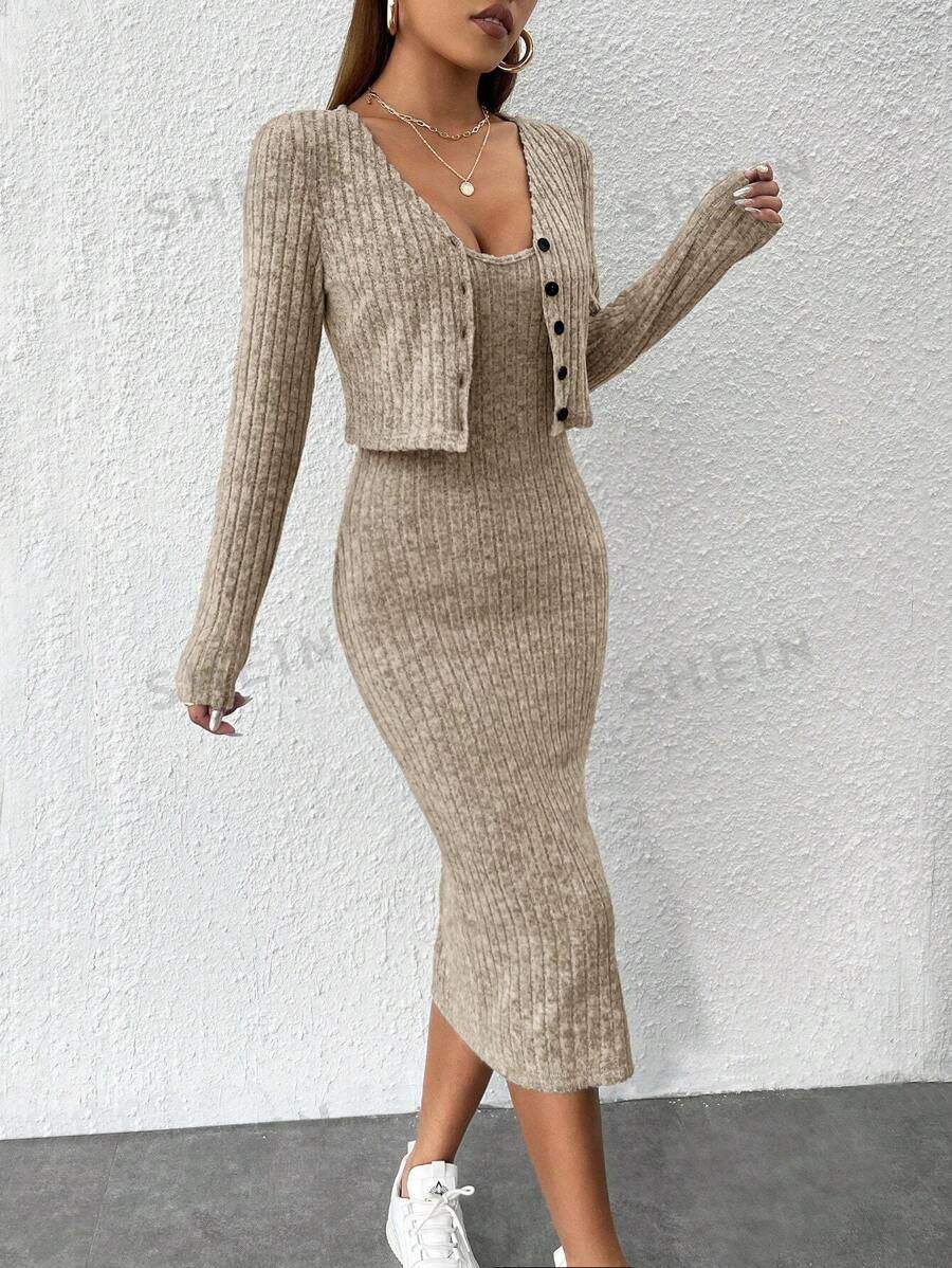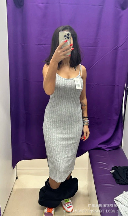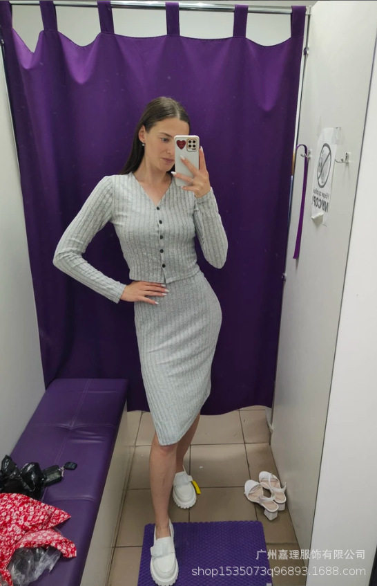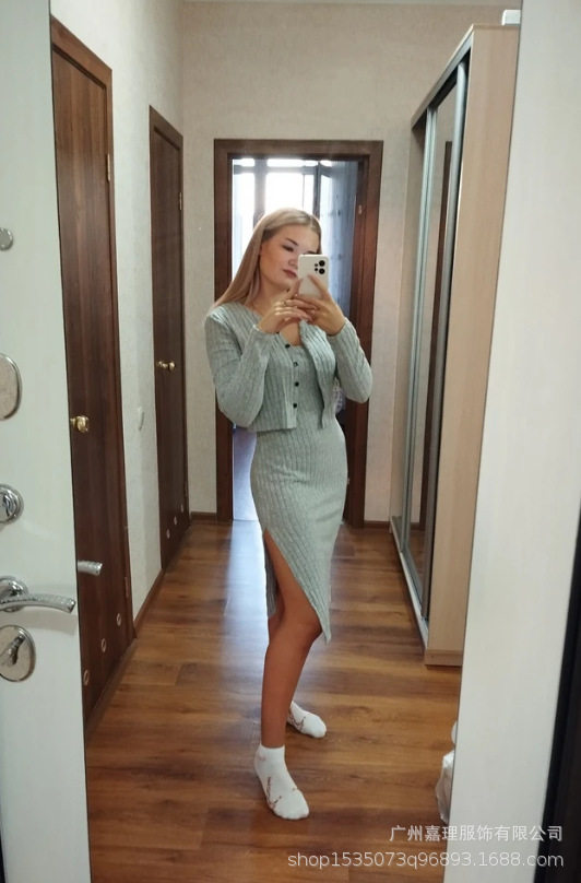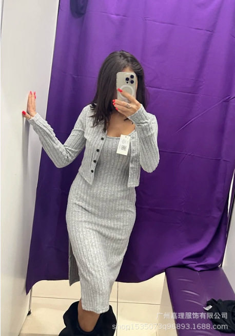 Fall/Winter 2024 Europe and America Amazon Cross-border Women's Slim Sling dress Pit Strip Cardigan Jacket Two-piece Set for Women