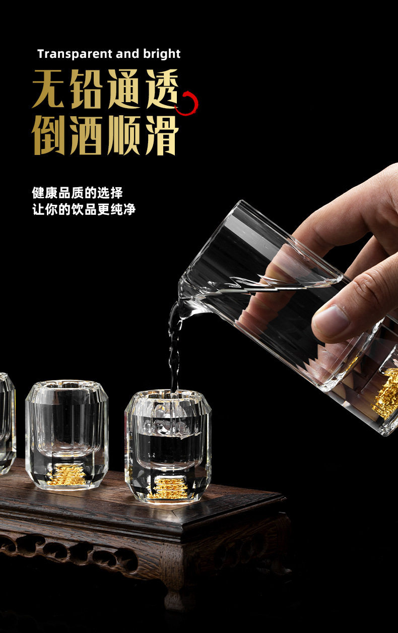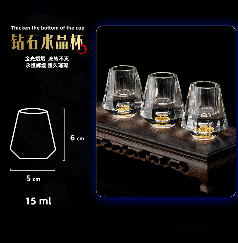 Diamond Cut Crystal Gold Foil White Wine Glass suit Creative Small Wine Glass Household Glass Wine Dispencer One-shot Wine Cup