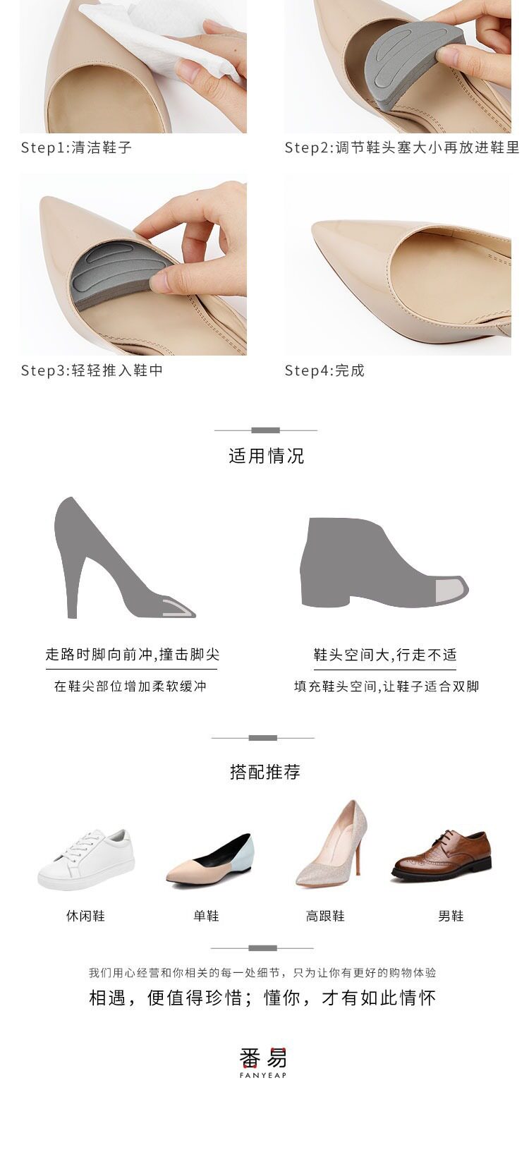 Free Shipping/10Y Insoles/Half Size/Toe Cap A1P60 - Toe Cap Size Reducer Half Size Insole for Women's High Heels