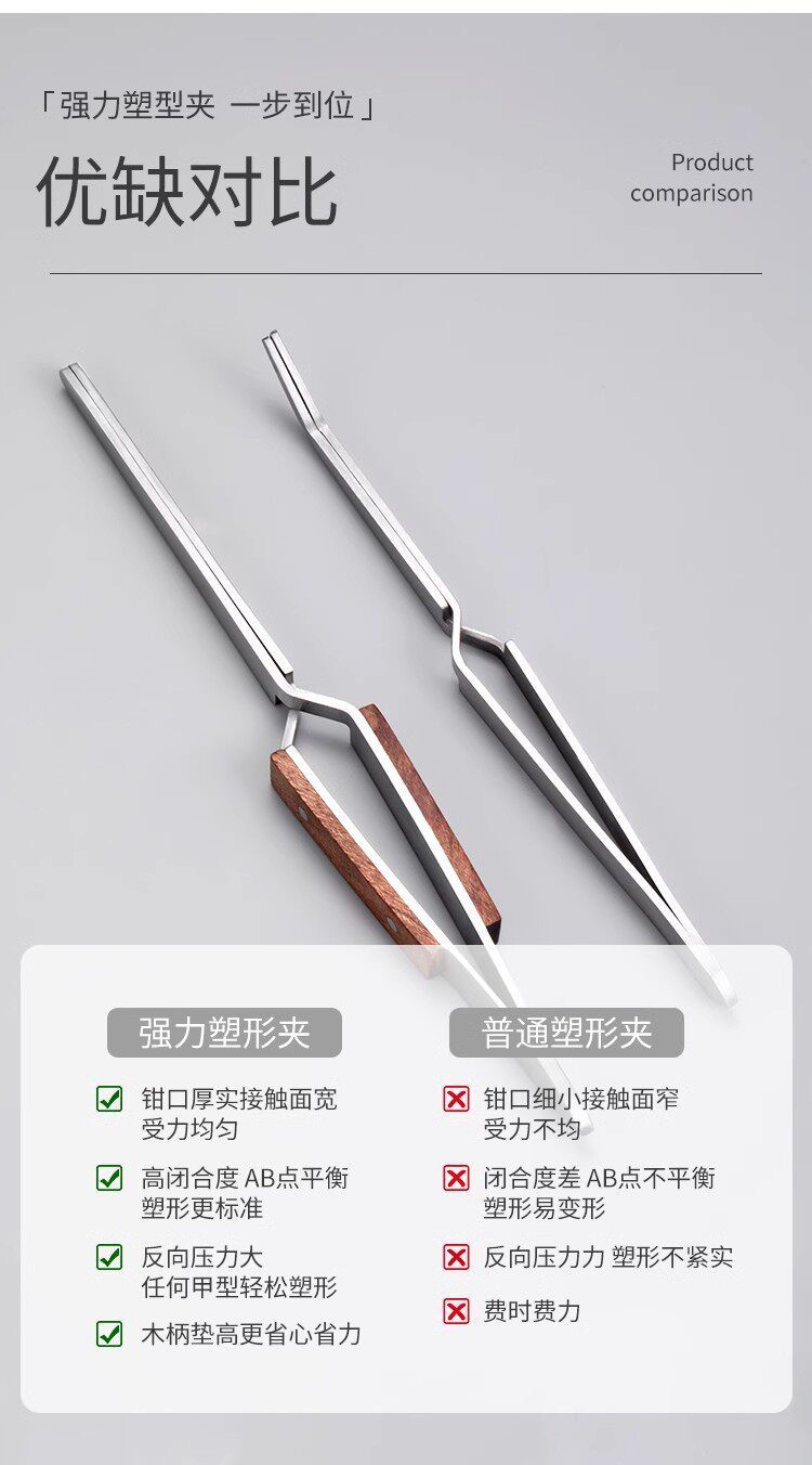 Nail Art Shaped Clamp Wooden Handle Stainless Steel Shaped Clamp X Pliers Phototherapy Extension Nail Crystal Armor Shaped Clamp