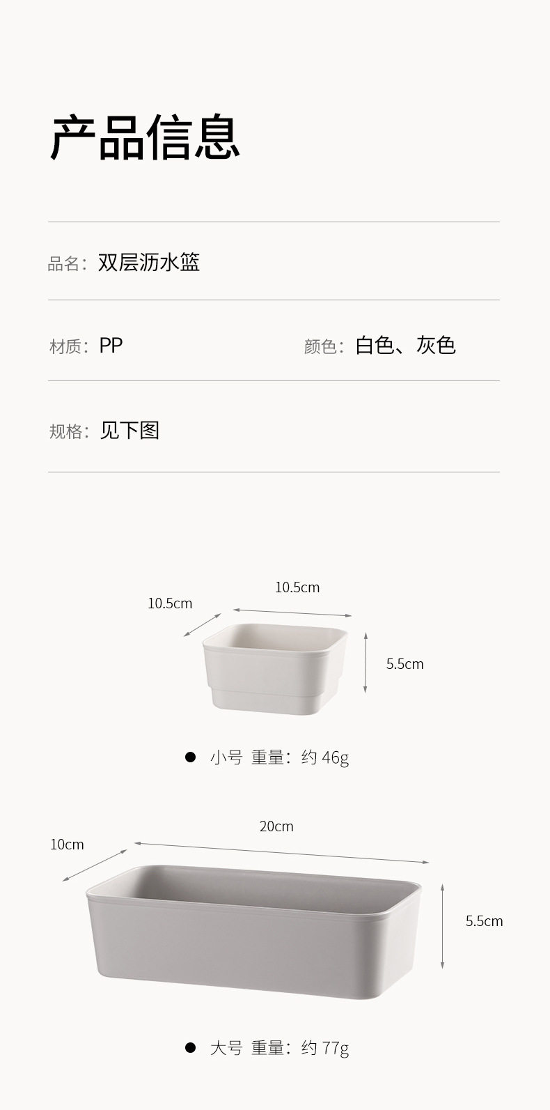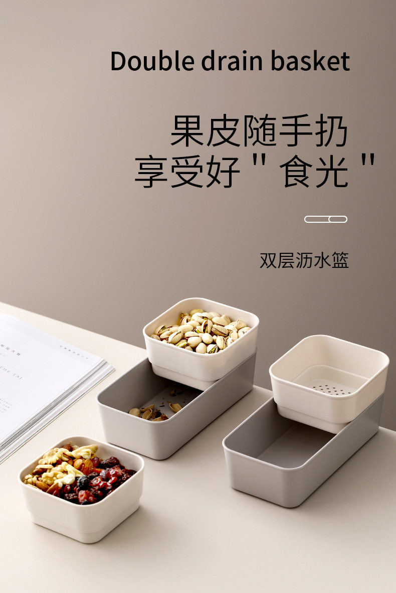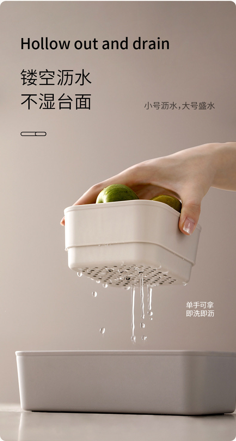FaSoLa Household Vegetable Washing Basin Multi-functional Draining Storage Box Kitchen Living Room Washing Fruit Basin pp Double-layer Draining Basket