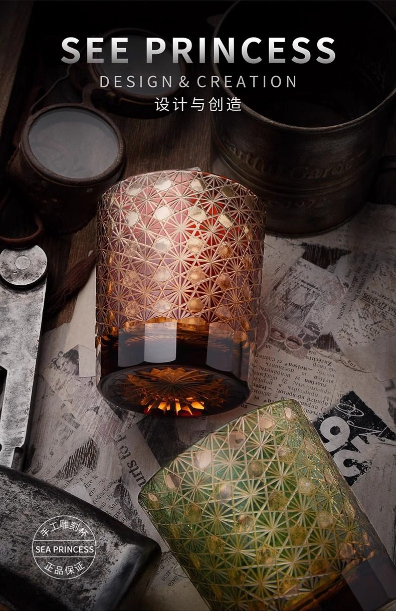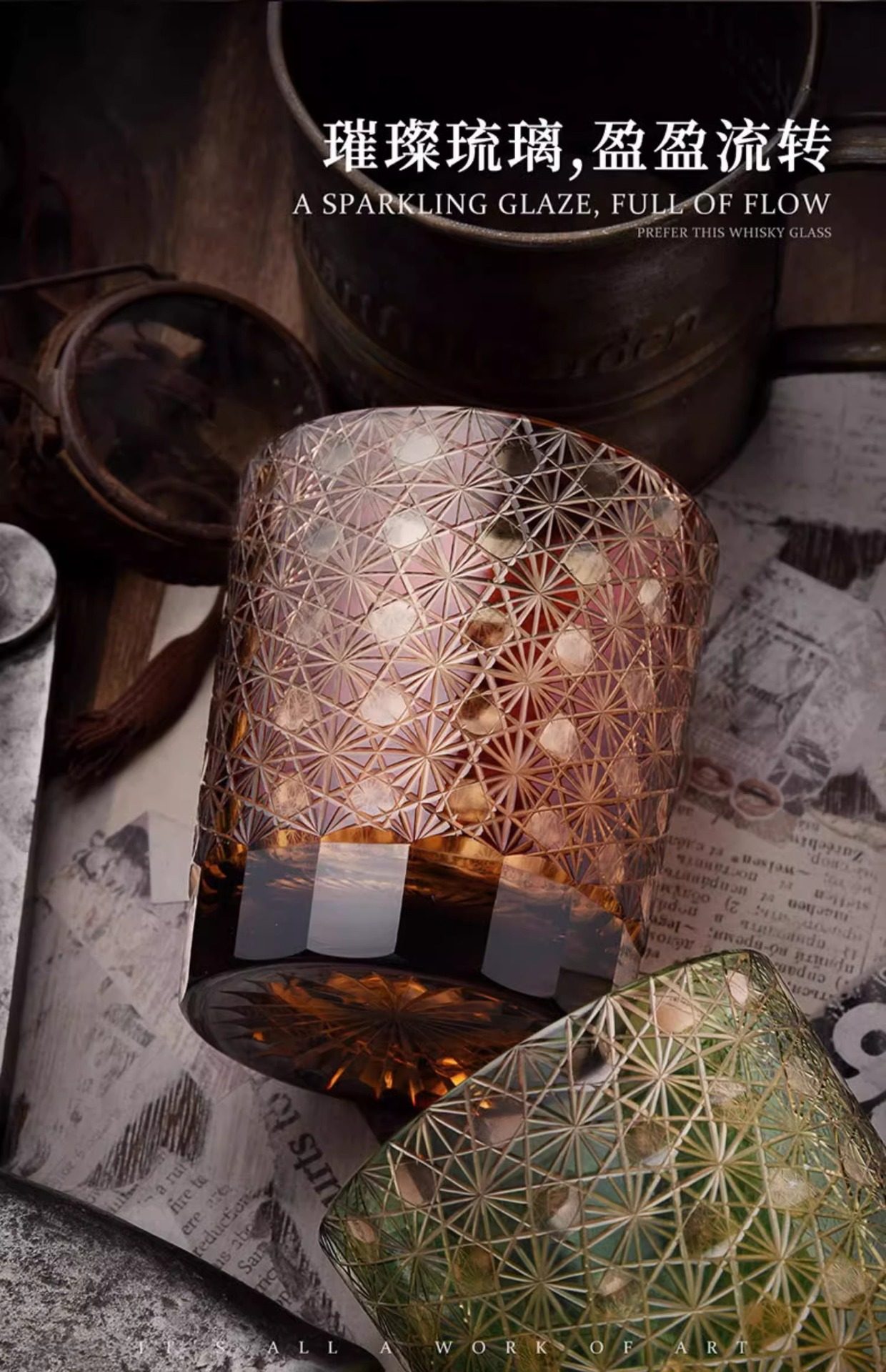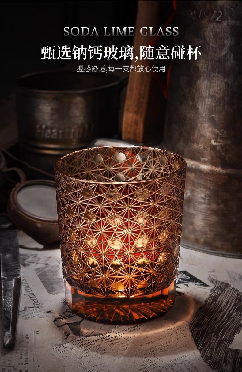 Edo Cheko Japanese Style Hand-carved Spirits Glass Home Vintage Dawn Crystal Whisky Glass Gift Box Gift