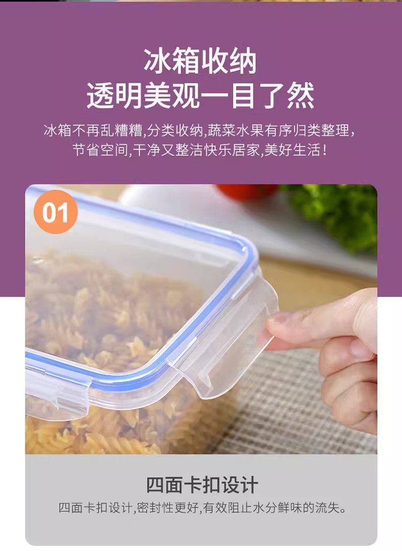 Kitchen Refrigerator Preservation Box Transparent Sealed Microwave Heat Resistant Plastic Food Meal Box Fruit Refrigerator Storage Box