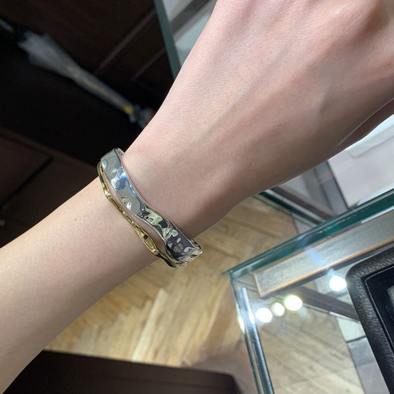 Silver gold color matching flat concave and convex heavy industry double layer 2024 new vintage bracelet women's ins cold style wide version to do the old
