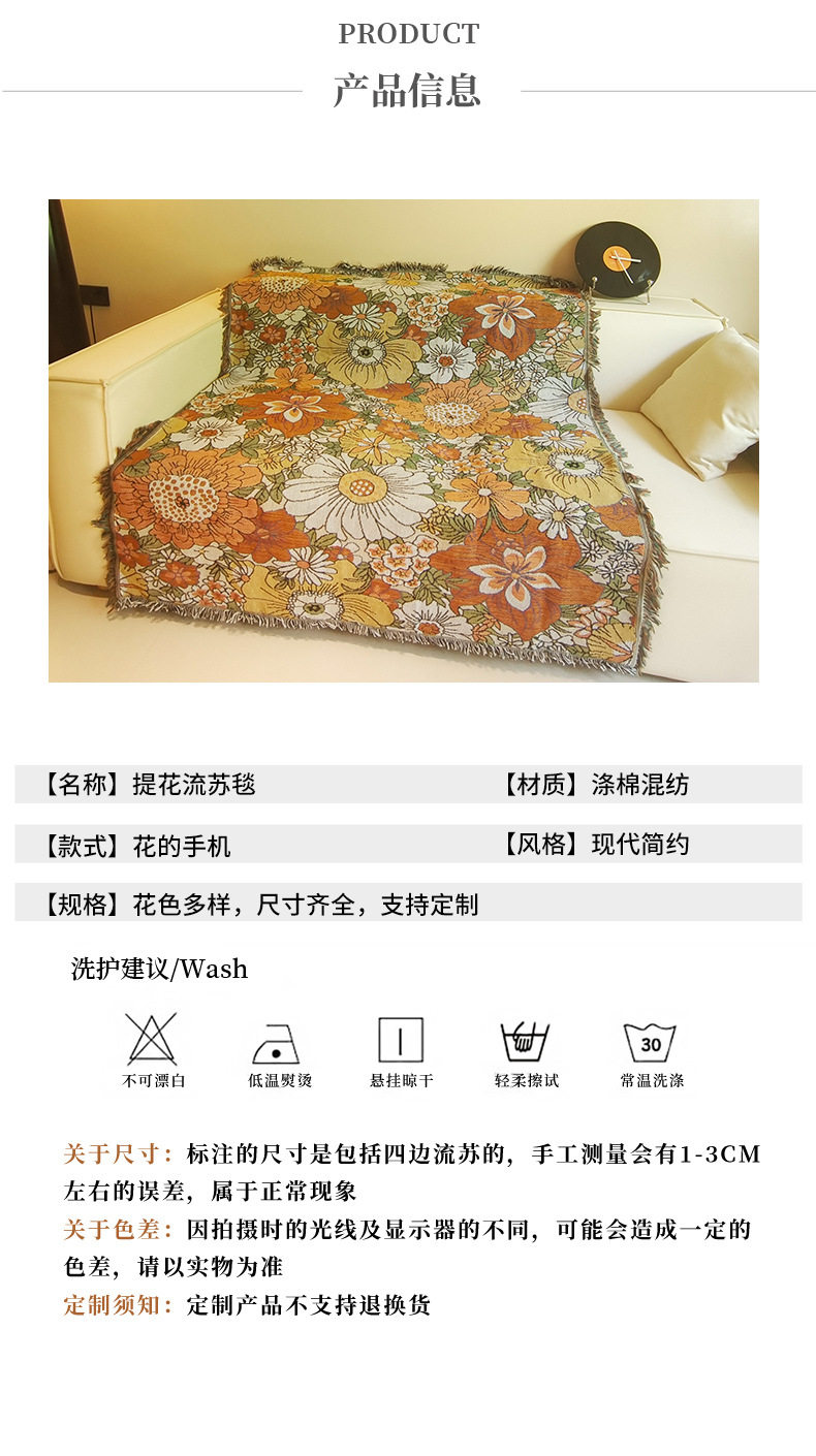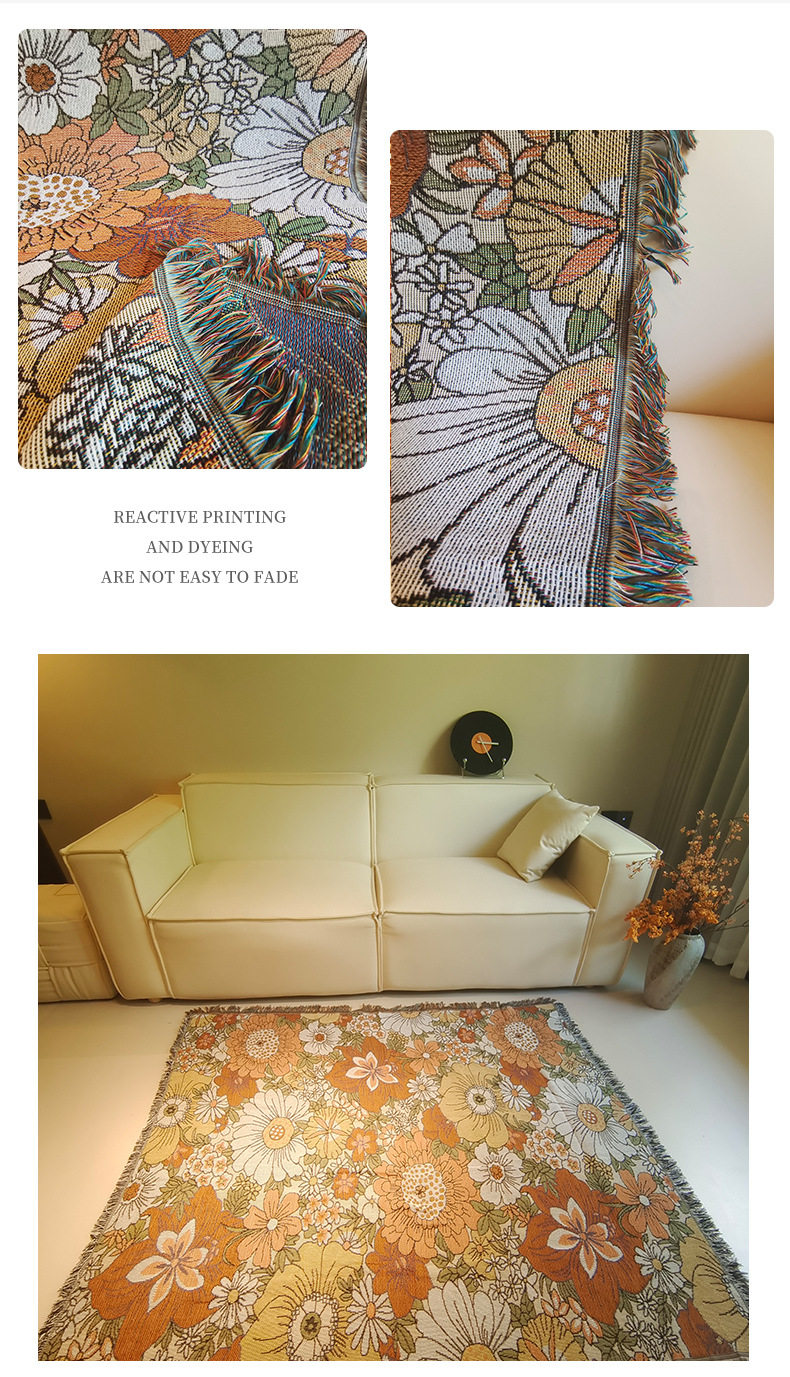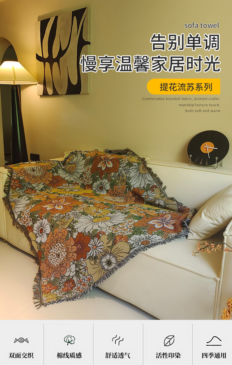 Cross-Border Foreign Trade Beach Towel Flower Tapestry Sofa Cover Towel Thread Blanket Stain-Resistant One-Piece Sofa Blanket Dropshipping
