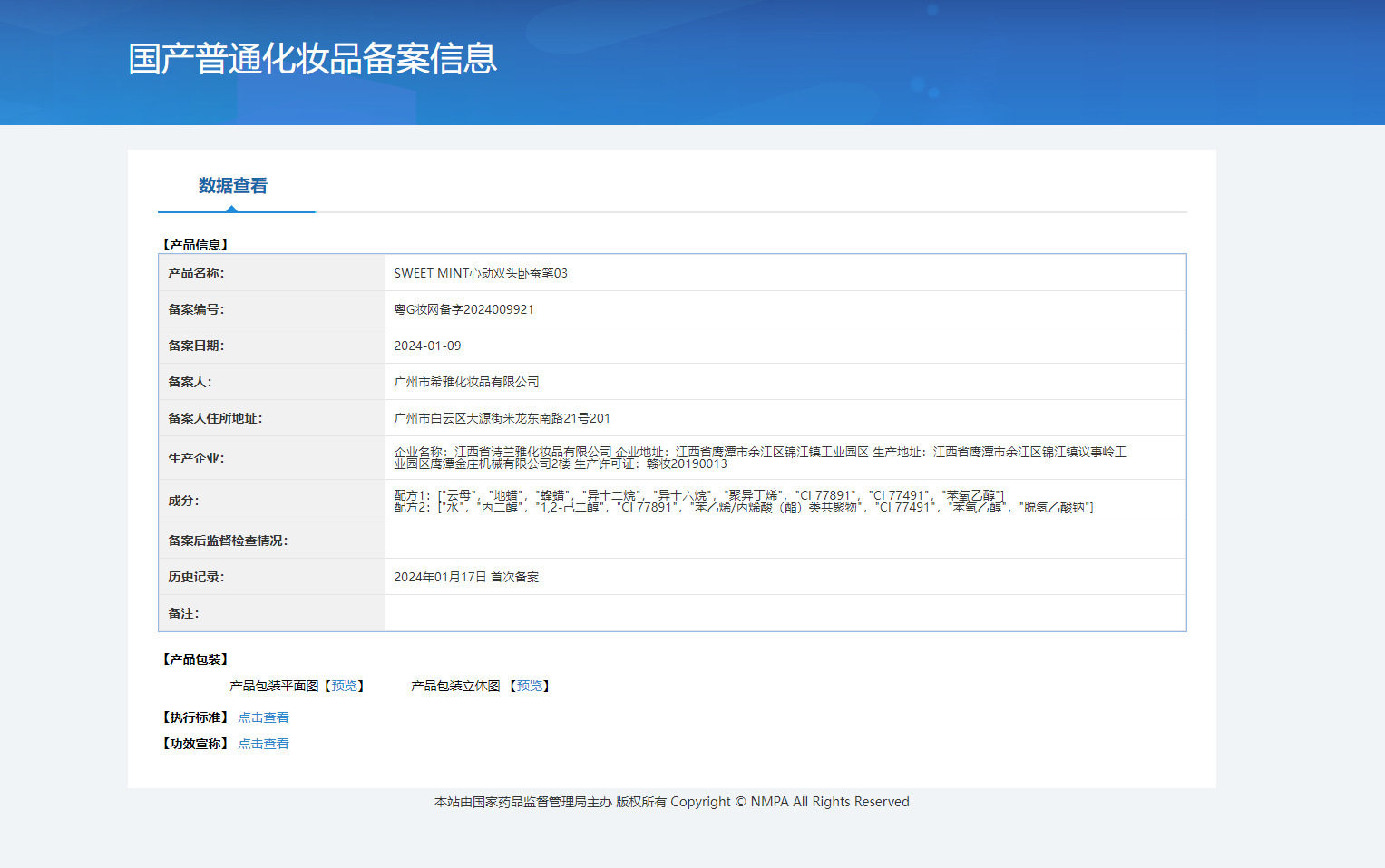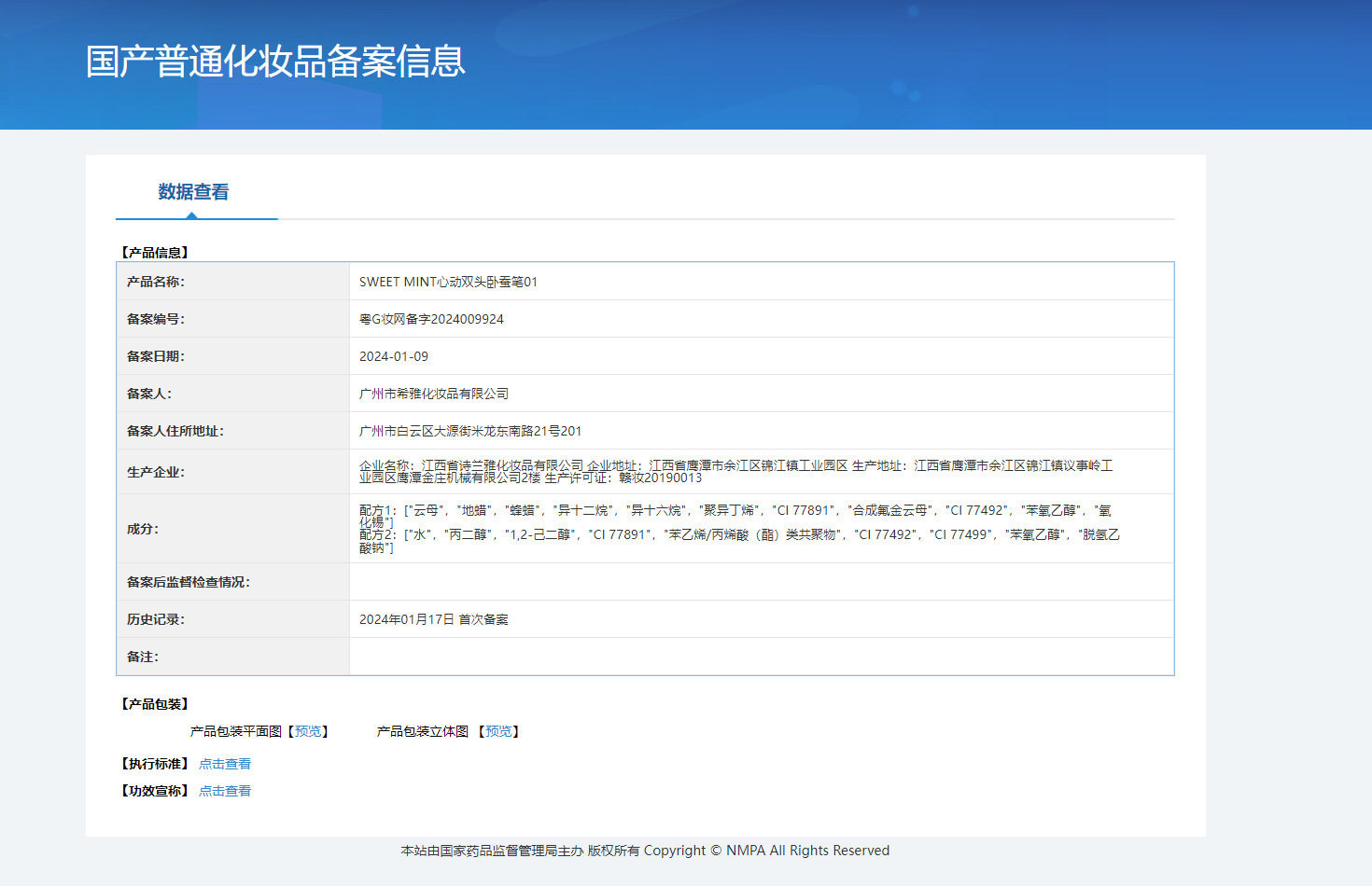 | Extra cosmetics registration certificate number | Guangdong g makeup net preparation2024009921 |