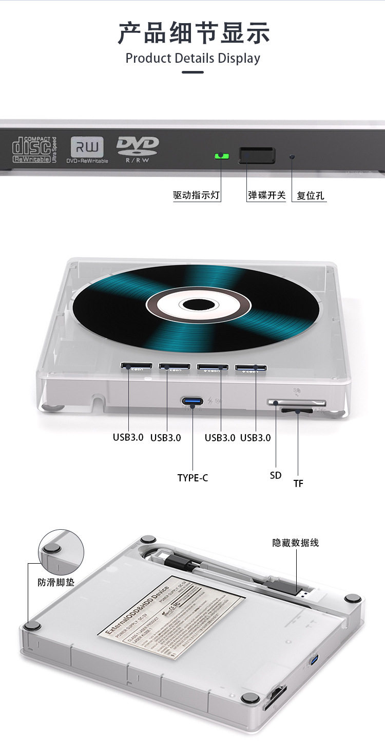 Multifunctional external optical drive laptop cd burner usb3.0 computer dvd disc player