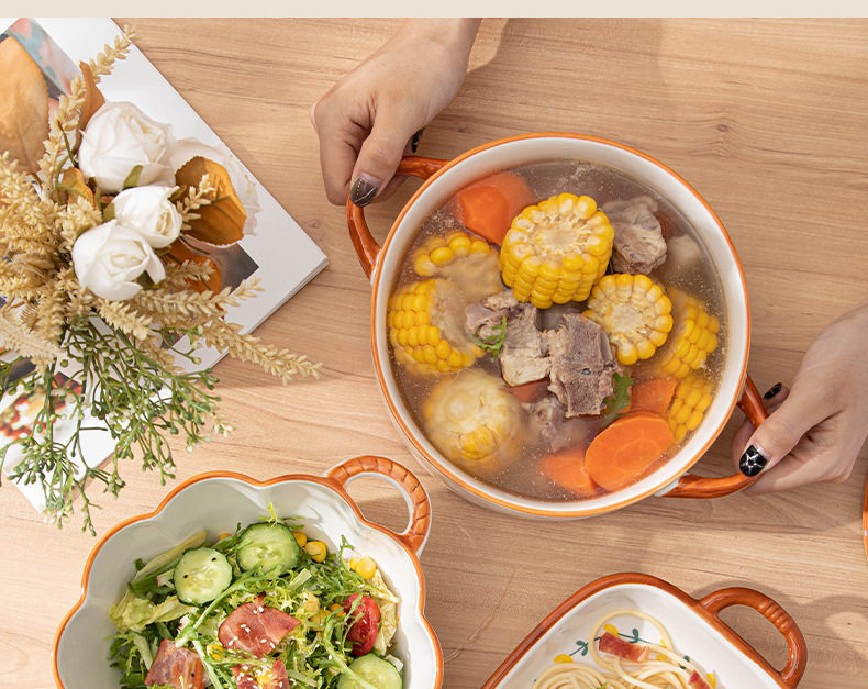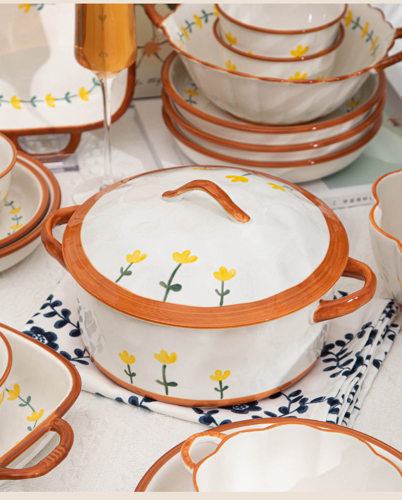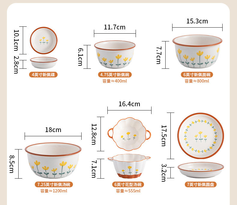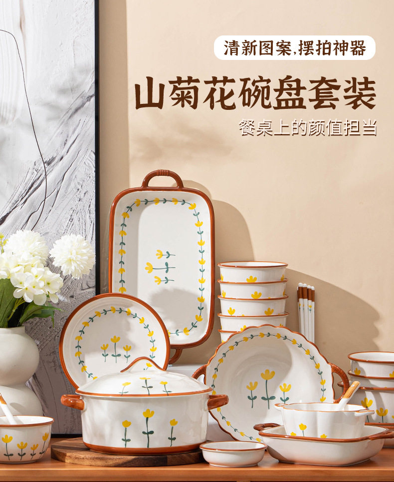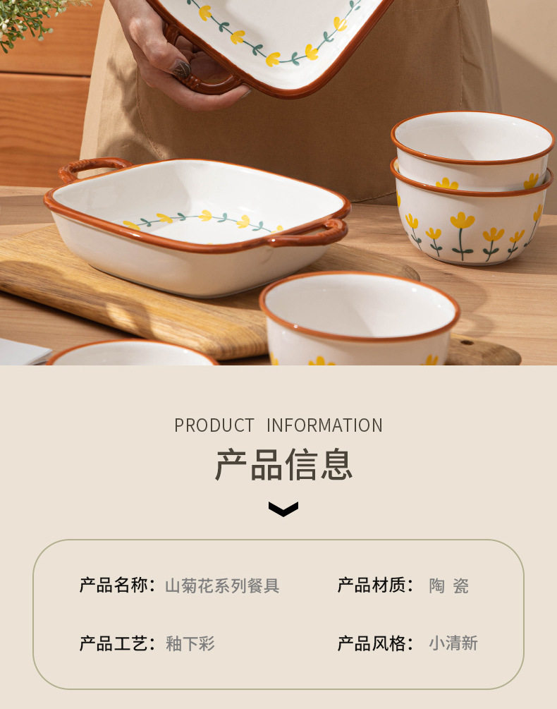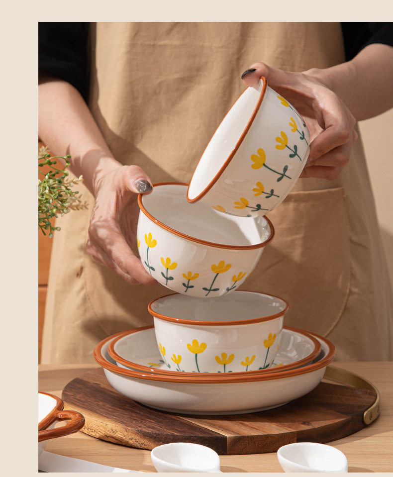 Japanese Style Bowl Ins High Color Value Household Creative Gift Ceramic Tableware suit Rice Bowl Plate Soup Bowl Ceramic Tableware