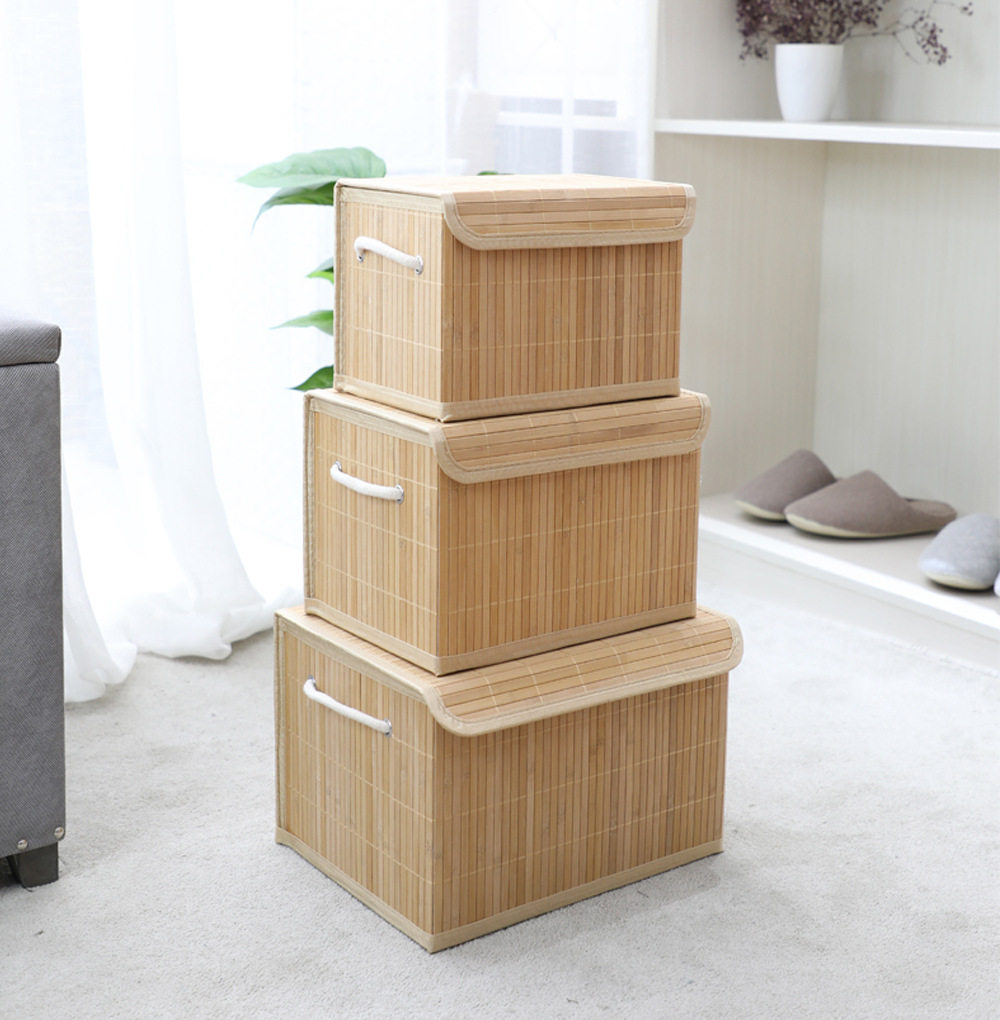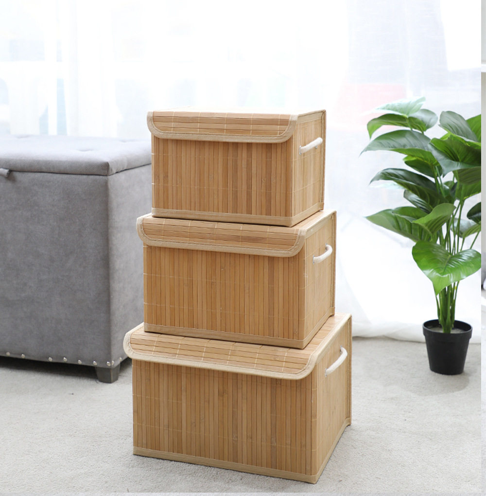 in stock bamboo with lid desktop cosmetics storage box snacks storage bamboo storage basket a generation of TEMU