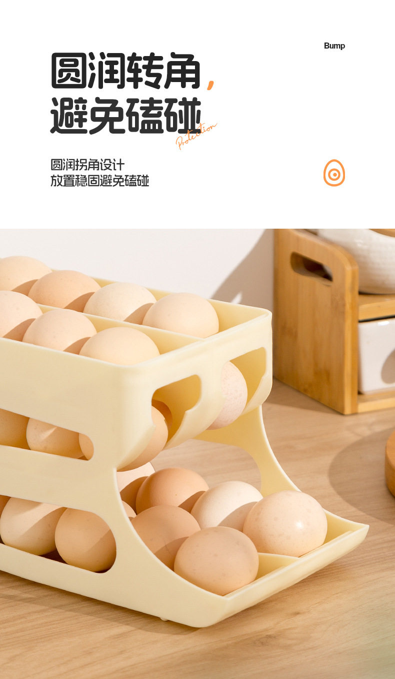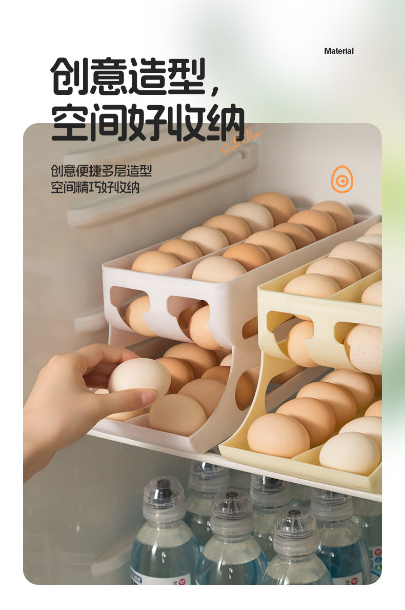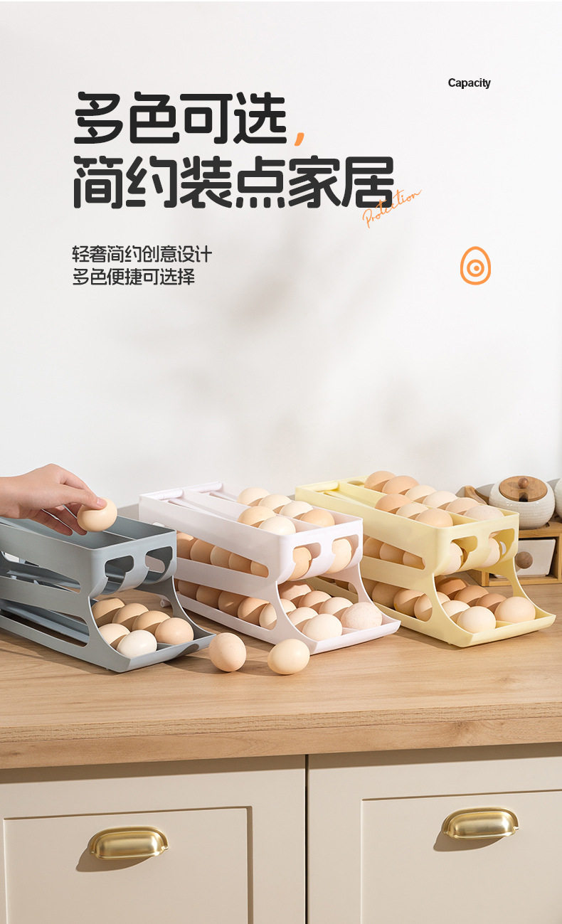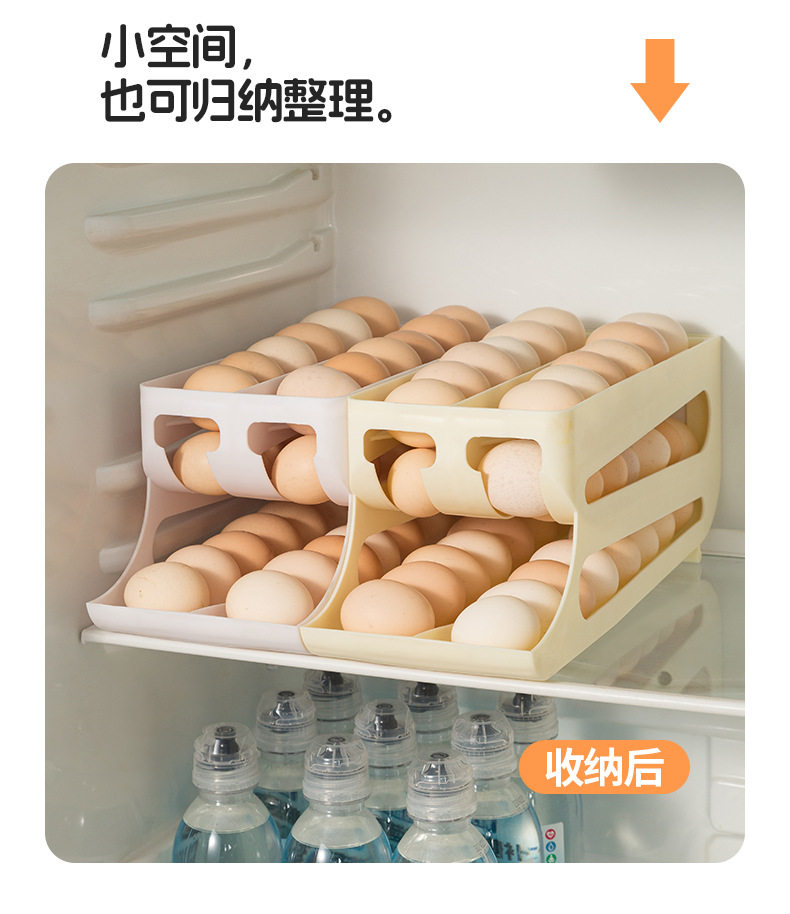 Slide-Type Egg Carton Refrigerator Storage Side Door Three-Layer Double-Row Automatic Egg Roll Kitchen Anti-Fall Egg Storage Rack