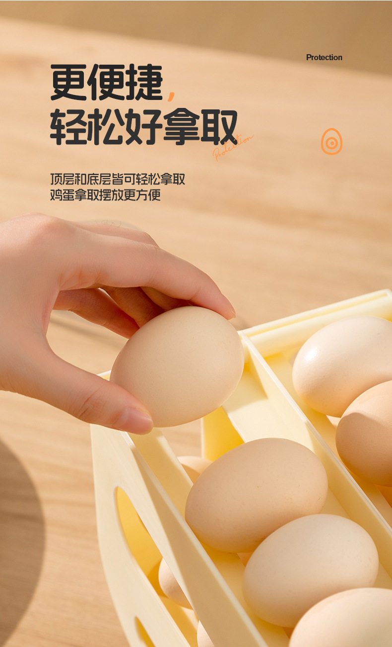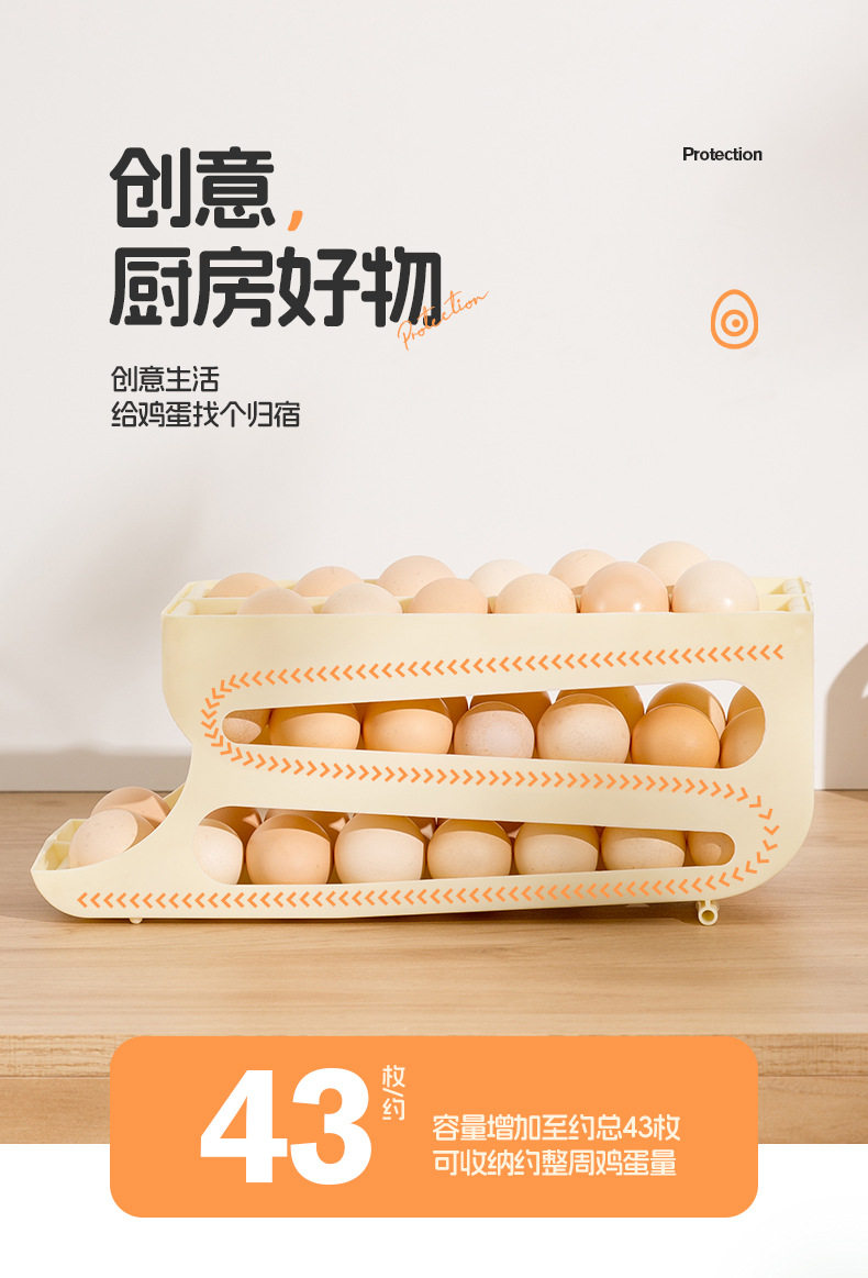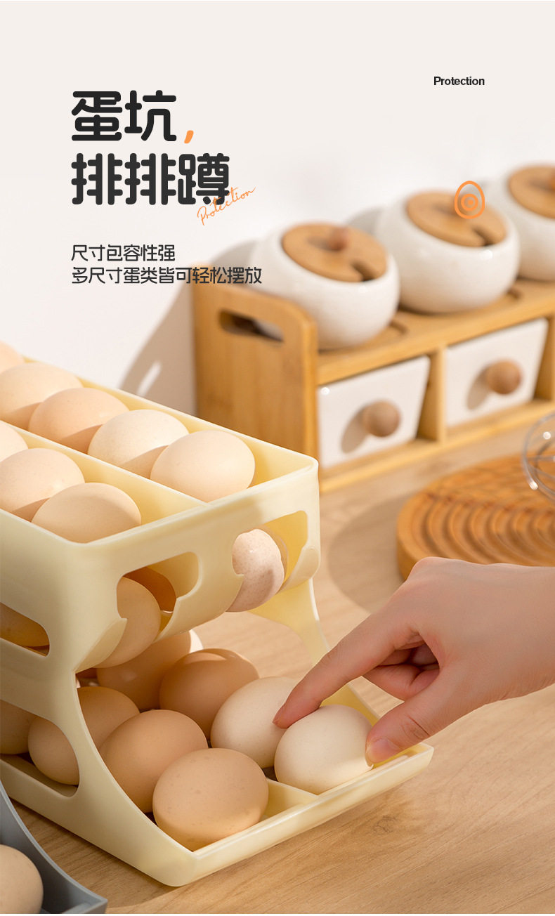 Slide-Type Egg Carton Refrigerator Storage Side Door Three-Layer Double-Row Automatic Egg Roll Kitchen Anti-Fall Egg Storage Rack