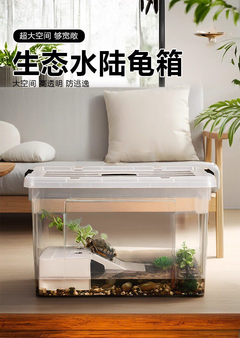 Tortoise Feeding Tank Extra Large Household Plastic Tortoise Tank with Basking Table and Climbing Table Ecological Cover Anti-escape Landscape Making