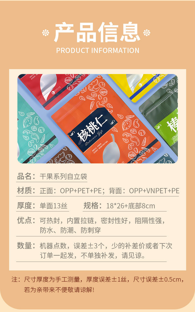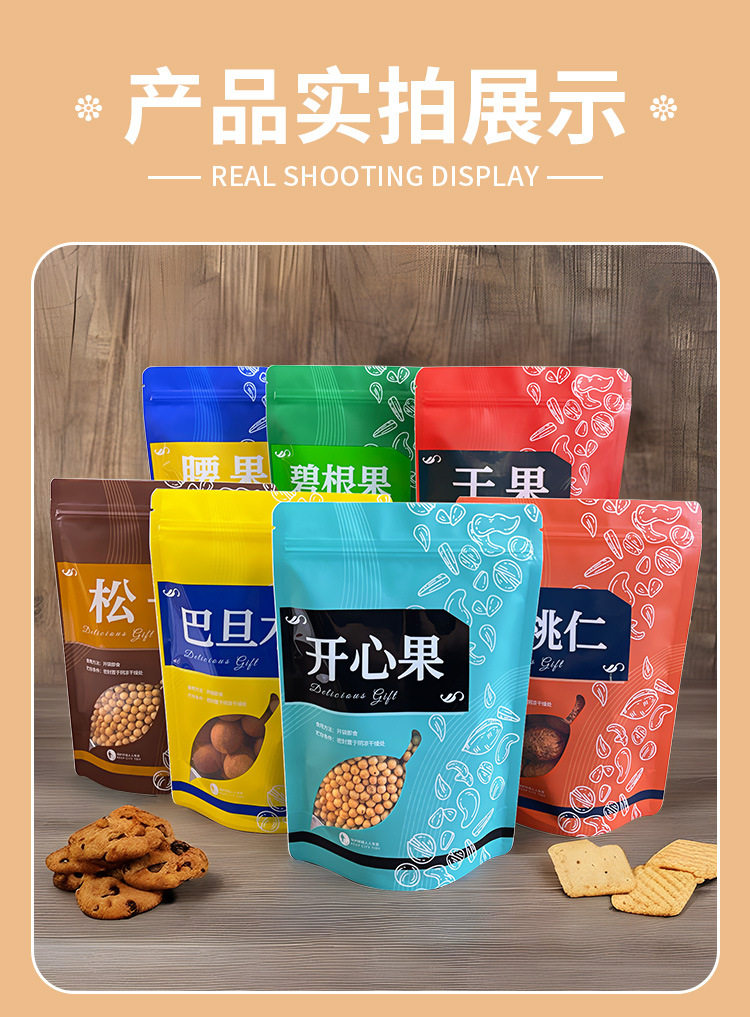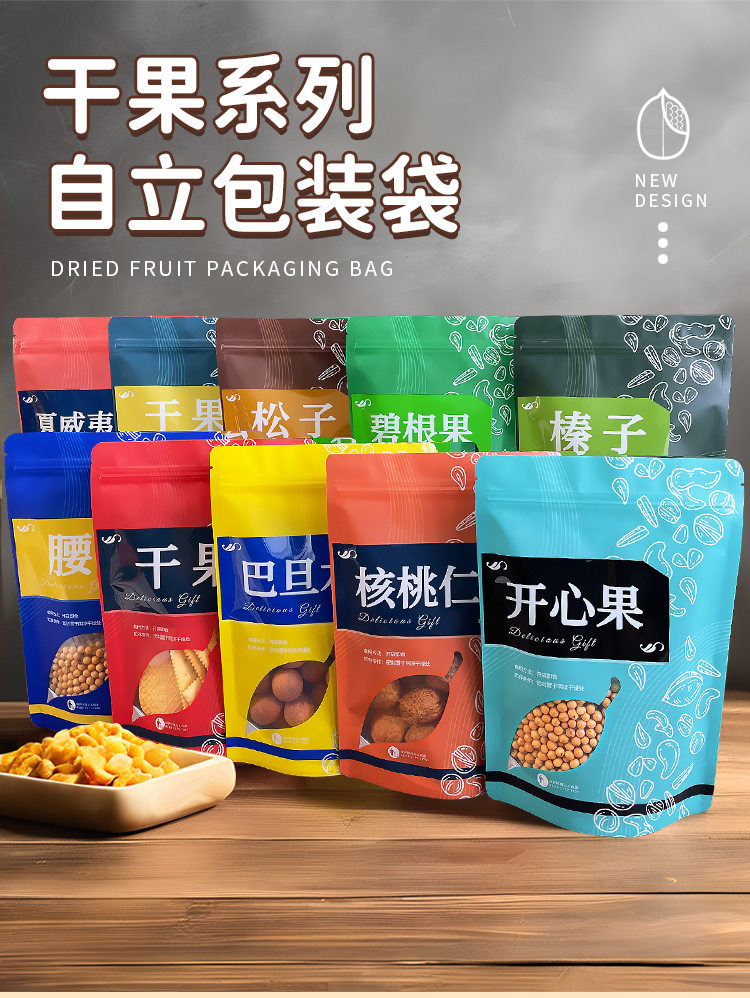 Dried Fruit Series Self-sealing Bag Pistachio Walnut Cashew Food Packaging Bag Self-standing Bag Plastic Self-sealing Bag in stock Self-sealing Bag