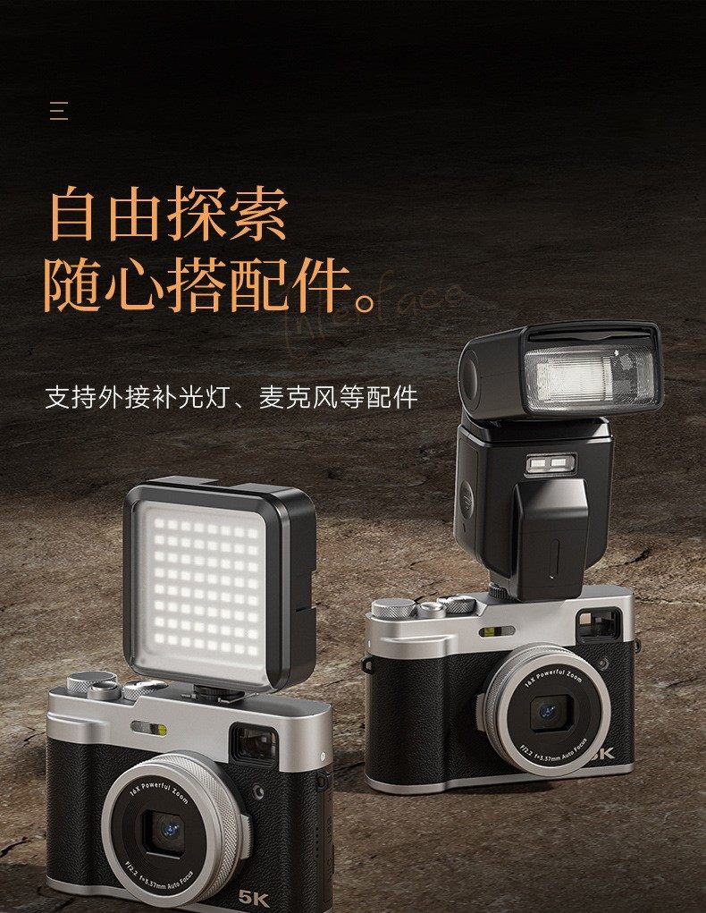 Cross-Border High-Definition 5K Digital Camera, Front and Rear Dual-Camera, Fast Framing and Shooting Camera, Home Mirrorless Retro Camera
