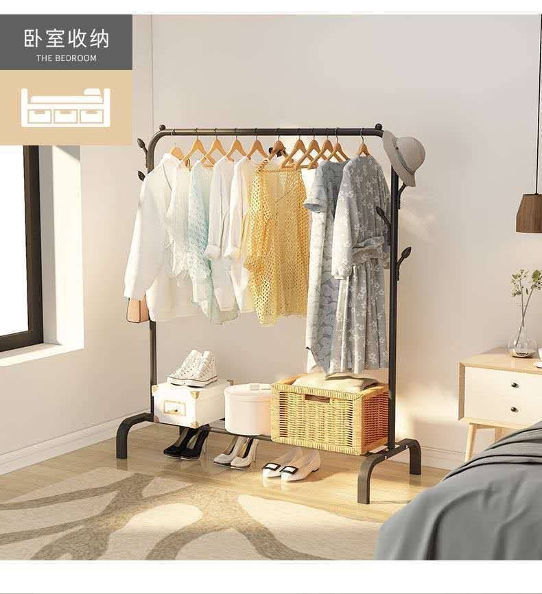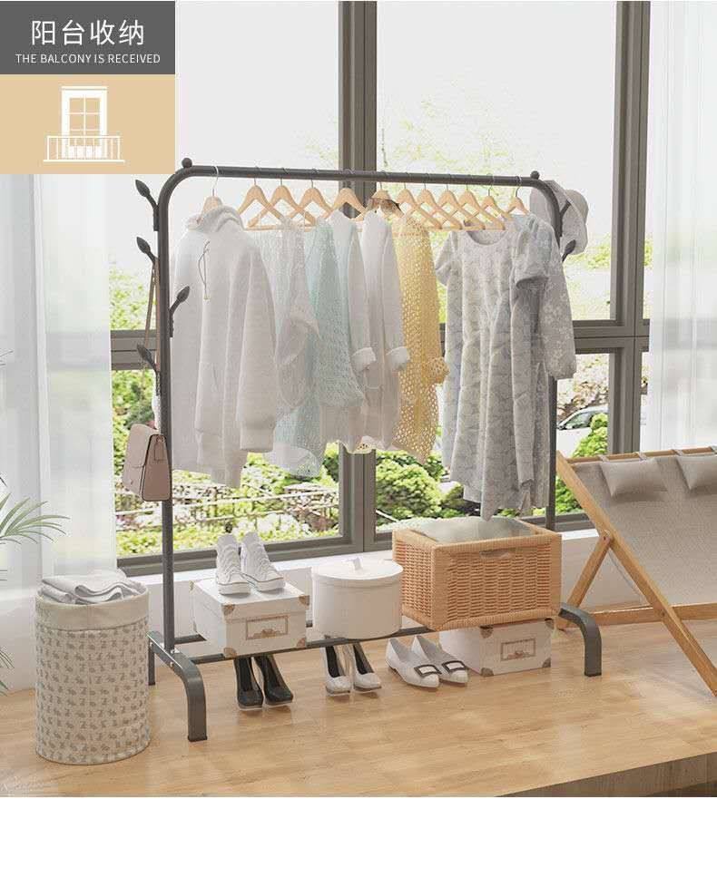 Simple Drying Rack Floor Household Bedroom Balcony Hanger Floor Vertical Storage Rack Thickened Bold Shelf