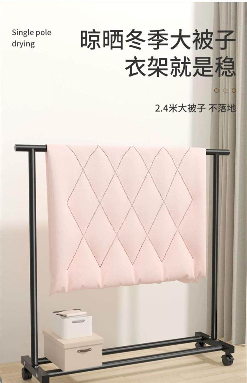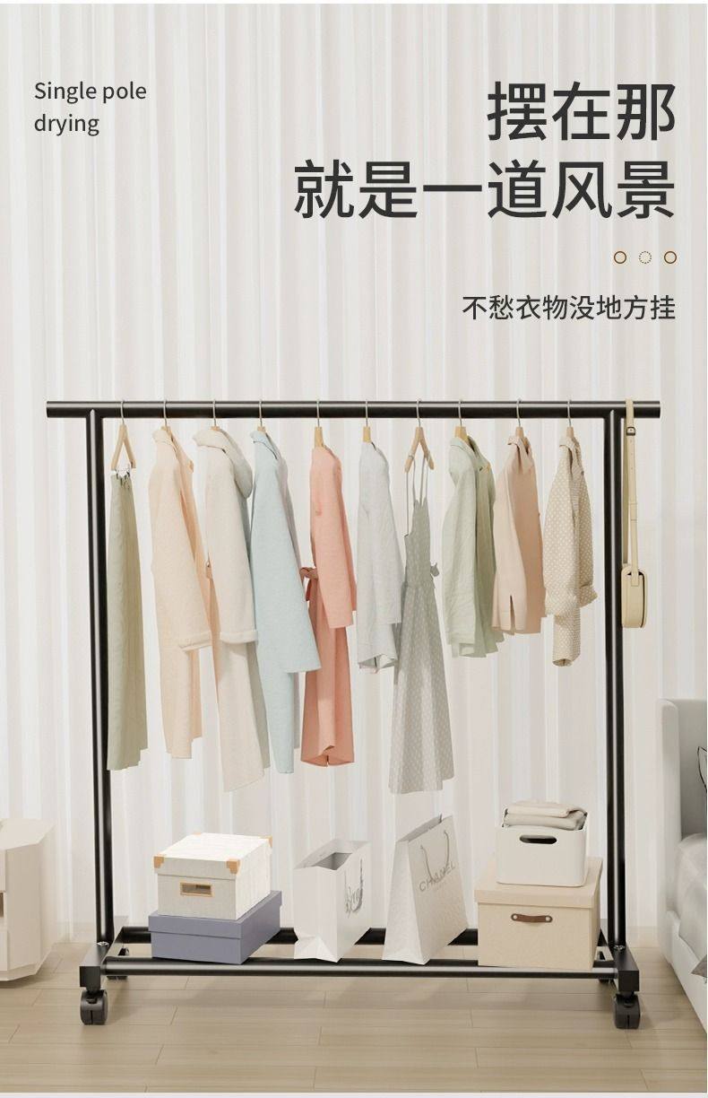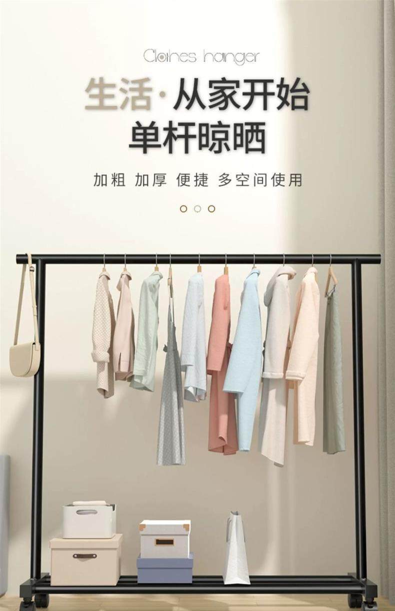 Rough and Thick Simple Clothes Hanger Floor-standing Vertical Household Bedroom Balcony Clothes Hanger Double Row Clothes Rod Mobile Clothes Hanger