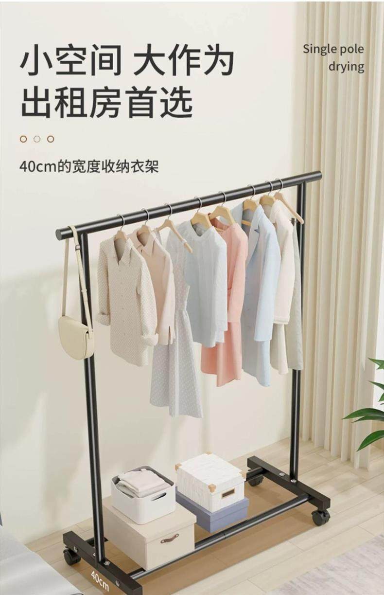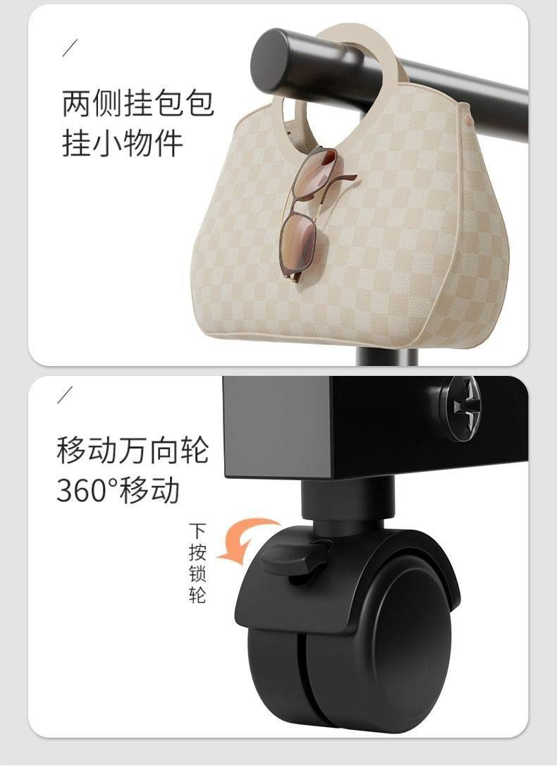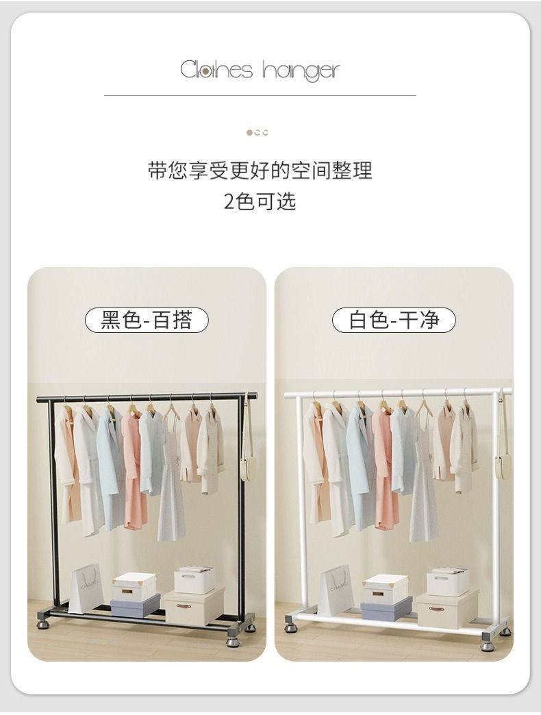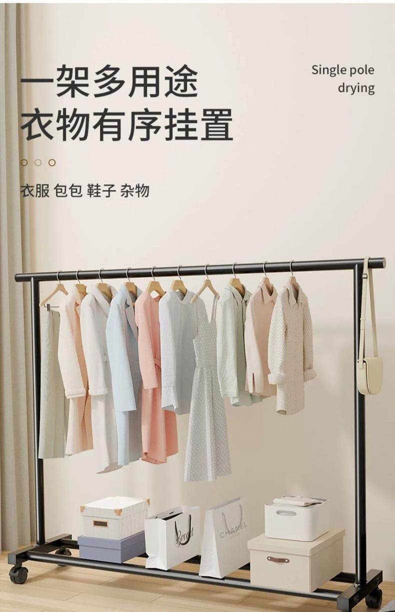 Rough and Thick Simple Clothes Hanger Floor-standing Vertical Household Bedroom Balcony Clothes Hanger Double Row Clothes Rod Mobile Clothes Hanger