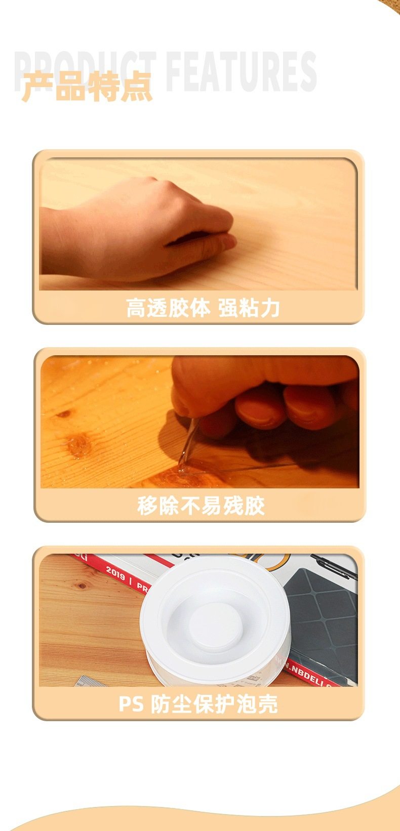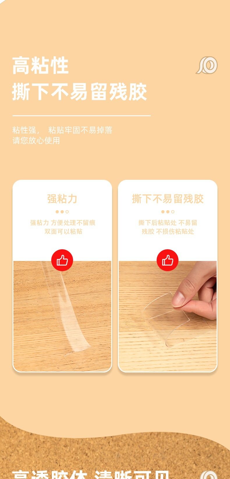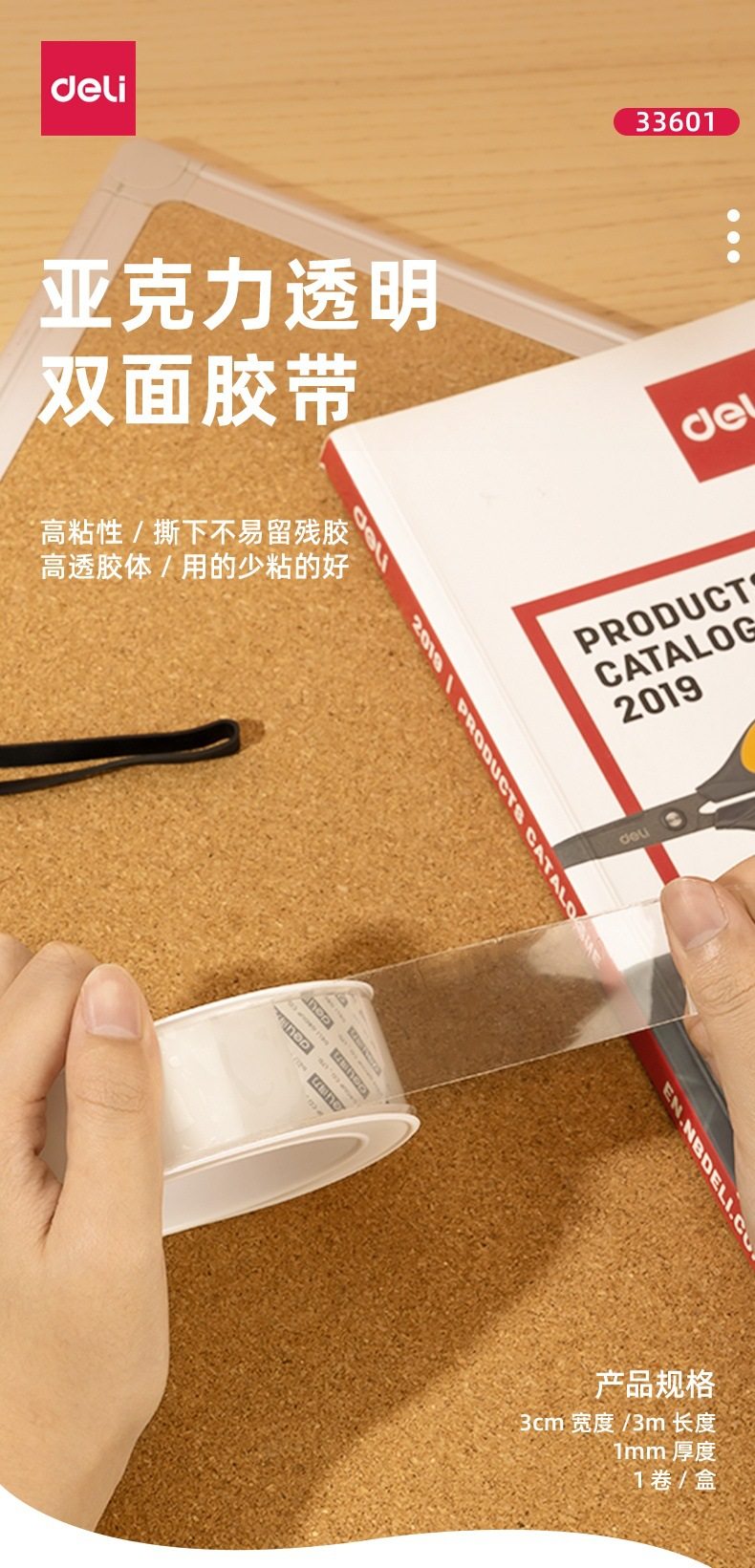 Deli 33601 double-sided adhesive transparent acrylic 30mm * 3m * 1mm nano tape strong adhesion high viscosity easy to tear