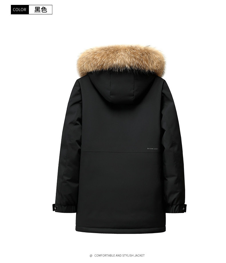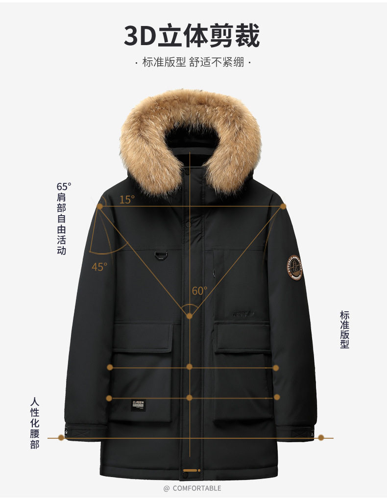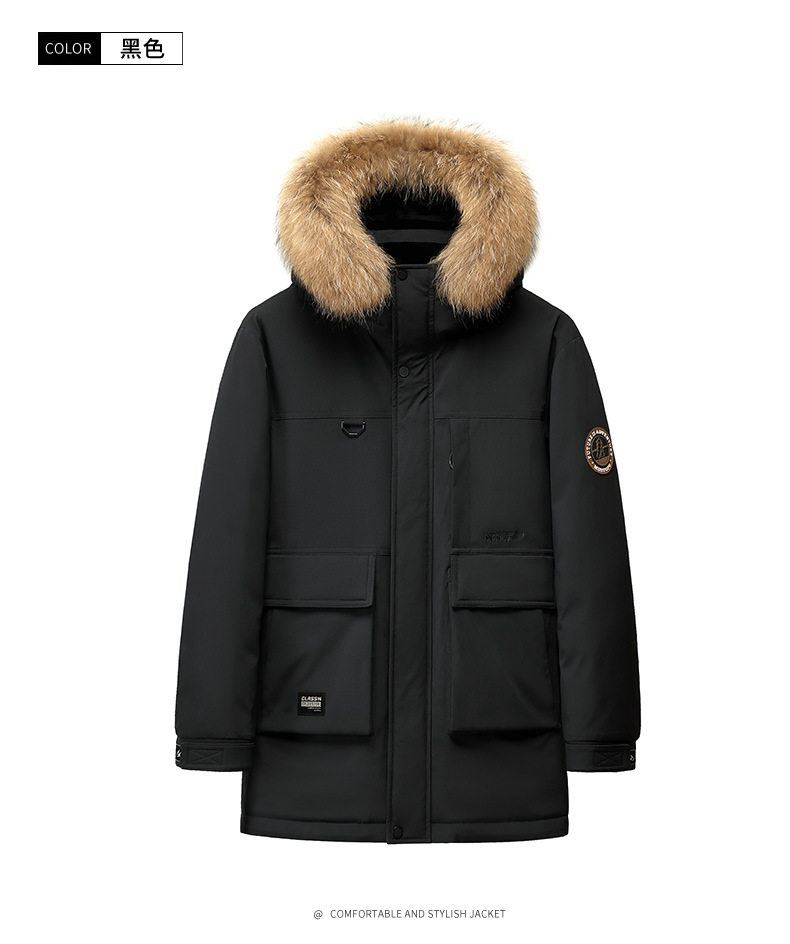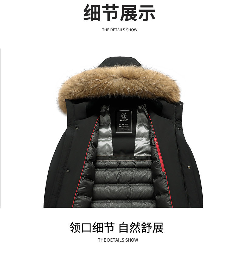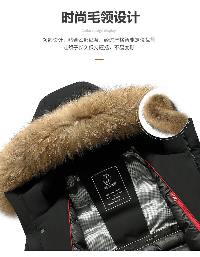 Extremely cold thickened cap design with removable raccoon fur collar high efficiency cold long down jacket.