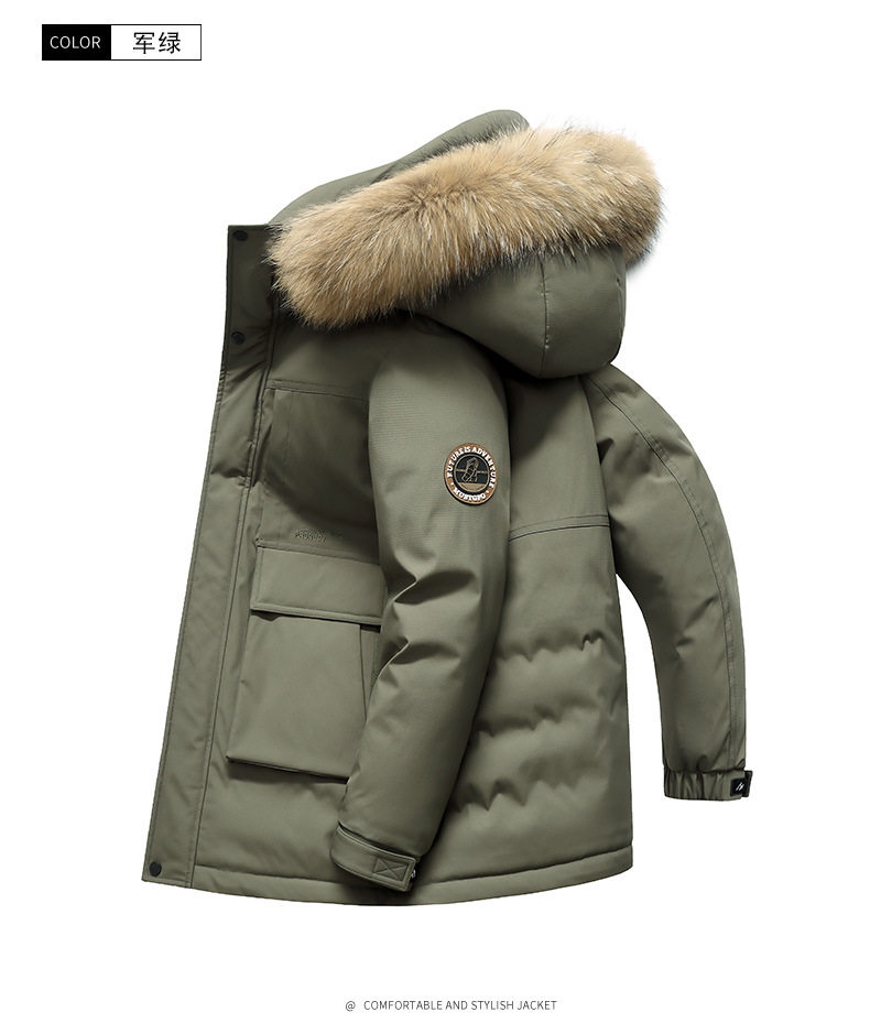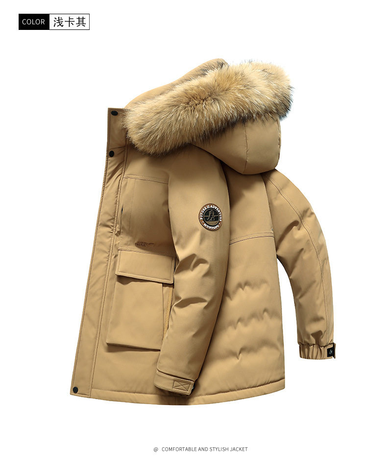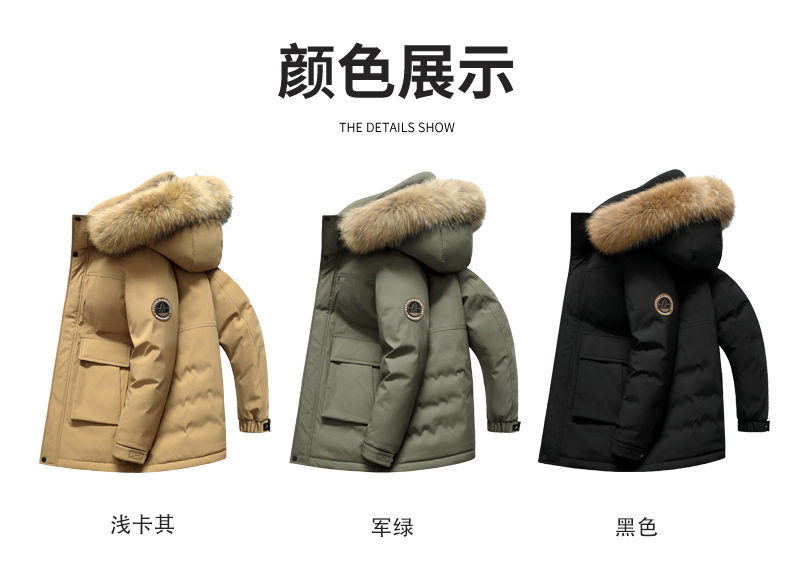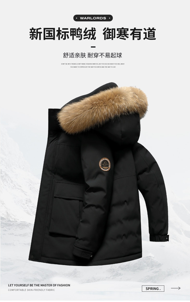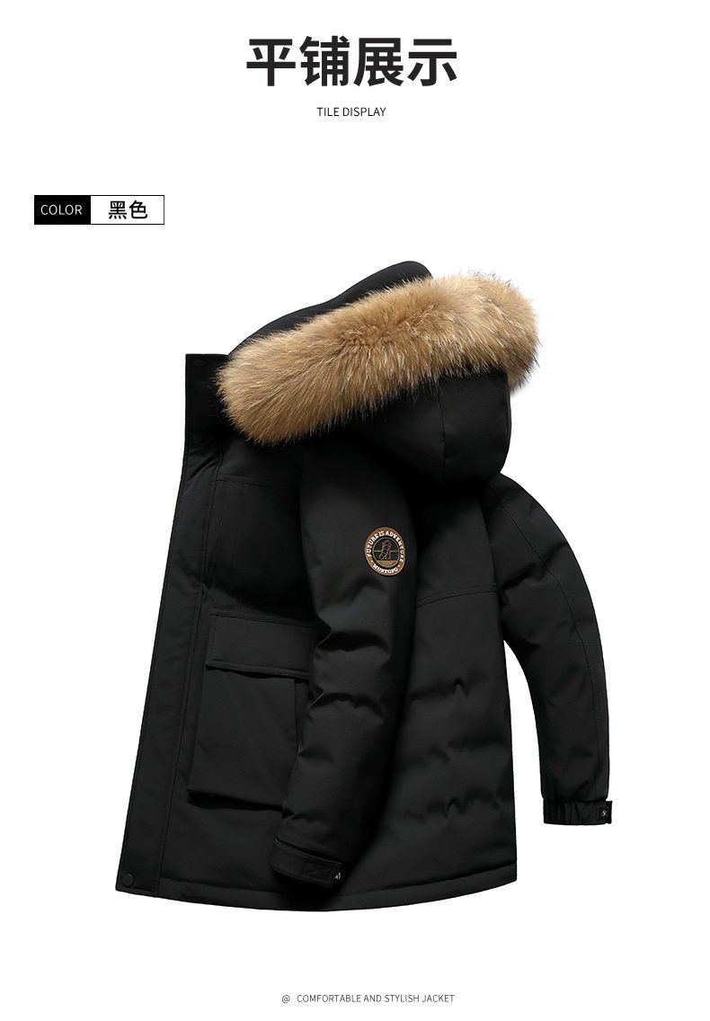 Extremely cold thickened cap design with removable raccoon fur collar high efficiency cold long down jacket.
