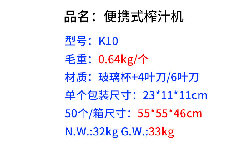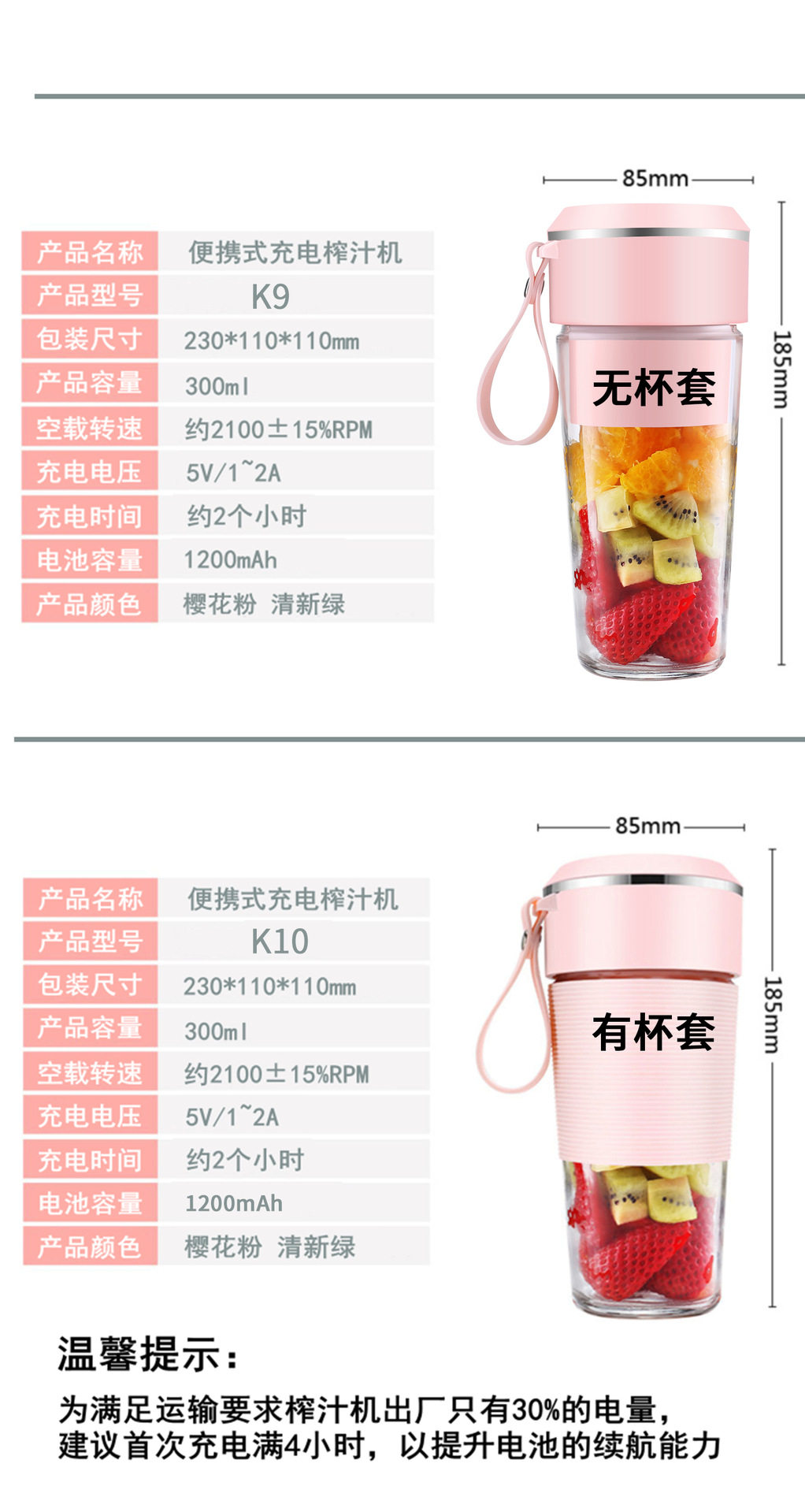 Internet Celebrity K10 Manufacturer Portable Juicer USB Charging Small Automatic Juicer Custom Logo Cross-Border Juicer Cup