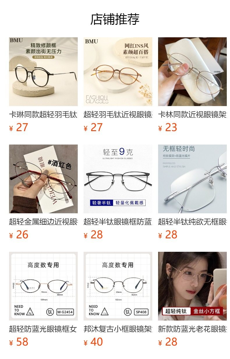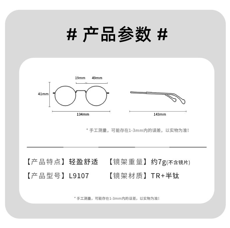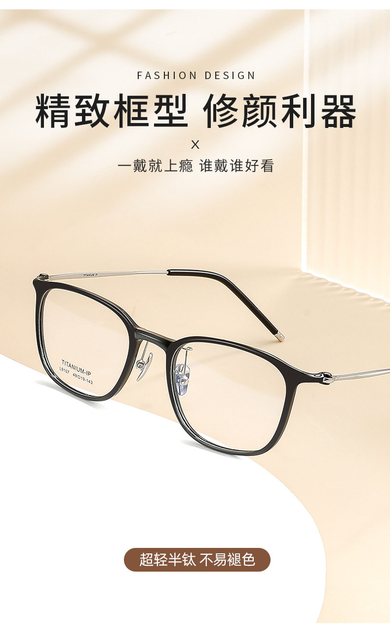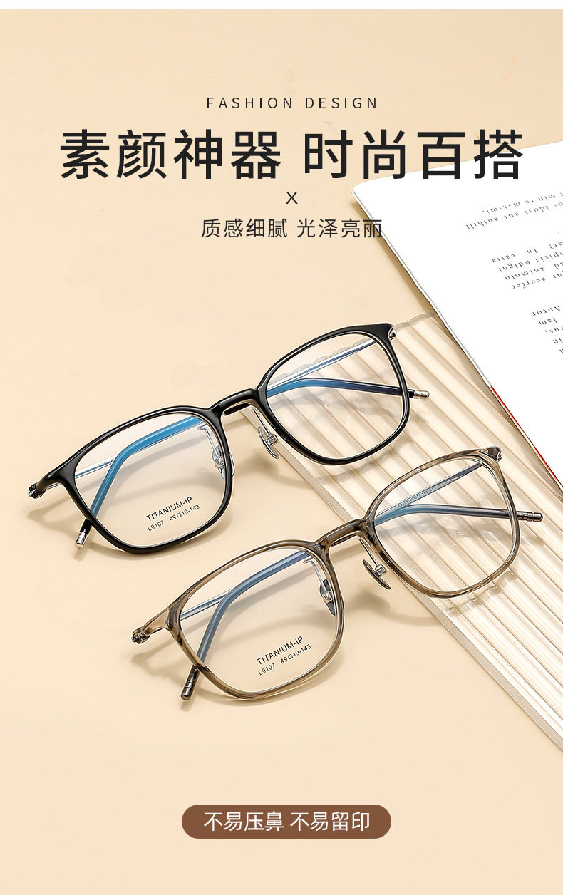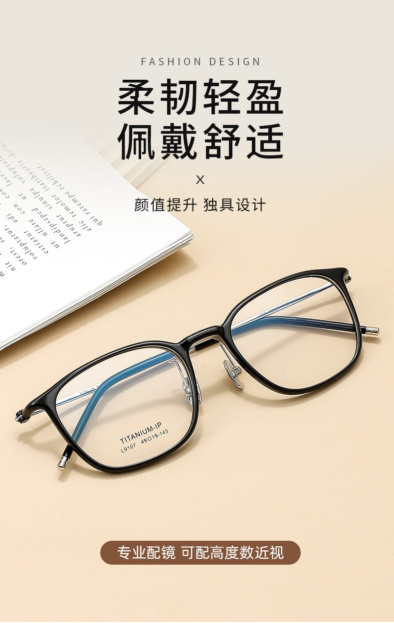 Ultra light feather titanium 7g black frame glasses 49mm men and women myopia can be equipped with degree student glasses frame wholesale 9107