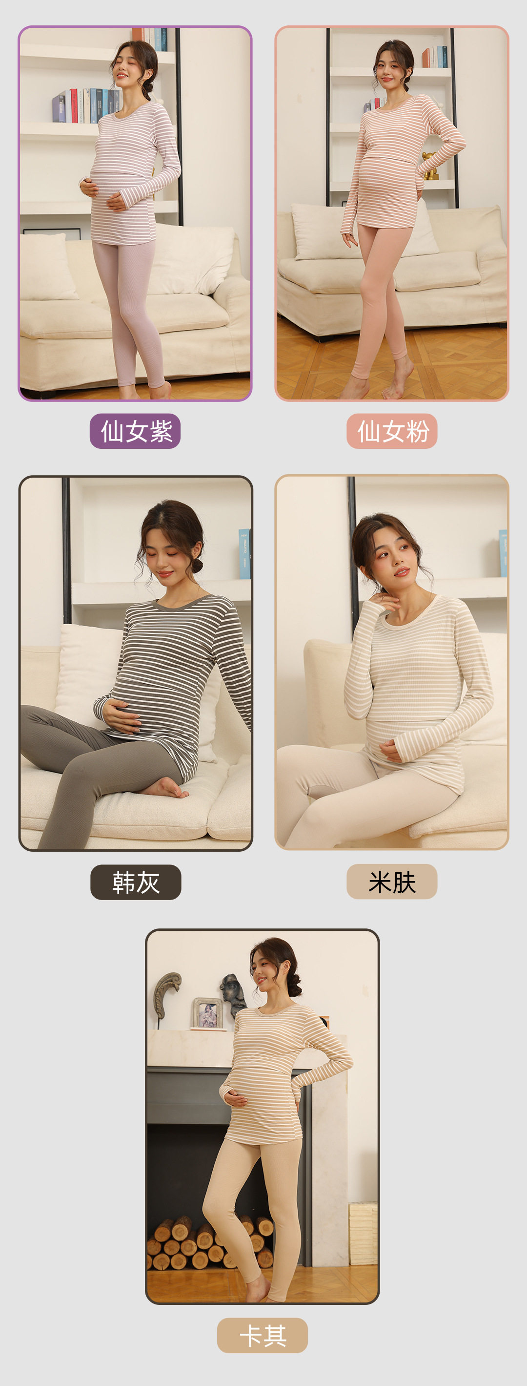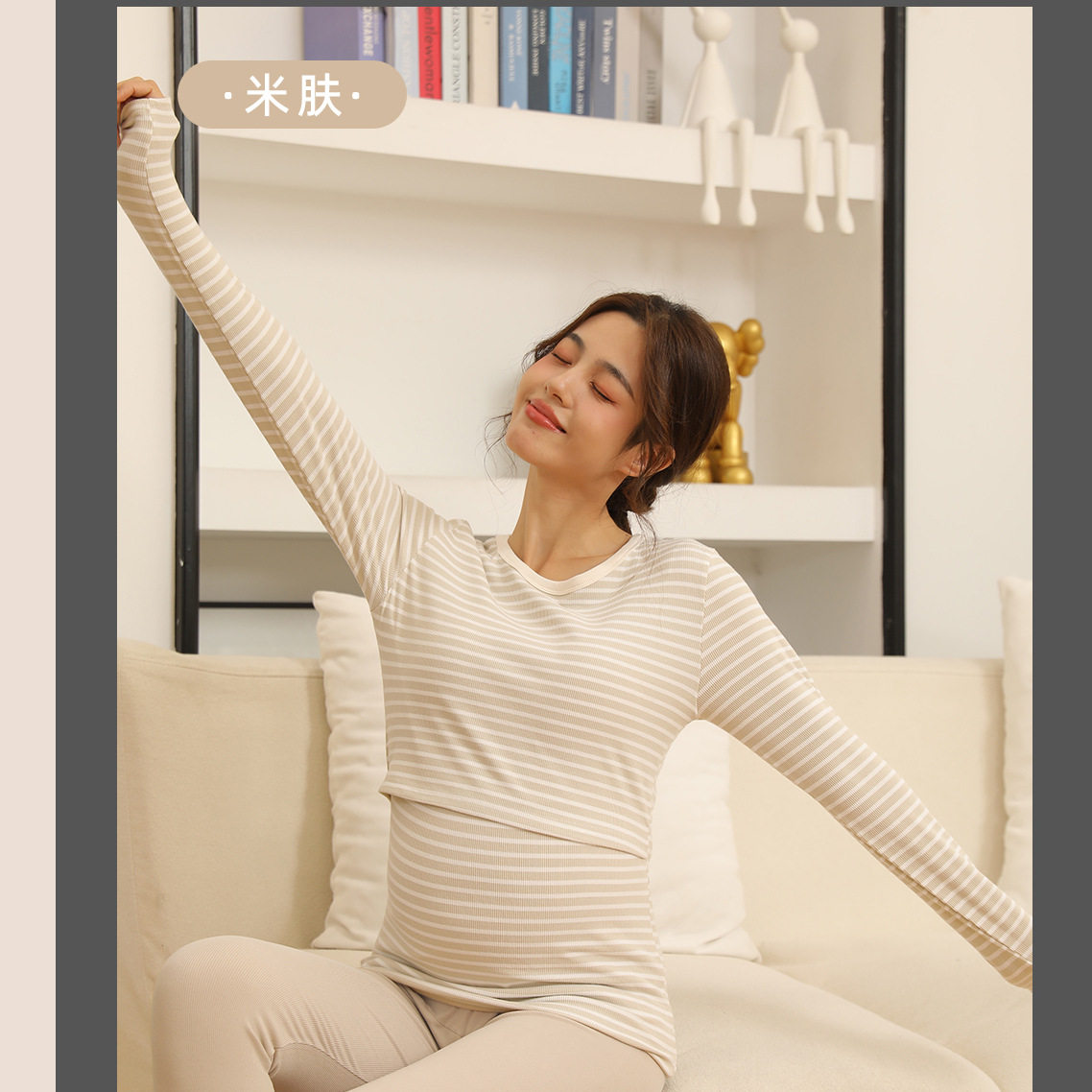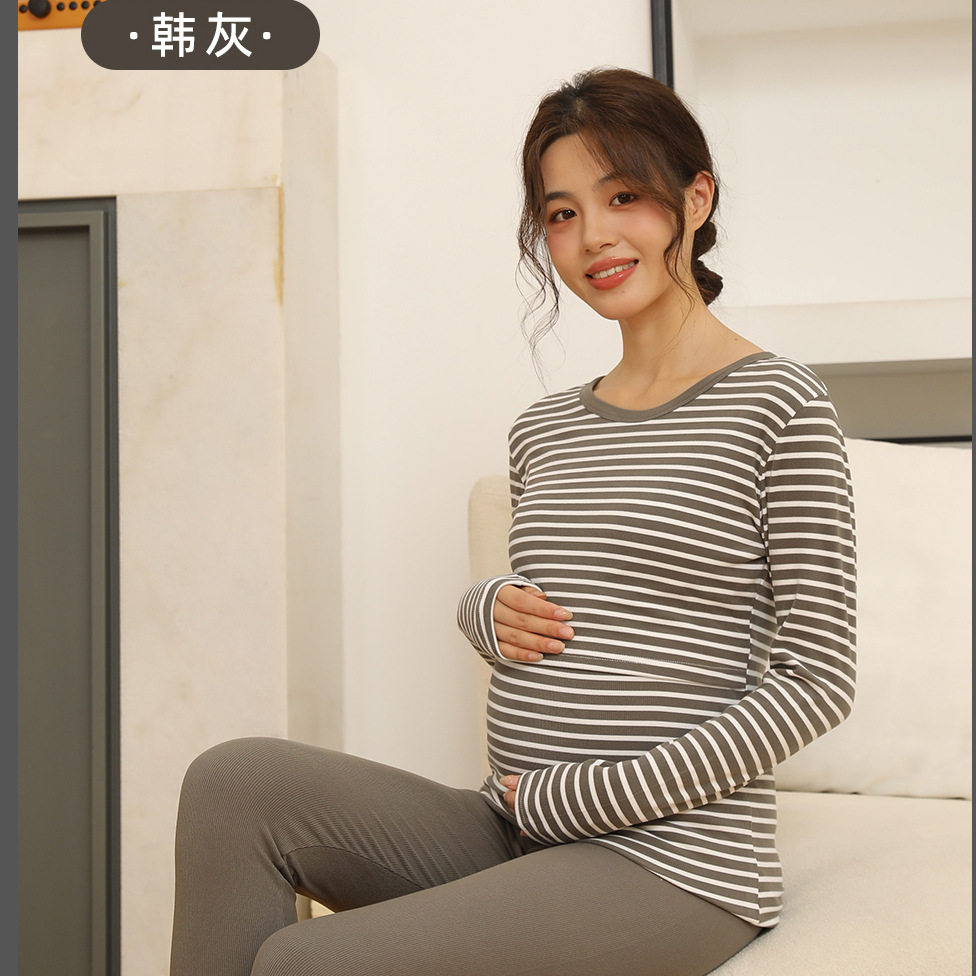 Autumn and Winter Pregnant Women's Autumn Clothes and Pants suit Horizontal Stripe Postpartum Lactation Maternity Warm Underwear