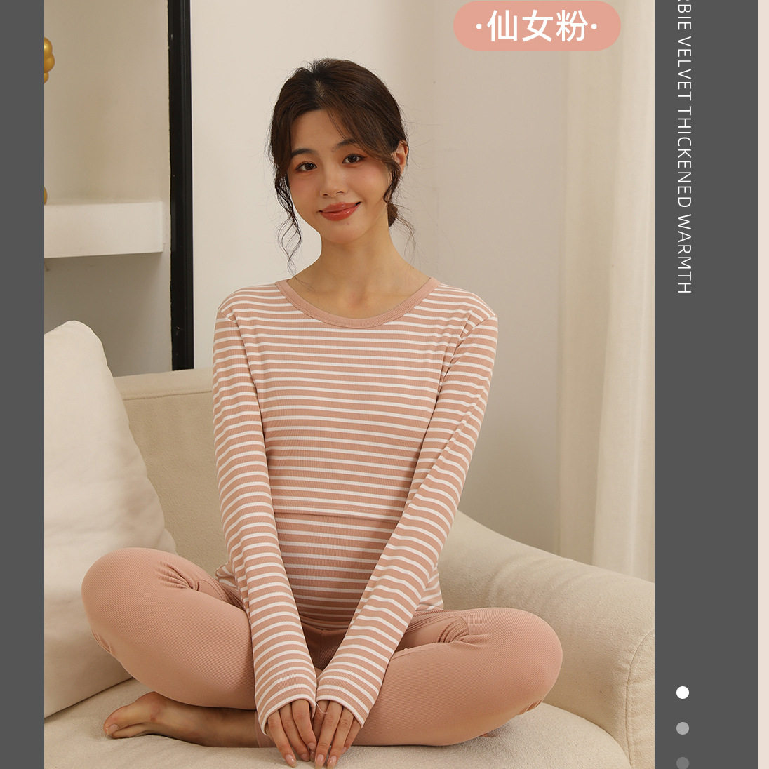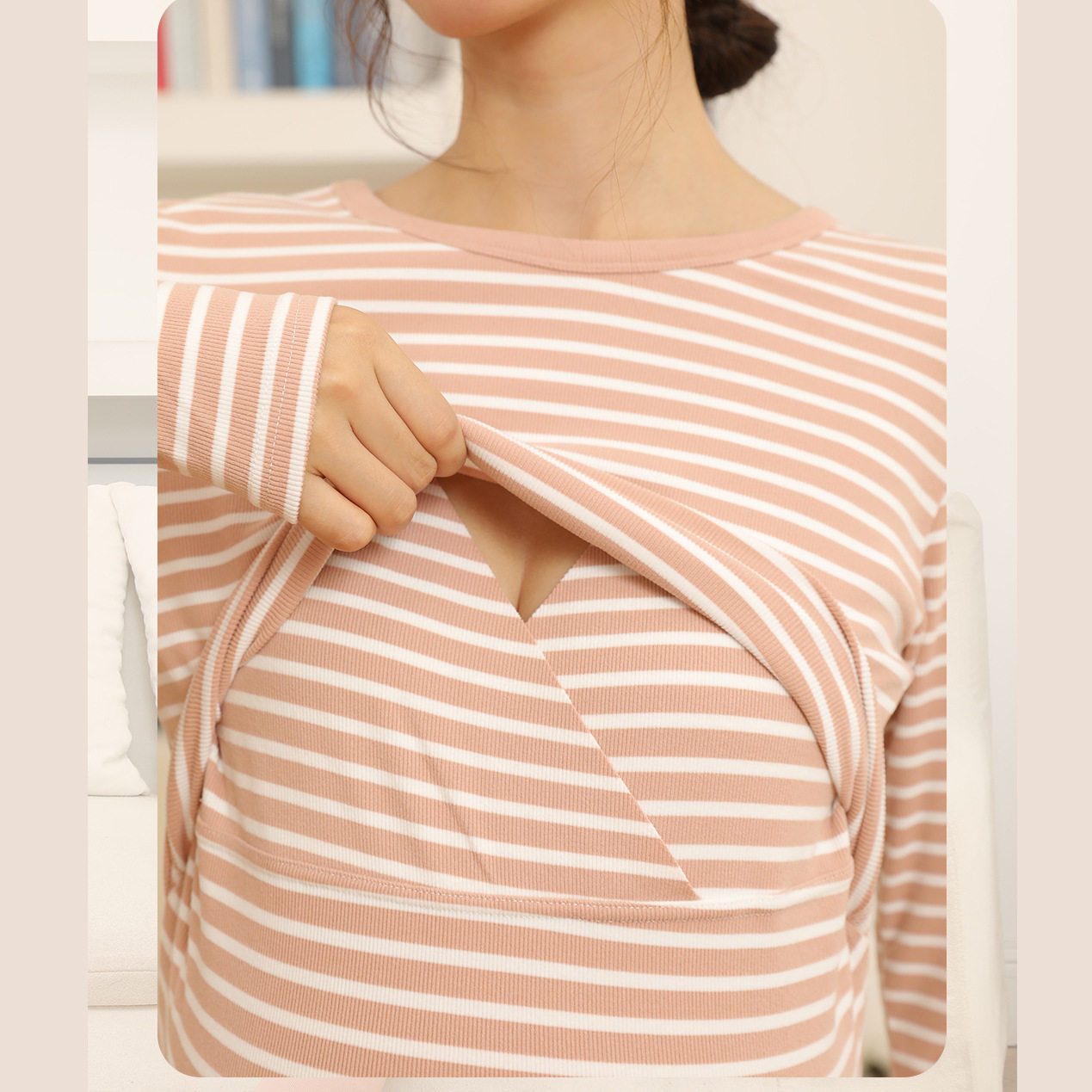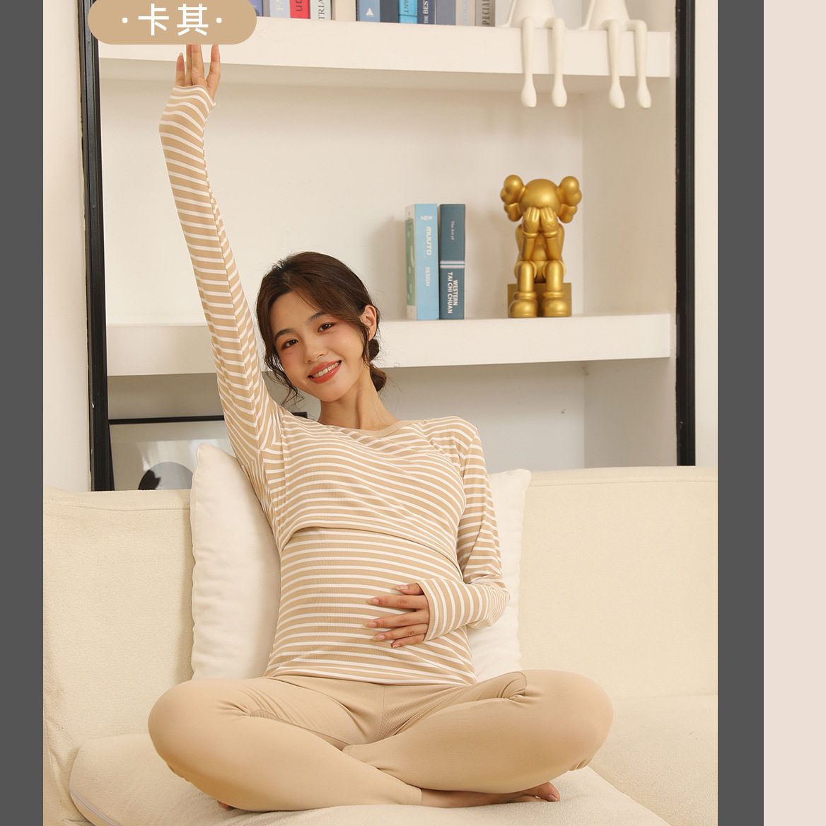 Autumn and Winter Pregnant Women's Autumn Clothes and Pants suit Horizontal Stripe Postpartum Lactation Maternity Warm Underwear