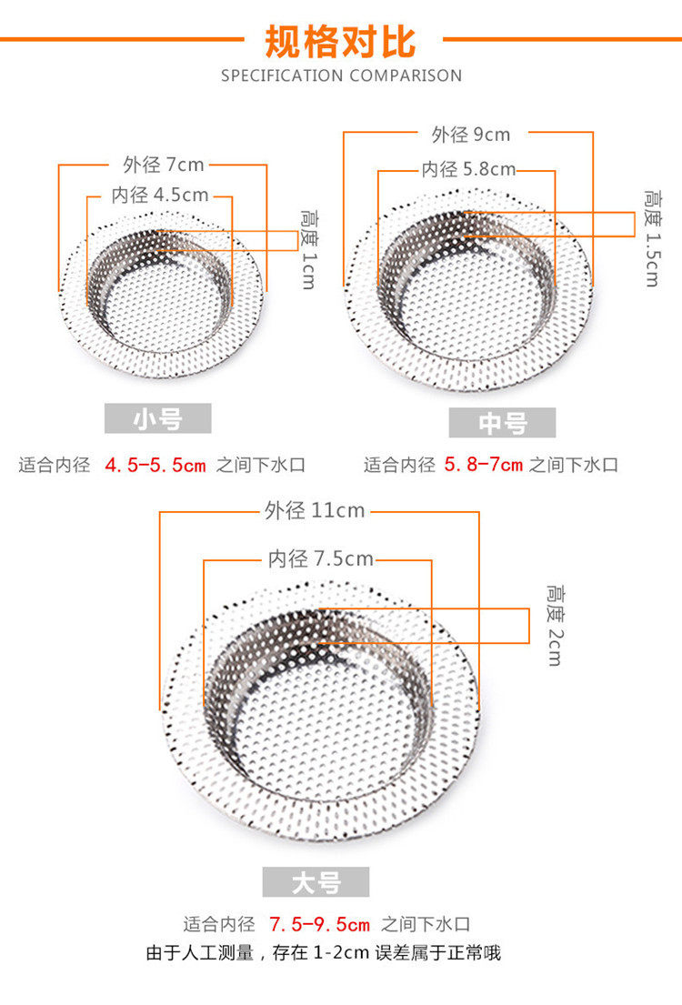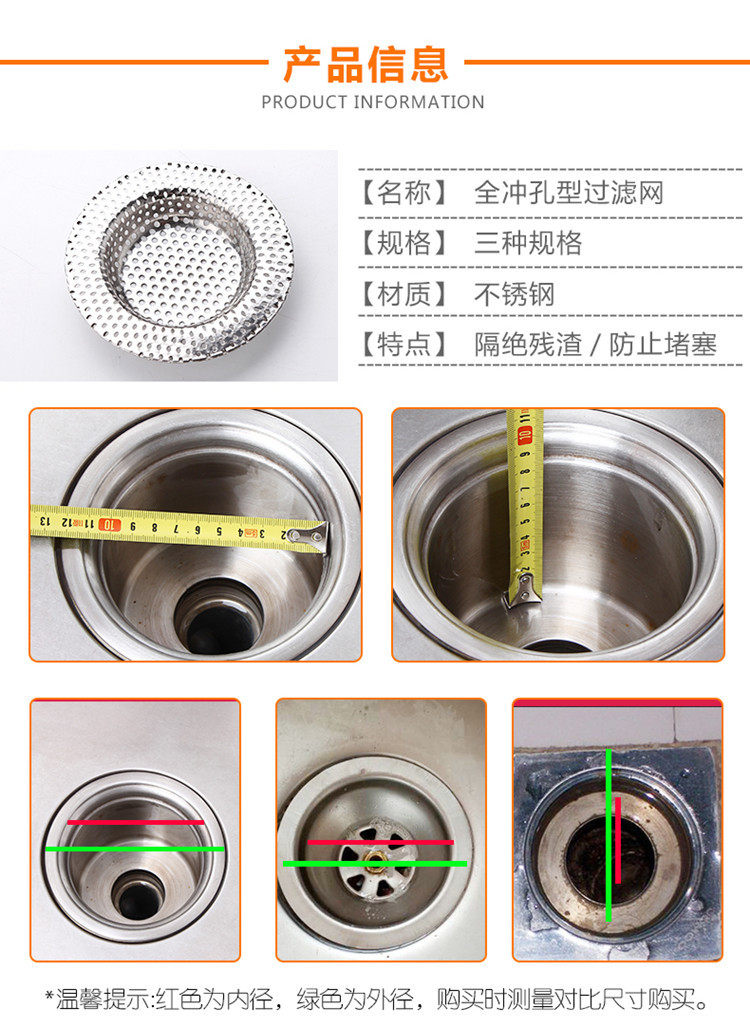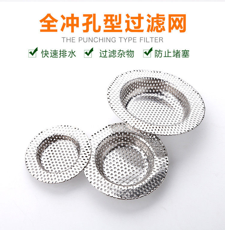 Fully Punched Kitchen Sink Filter, Vegetable Basin, Stainless Steel Sewer Garbage Filter, Hair Cage Lifter