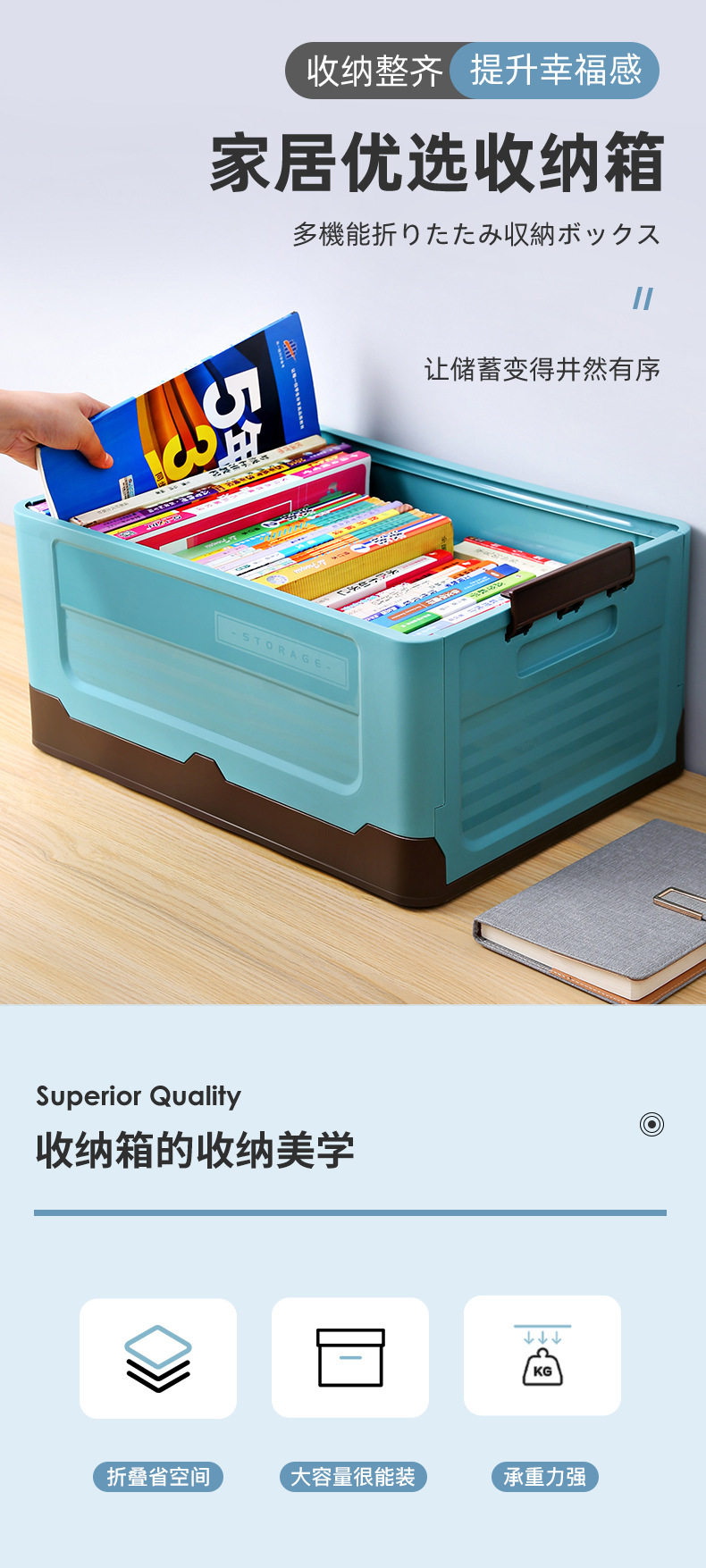 Foldable Book Storage Box Household Plastic Clothes Toys Student Books Classroom Dormitory Storage Box