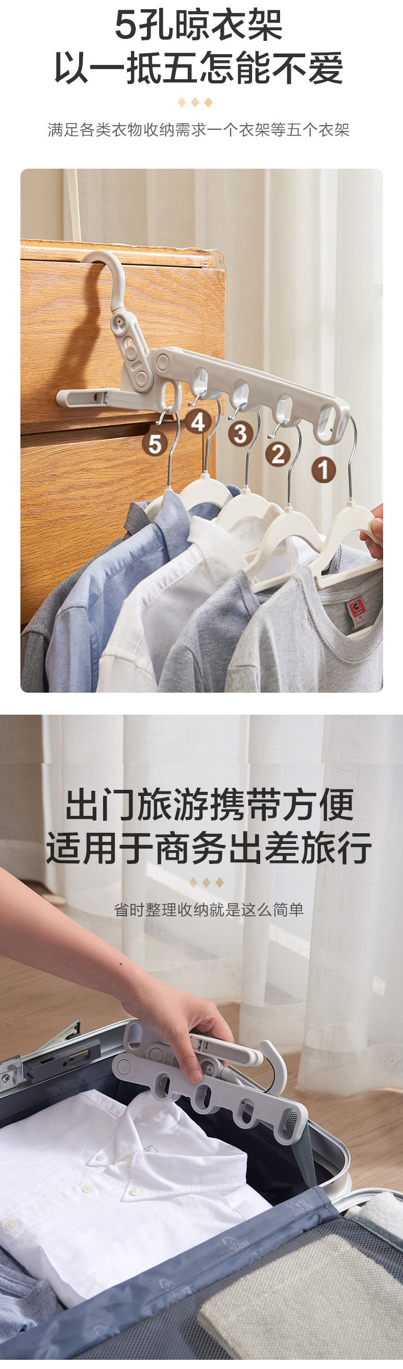 Travel Five-hole Folding Hanger Portable Adjustable Magic Wardrobe Hanger Load-bearing Strong Thickened Balcony Drying Hanger