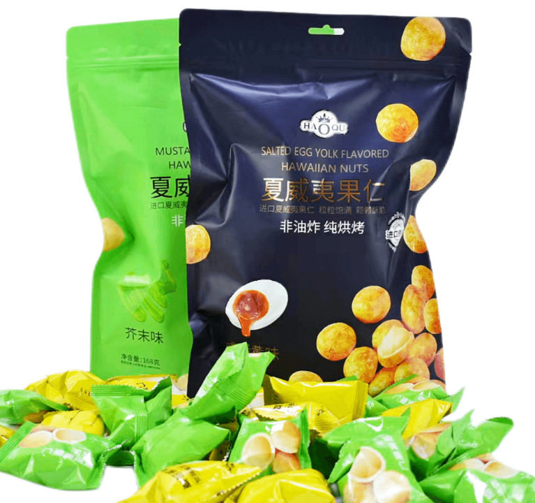 Haoqi Hawaiian Nut 168g Bagged Mustard Salted Egg Yolk Flavor Nut Snacks Independent Small Packaging Leisure Wholesale