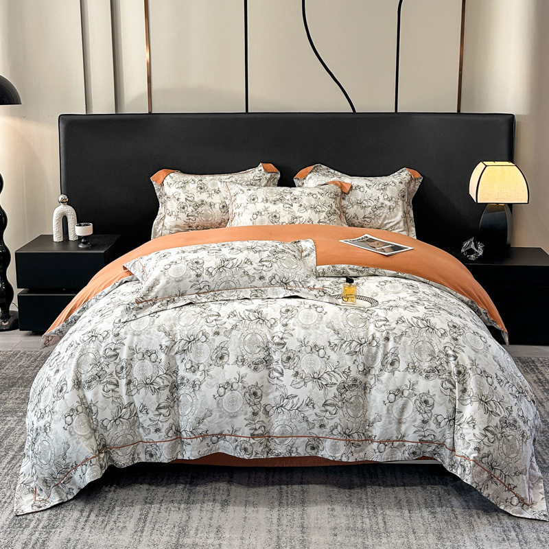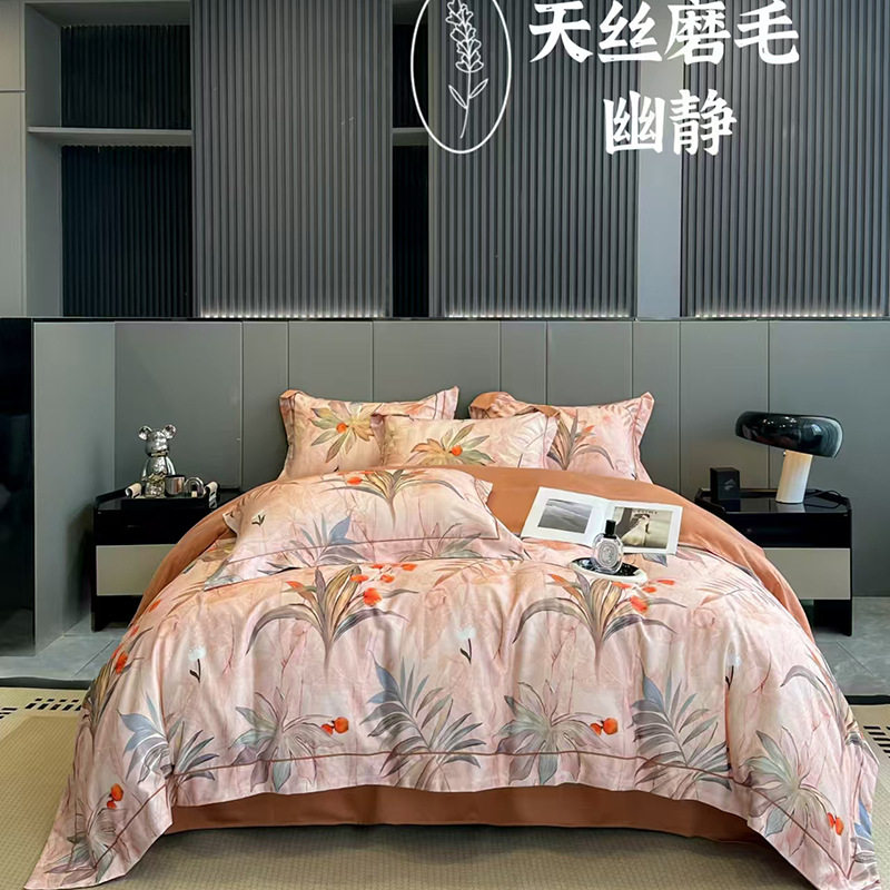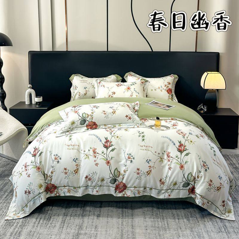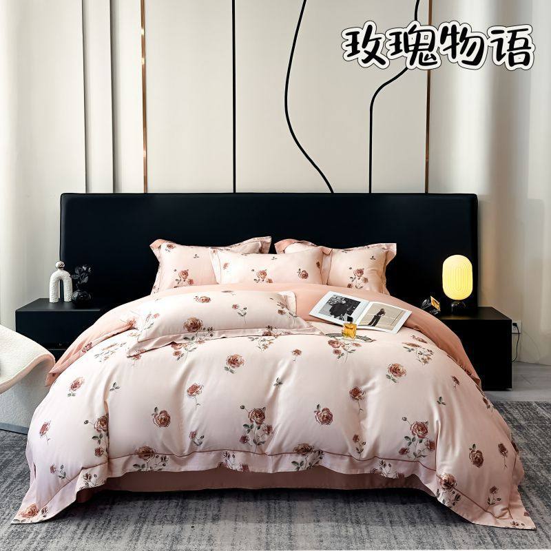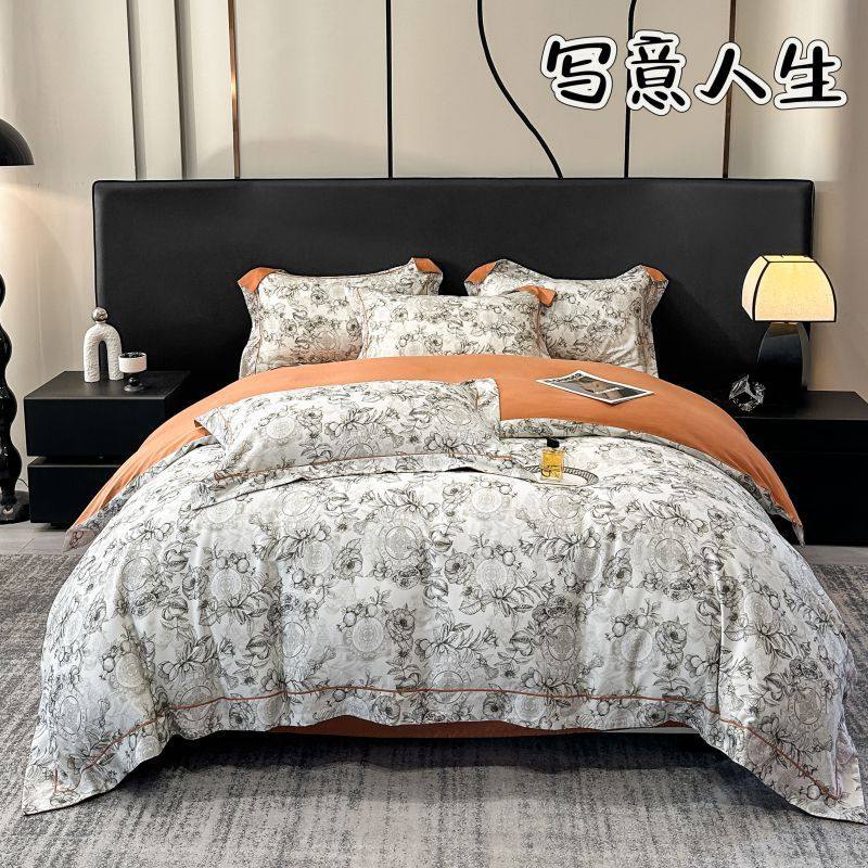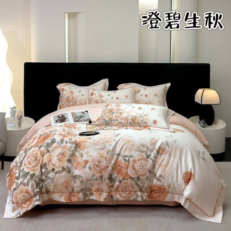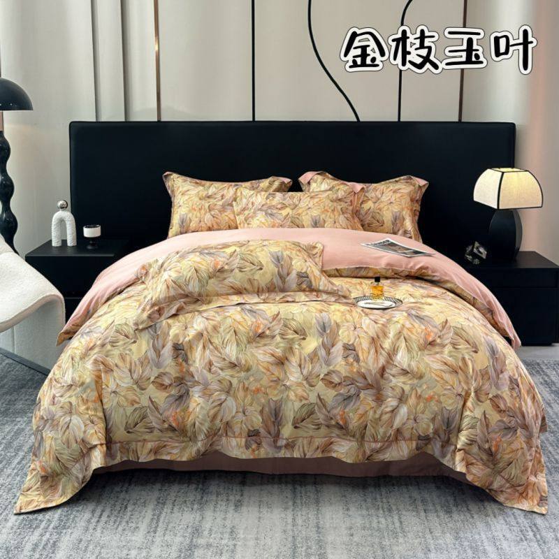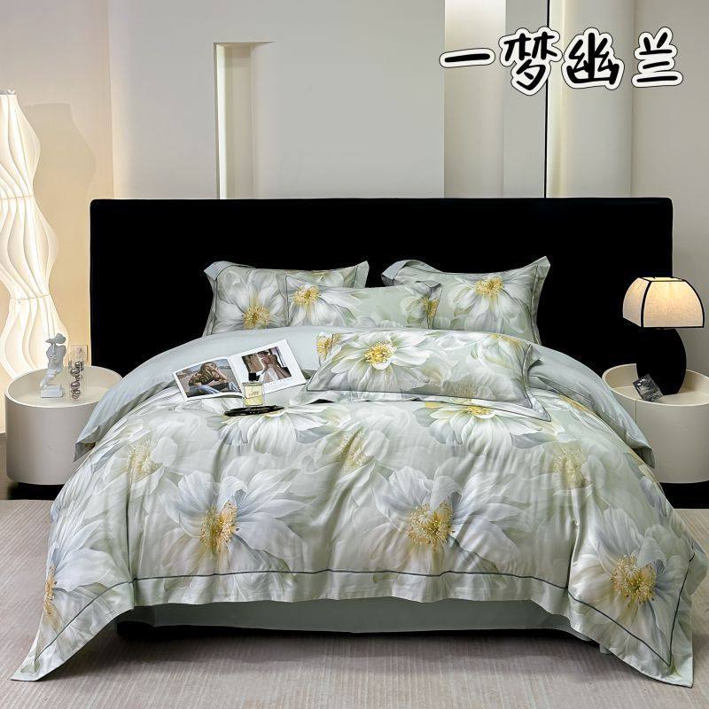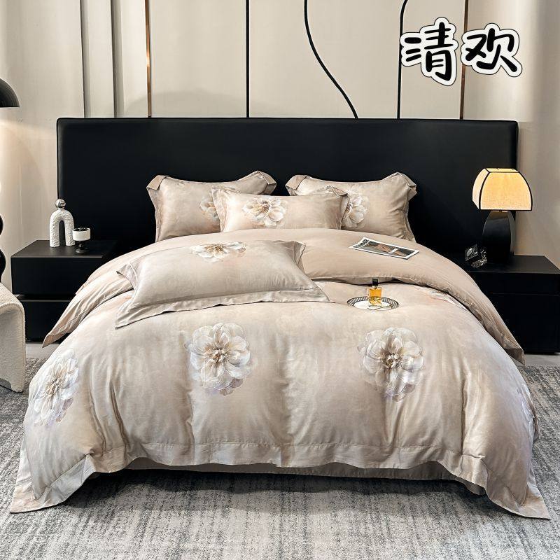 100-Count Tencel Cotton Brushed Four-Piece Set Autumn and Winter Cotton Bed Bed Sheets Quilt Cover Accessible Luxury Printed Cotton Bedding