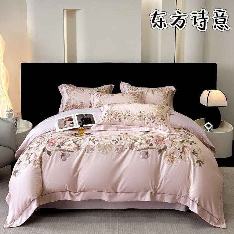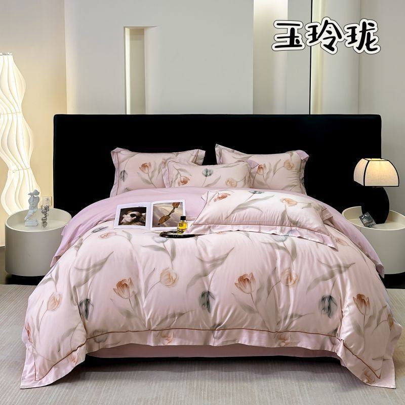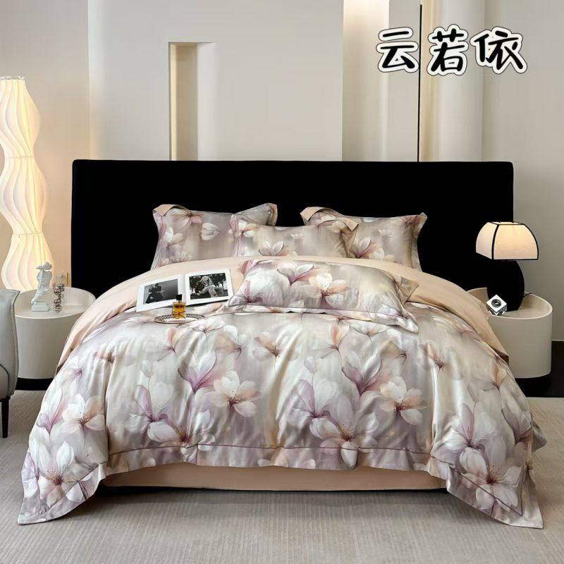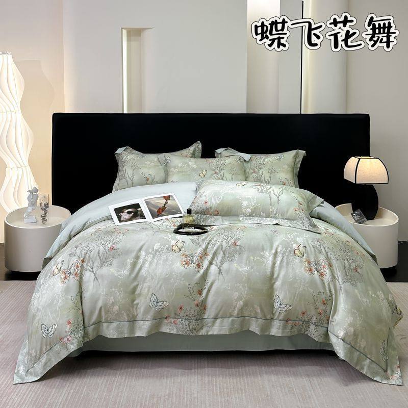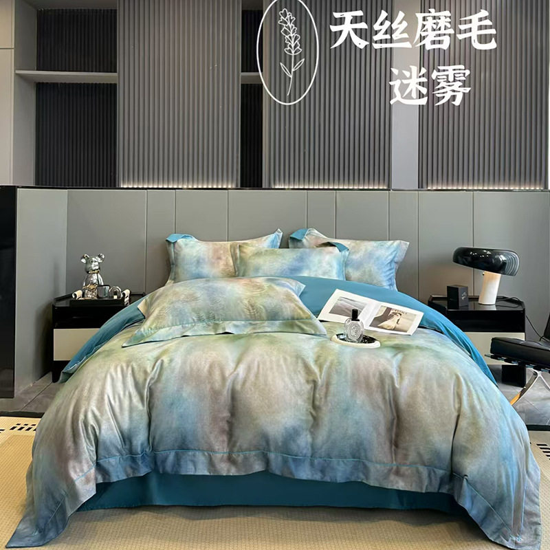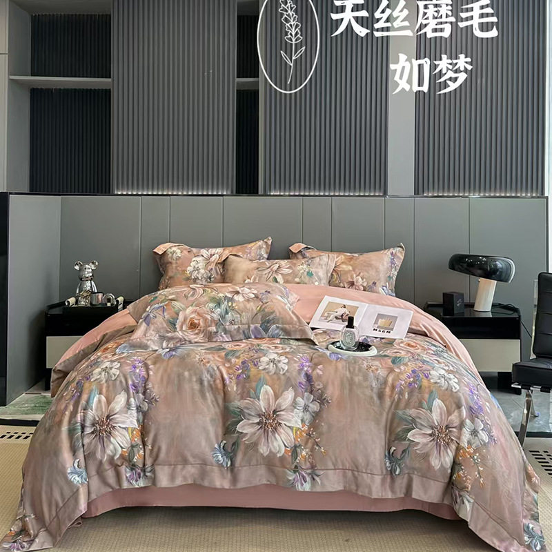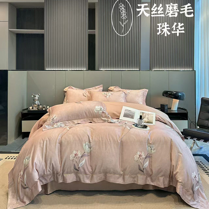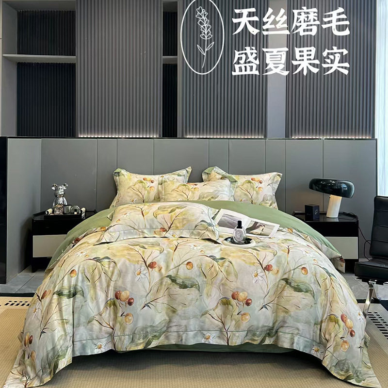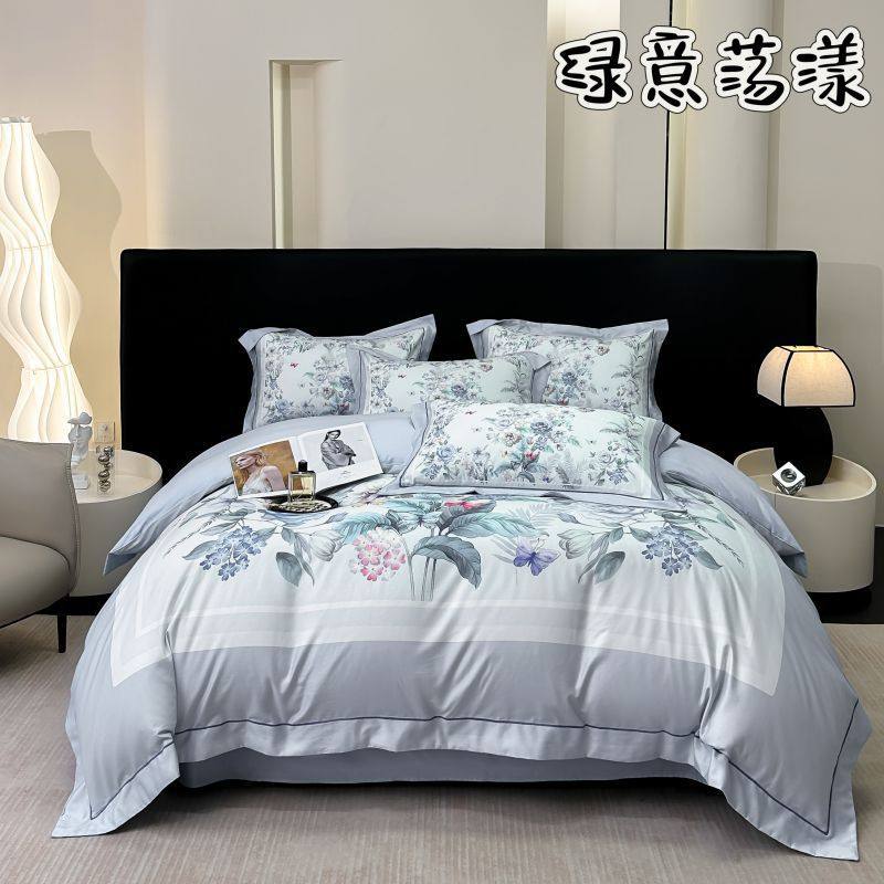 100-Count Tencel Cotton Brushed Four-Piece Set Autumn and Winter Cotton Bed Bed Sheets Quilt Cover Accessible Luxury Printed Cotton Bedding