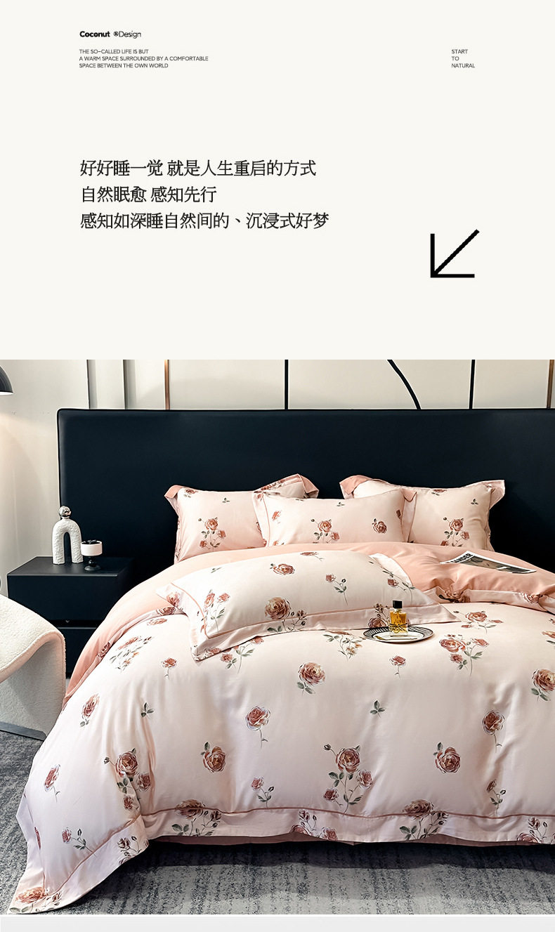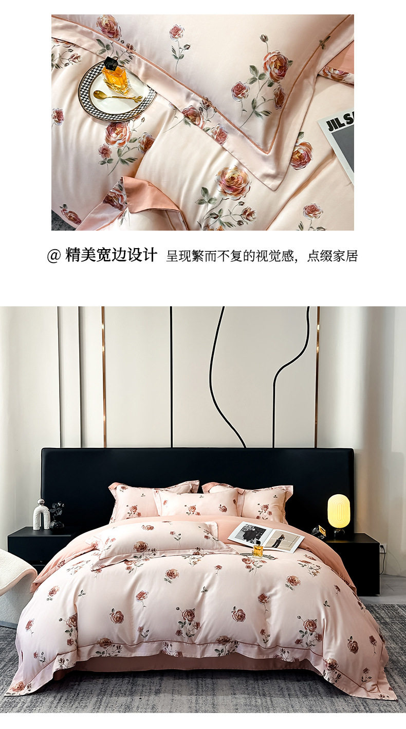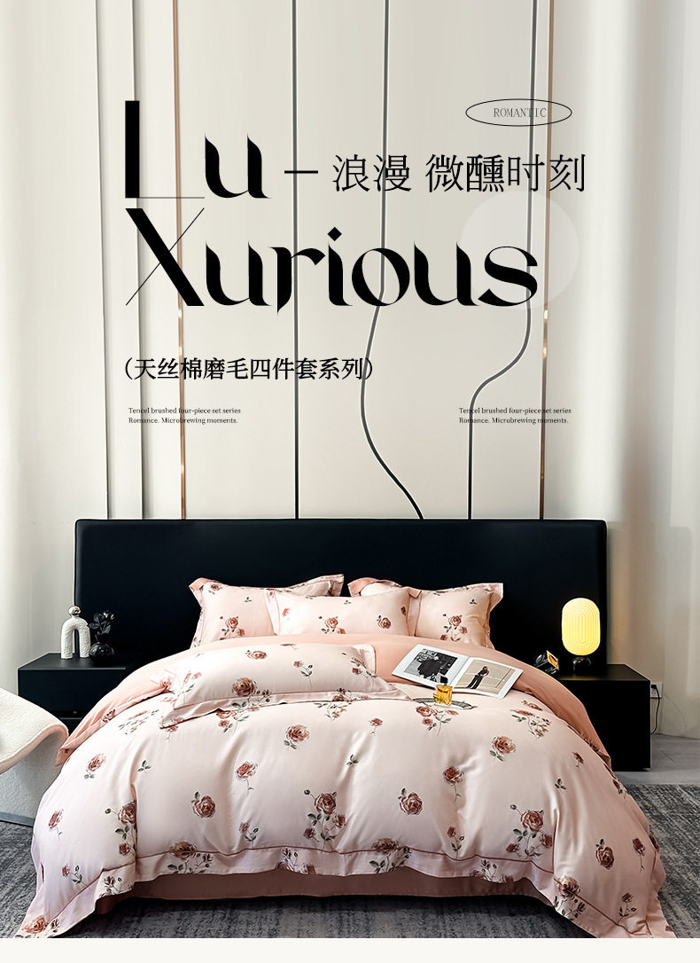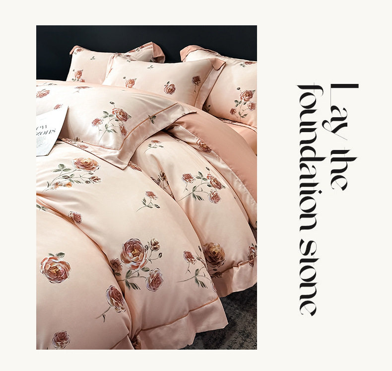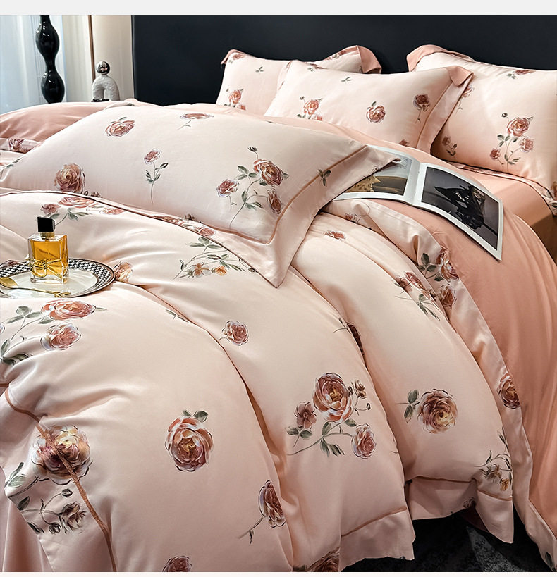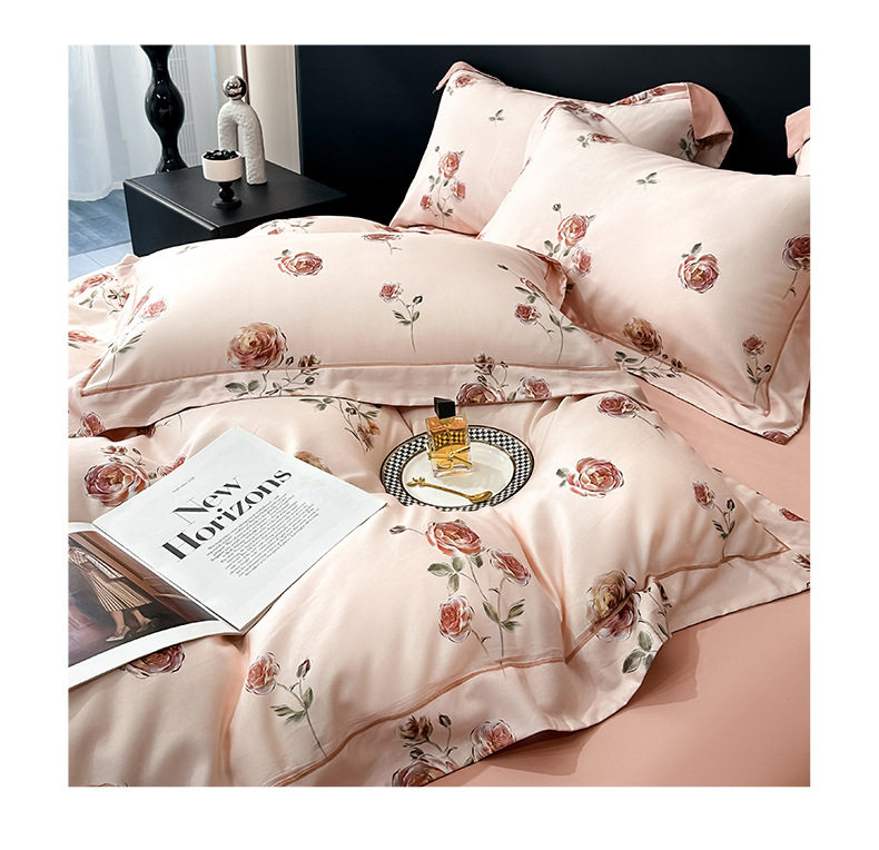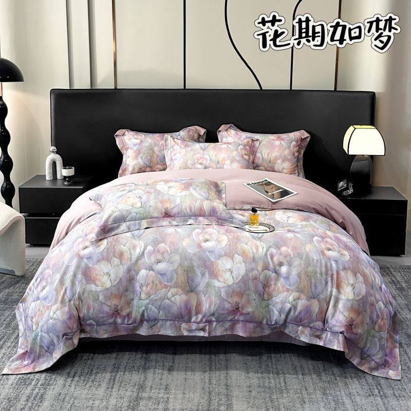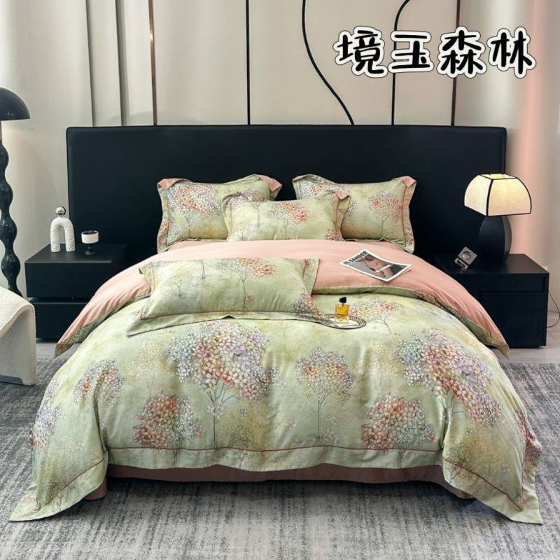 100-Count Tencel Cotton Brushed Four-Piece Set Autumn and Winter Cotton Bed Bed Sheets Quilt Cover Accessible Luxury Printed Cotton Bedding