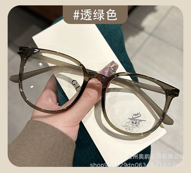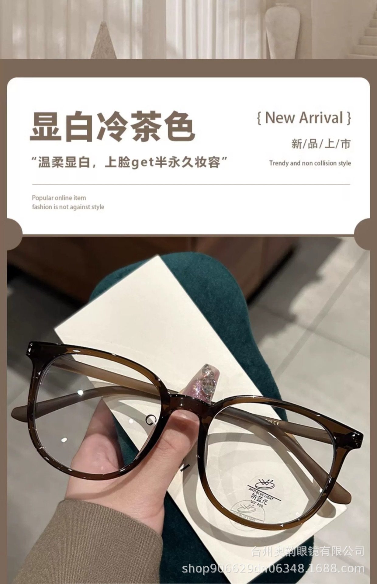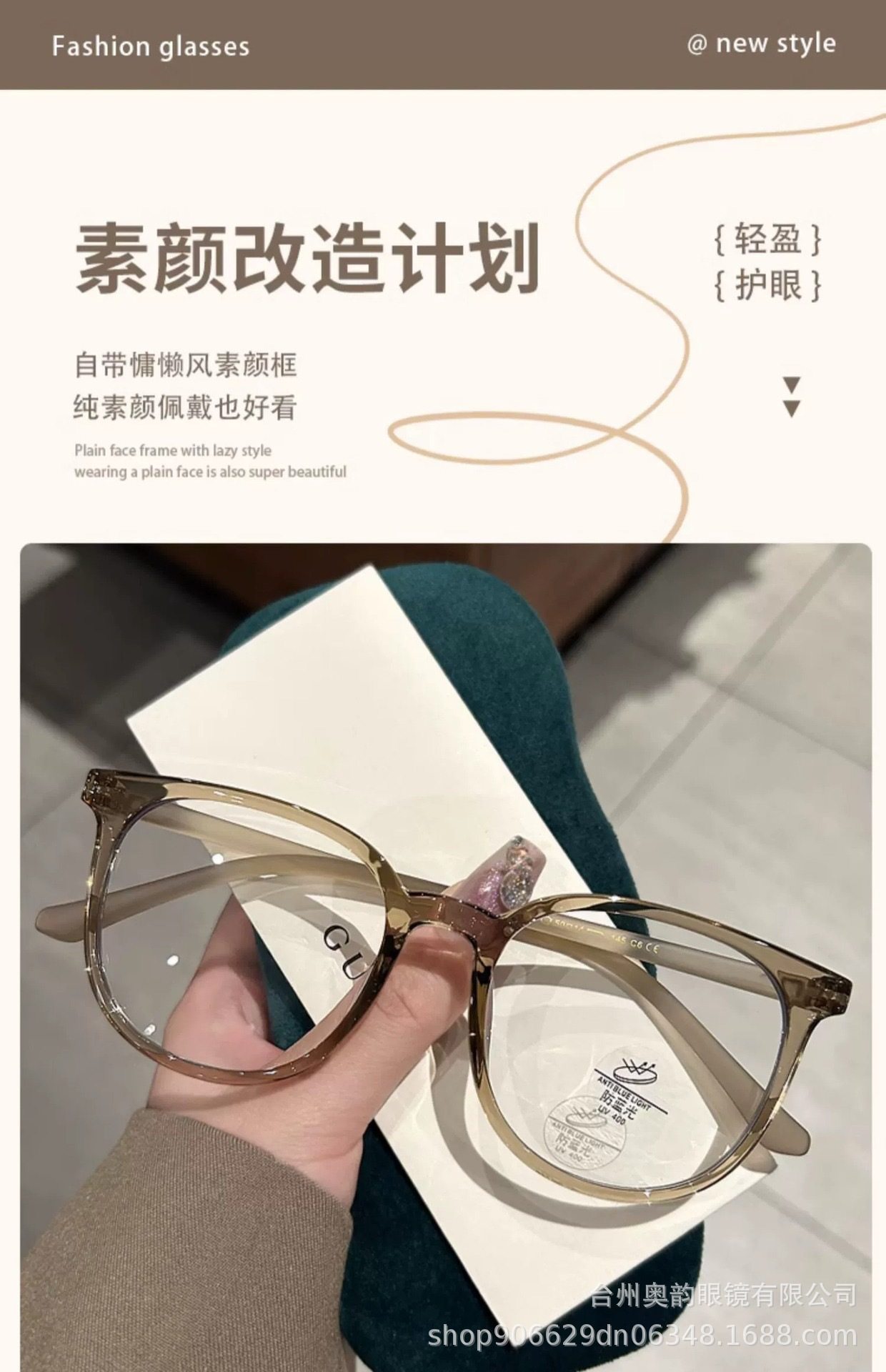 New Korean Style Large Frame Plain Anti-Blue Light Plain Glasses Ins Advanced Sense Cold Tea Glasses Frame for Men and Women