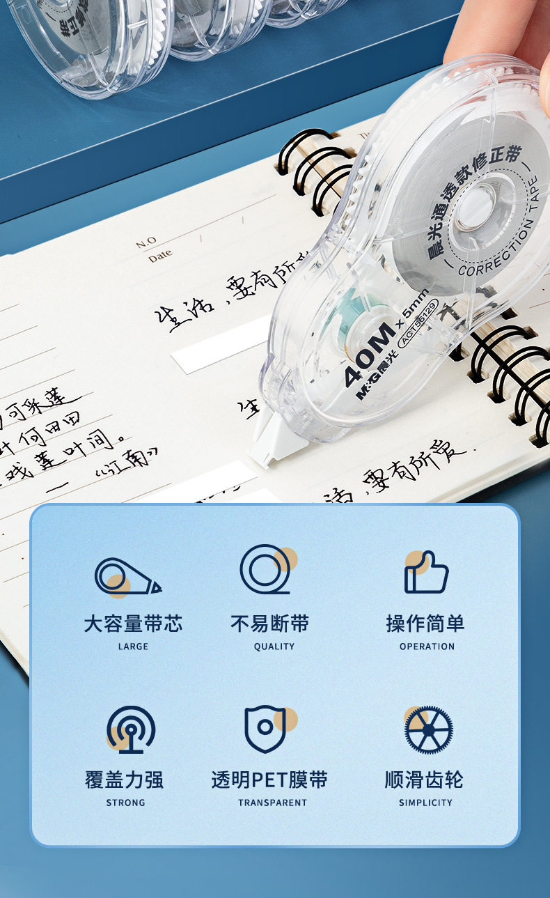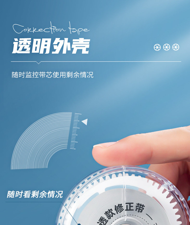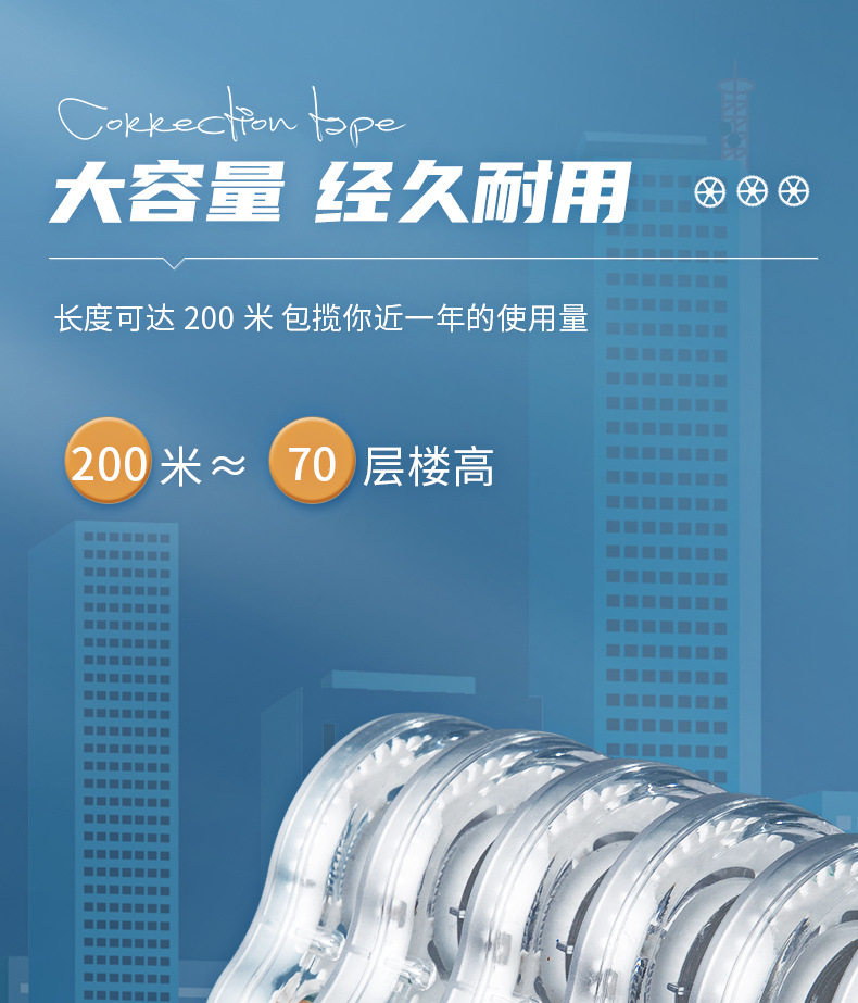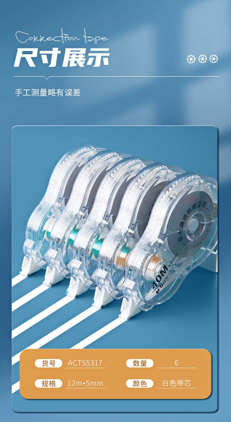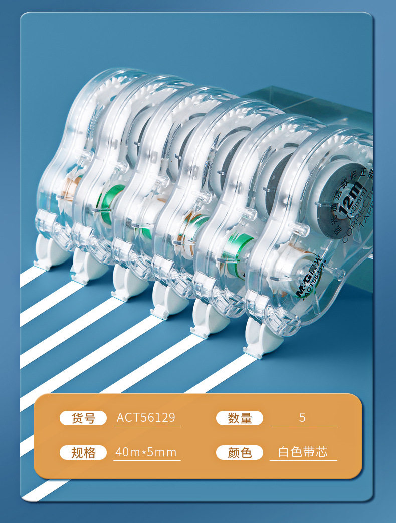 | Specifications | 200m free 2 pens [white with core] 5 pieces,150m free 2 pens [white with core] 5 pieces,100m comes with 2 pens [white with core] 5 pieces,72m comes with 2 pens [white with core] 6 pieces,400m comes with 5 pens [white with core] 10 pieces,300m free 5 pens [white with core] 10 pieces,200m free 5 pens [white with core] 10 pieces,144m comes with 5 pens [white with core] 12 pieces,600m free 10 pens [white with core] 15 pieces,600m [cool black correction tape] 15 card pack,400m [cool black correction tape] pack of 10,200m [cool black correction tape] 5 pack,150m [cool black correction tape] 5-pack,100m [cool black correction tape] 5-pack,72m [cool black correction tape] pack of 6,36m [replaceable core] 1 correction tape + 5 replacement cores,72m [replaceable core] 2 correction tapes + 10 replacement cores,6 pieces in box |