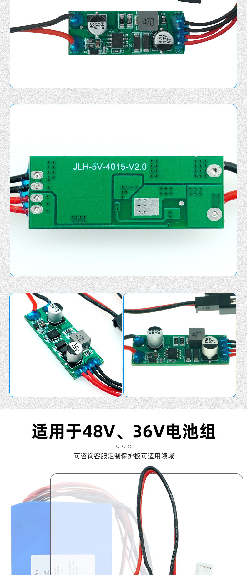 JLH-5V-4012-V2.0 V/48V to 5V power supply board is directly supplied by 48V and 36V battery pack PCBA board manufacturers.