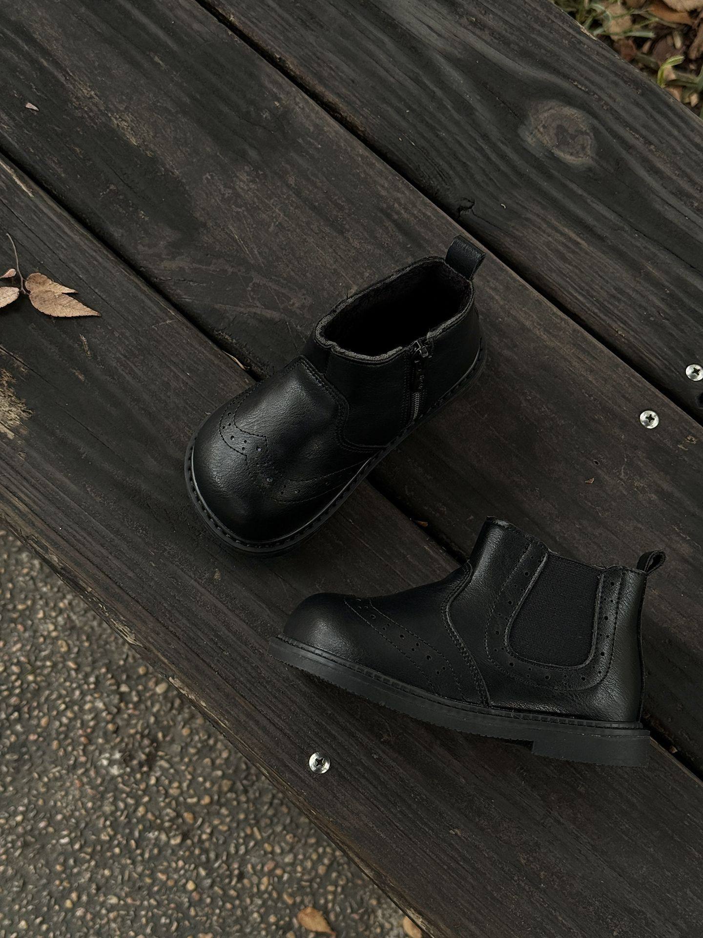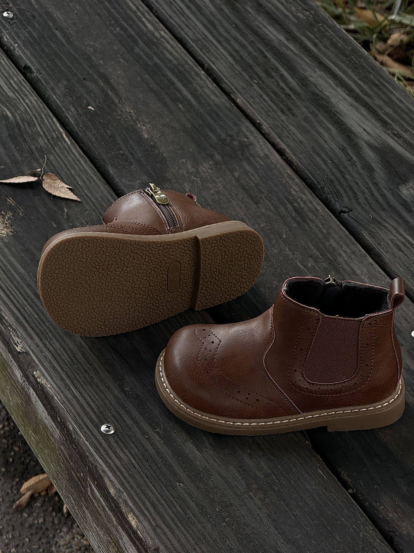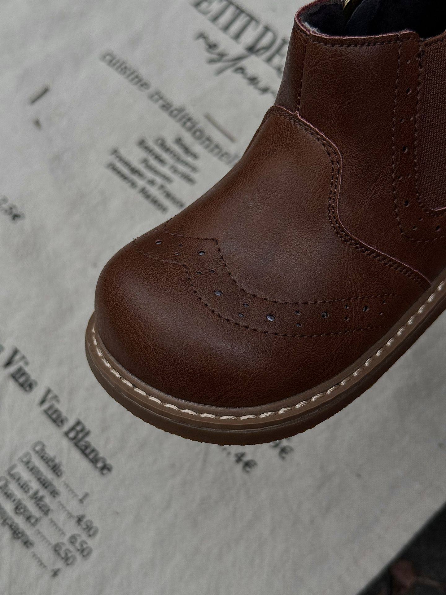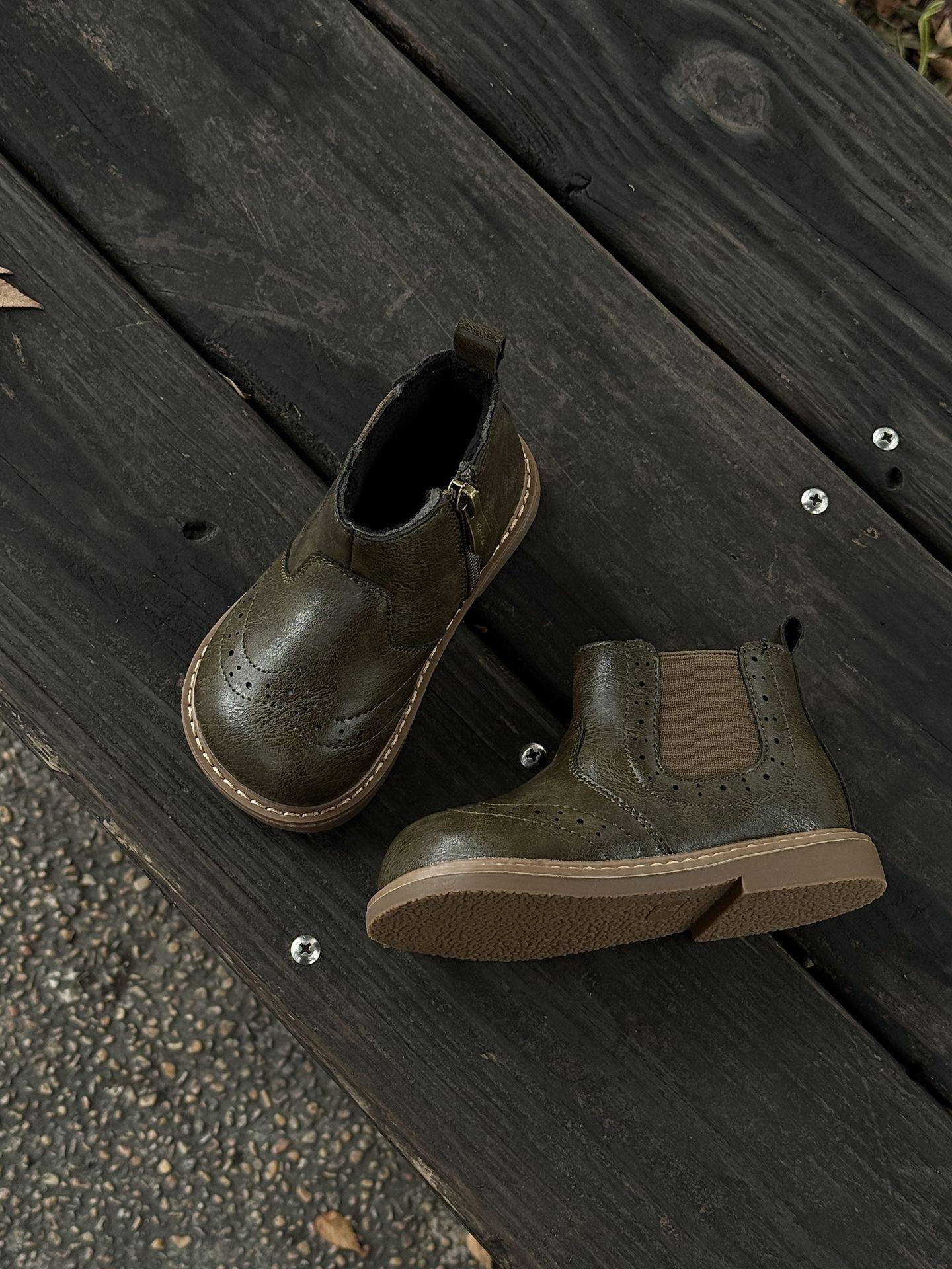 Xshx "London Brogue" Kidsren's Martin Leather Boots for Boys and Girls Side Zipper Chelsea Boots [Wenzhou Shoes]