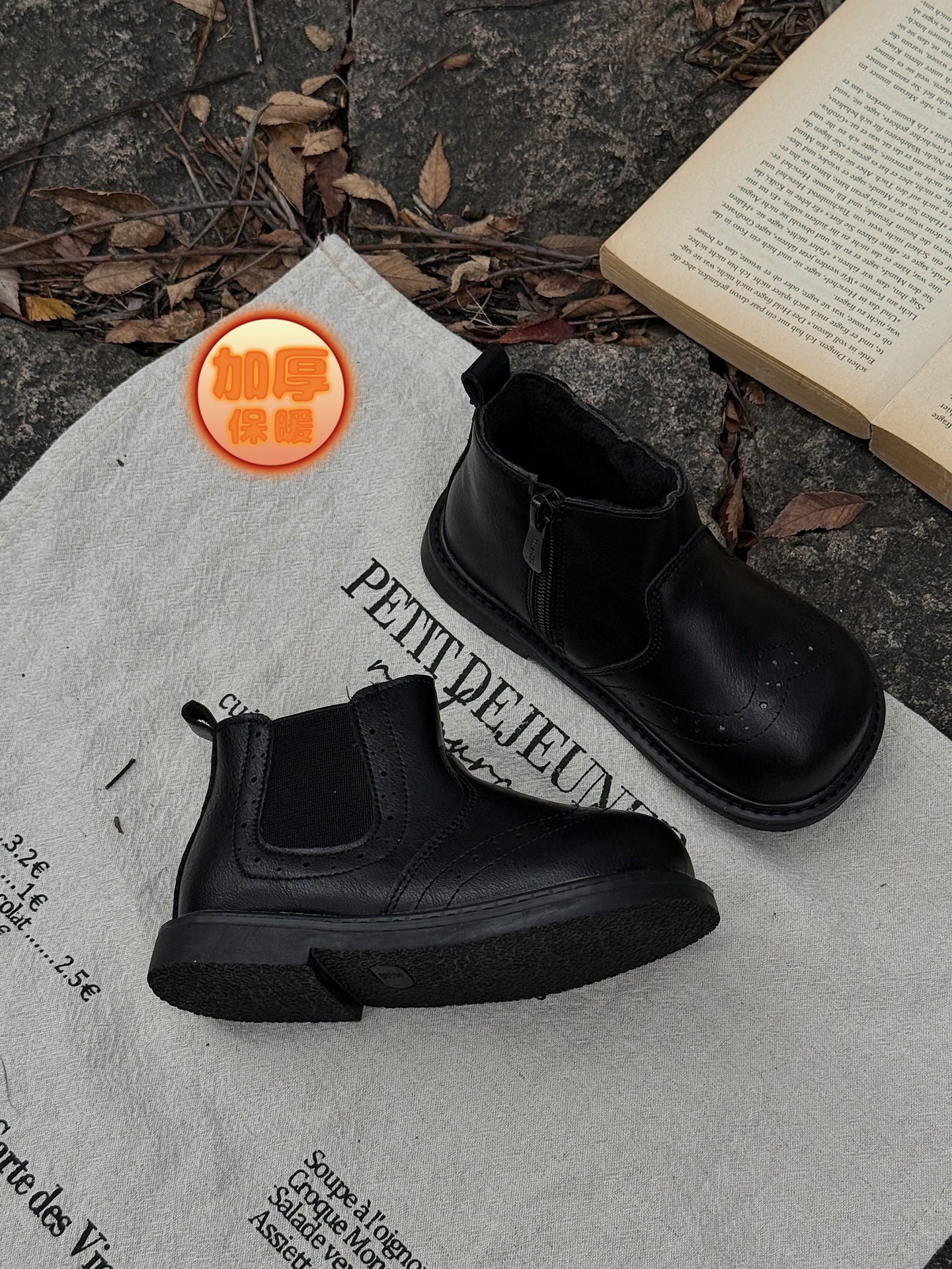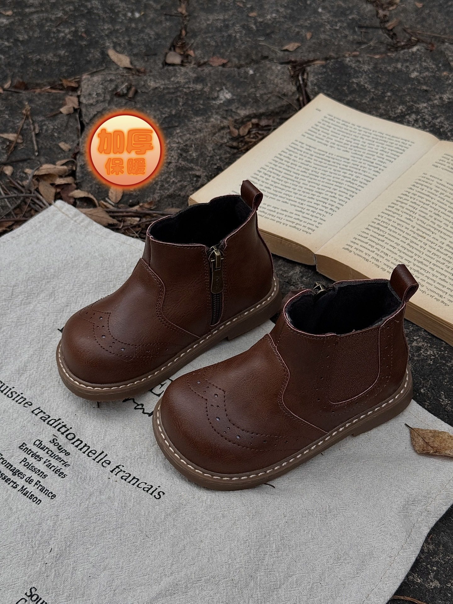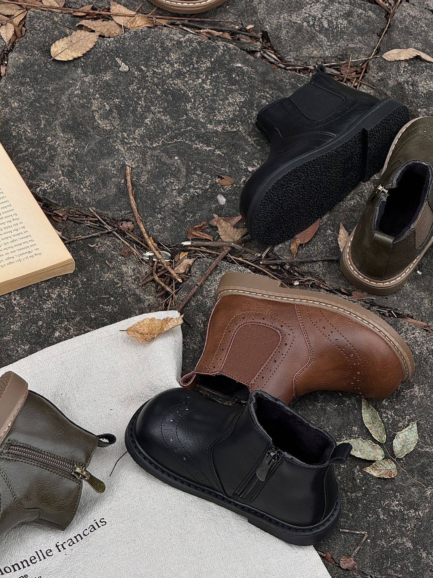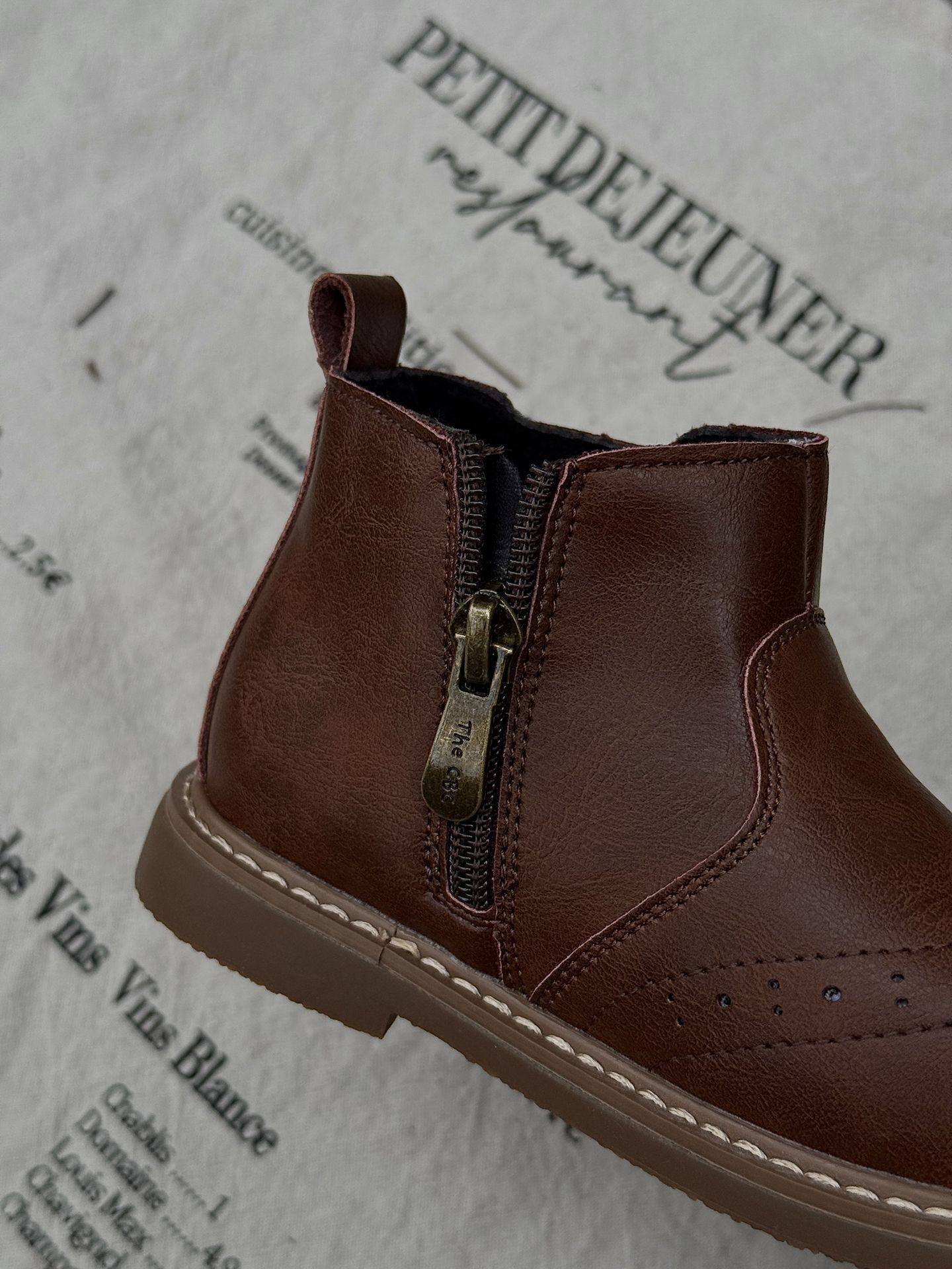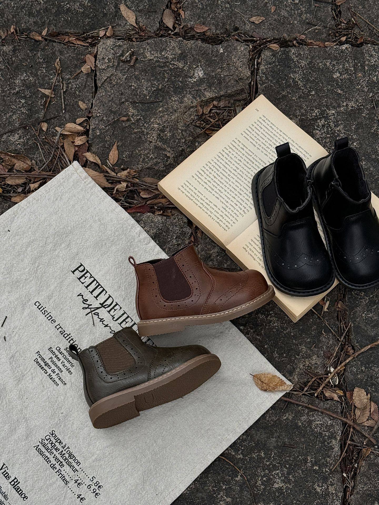 Xshx "London Brogue" Kidsren's Martin Leather Boots for Boys and Girls Side Zipper Chelsea Boots [Wenzhou Shoes]